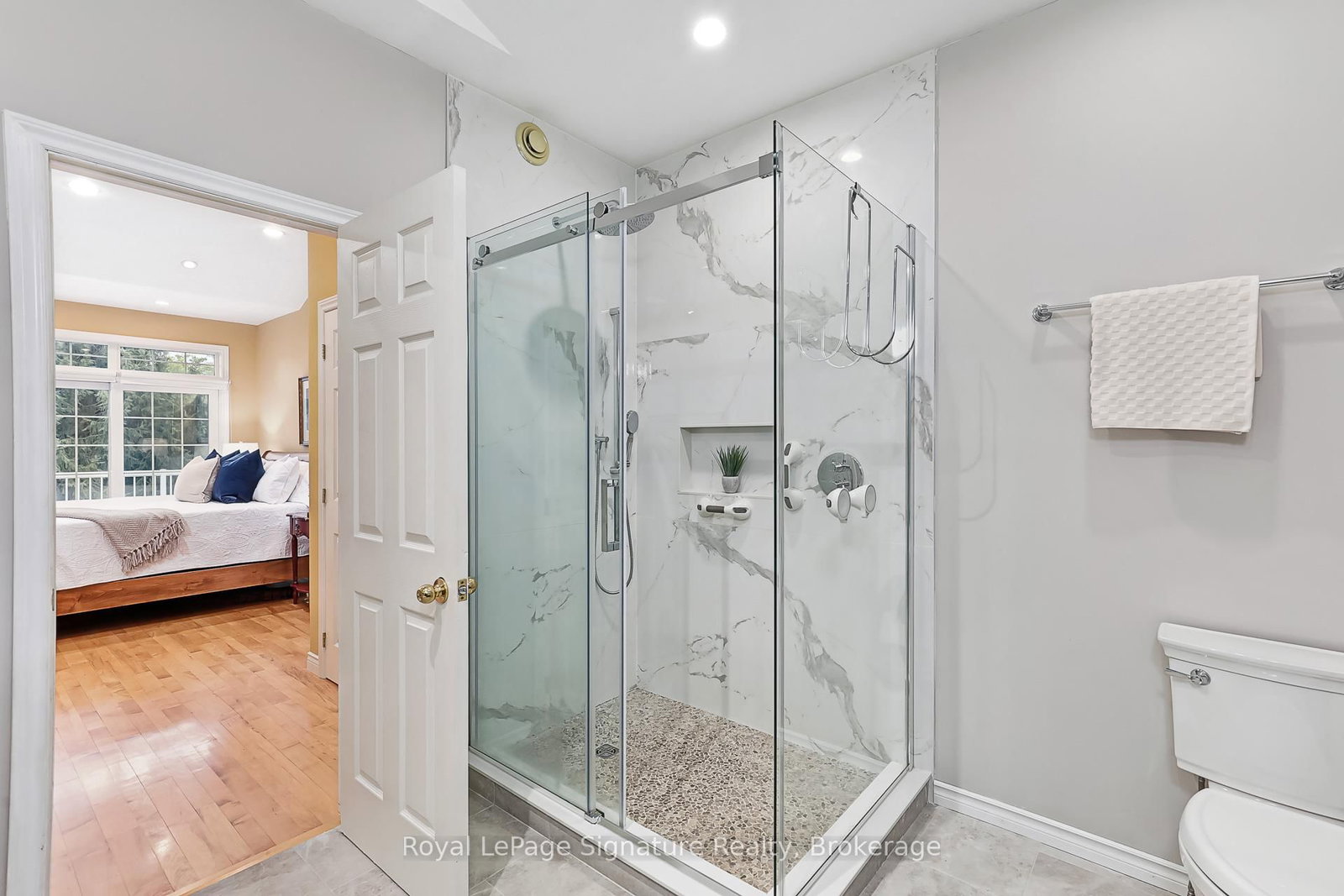 Welcome to 180 Russell, an exceptional brick residence that blends privacy, elegance, and outstanding outdoor living. The Bungalow on 180 Russell Street E has 2 bedrooms, 4 bathrooms, and is located on a 158.66 x 110 ft lot in the community of Blue Mountains . Set on a rolling, professionally landscaped lot, the property is framed by stone walkways, soldier stone detailing along the driveway, and a stamped concrete entry, creating striking curb appeal from the moment you arrive. Designed for year-round enjoyment, the backyard is a true retreat, featuring a tranquil waterfall, outdoor fireplace, expansive deck, covered patios, and a walk-out lower level-perfect for effortless entertaining and relaxed outdoor living. Inside, the main level offers a bright, open-concept layout where the kitchen, dining, and living areas flow seamlessly together. Large sliding doors extend the living space to a generous deck overlooking the private, serene yard. The primary suite is a private haven with his-and-hers closets and a spa-inspired ensuite with heated floors. A flexible office or den, a full bathroom, convenient laundry, and direct garage access complete the main floor. The fully finished lower level is ideal for hosting and extended family, featuring a spacious family room with gas fireplace, three additional bedrooms, a full bath, and a two-piece bath. Radiant in-floor heating ensures year-round comfort, while the thoughtfully designed second kitchen-equipped with a cooktop, sink, dishwasher, bar fridge, and beverage fridge-enhances both indoor and outdoor entertaining. With its own walk-outs, bedrooms, bathrooms, and kitchen, this level also offers excellent potential for a private in-law suite.Additional highlights include a covered front porch, a two-car garage with inside entry, beautifully curated landscaping, and a Wi-Fi-enabled smart irrigation system for easy lawn and garden maintenance. With its exceptional outdoor spaces, generous interior layout, and peaceful setting, 180 Russell delivers the perfect balance of comfort, functionality, and refined living.