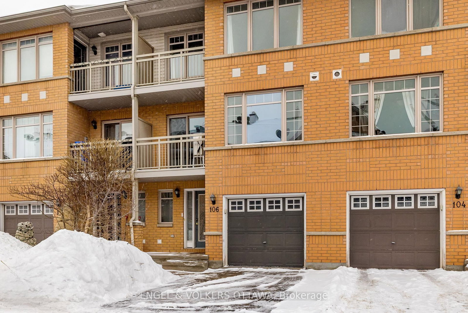 Welcome to this charming 3 storey freehold townhouse located in desirable and convenient Cityview. The 3-Storey on 106 Quito Private has 2 bedrooms, 2 bathrooms, and is located on a 14.27 x 6.2 ft lot in the community of Merivale Industrial Park/Citiplace . This well-appointed, south facing home features large windows throughout filling each room with bright natural light. The ground level offers a spacious entrance way, office or den and powder room, a layout suitable for professionals working from home or running a business. The second floor includes the kitchen, extensive living room and dining room which is flooded with gleaming light from the oversized windows. The kitchen is thoughtfully designed to overlook the living room, offering a high-top countertop and seating for functionality and entertainment. Outdoor space includes two large balconies off the living room on the second floor and primary bedroom on the third. The primary bedroom also includes a walk-in closet and large south facing windows. The 5 pc bath steps from the bedrooms, includes a relaxing soaking tub and separate glassed in shower. In addition, storage, laundry, an attached garage plus one additional parking space are all featured aspects of this home as well the close proximity to shopping, health care facilities, public transit and schools. This home is perfectly harmonious for homebuyers and investors alike.