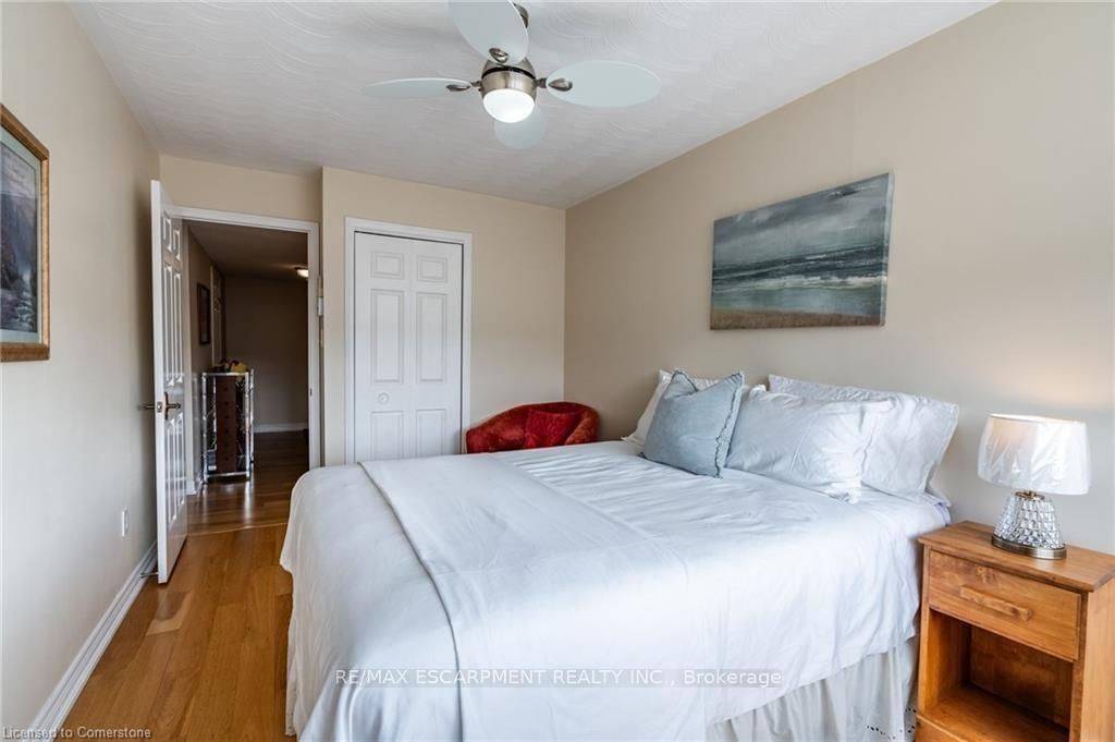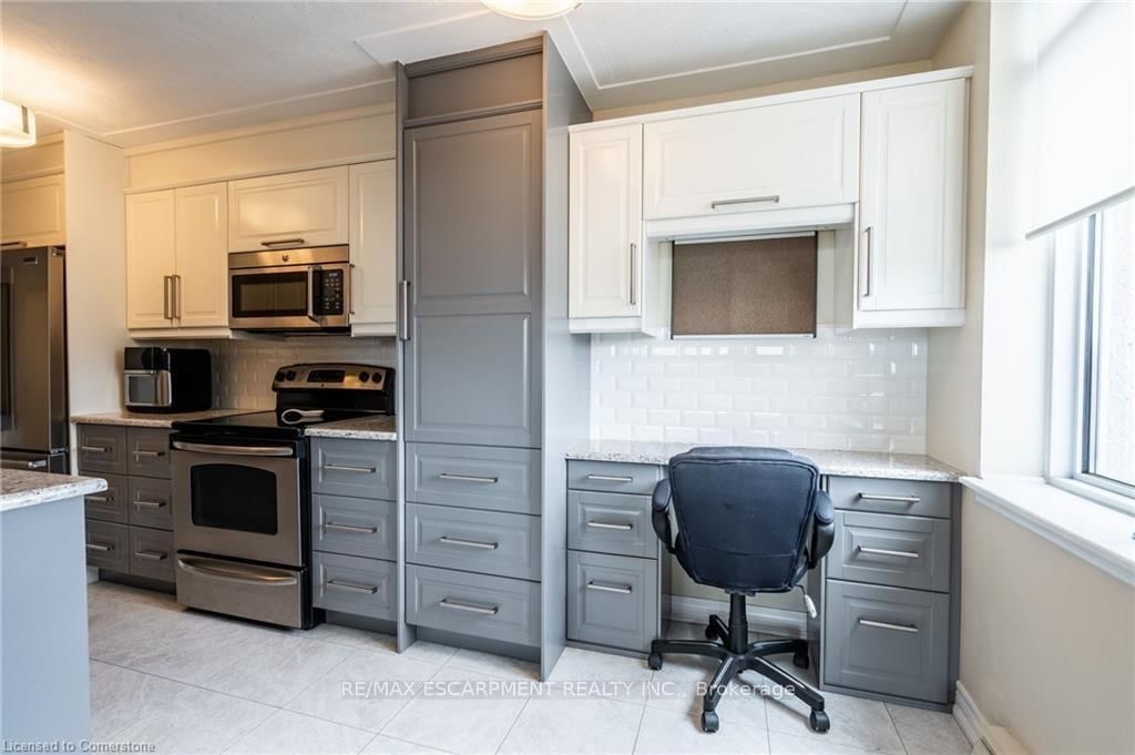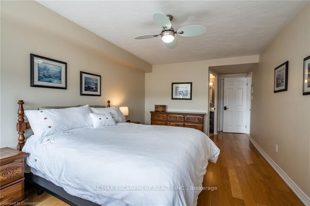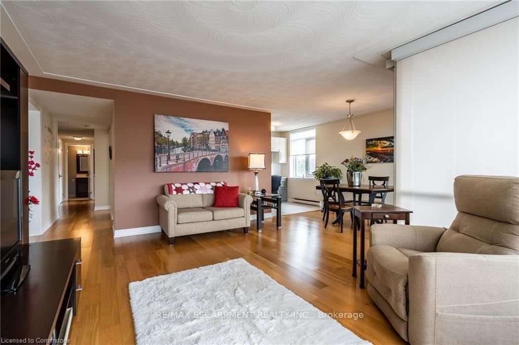 We've got the view! Welcome to Harris Towers! This rarely offered 3 bed, 2 full bath CORNER unit offers 1245sq ft of bright, airy living with stunning Escarpment views from every room and private South facing balcony. The 1 Storey/Apt on 402-40 Harrisford Street has 3 bedrooms, 2 bathrooms, and is located in the community of Red Hill . Large principal rooms, an open-concept living/dining area, stunningly renovated kitchen (2016), and hardwood flooring throughout. Carpet free! The oversized primary bedroom features a gorgeous 3 piece ensuite, complete with beautiful glass and tile shower plus a walk-in closet. Two generous sized bedrooms, a pretty 4 pc bath, in-Suite laundry and PLENTY of closet space complete this home. Located in a quiet, well-maintained building brimming with top-tier amenities such as an indoor saltwater pool, sauna, fitness rm, library, party rm, billiards rm, workshop, car wash (with vacuum!) and pickleball courts. Nestled among mature trees and greenspace with easy access to the Red Hill Valley Parkway, trails, schools, shopping, and transit. Easily hop onto the Red Hill Valley Pkwy, QEW & Hwy 403. Includes one underground parking space & Large locker.