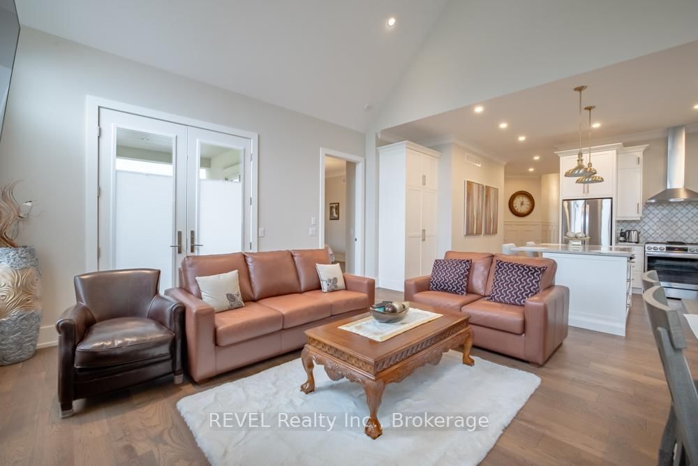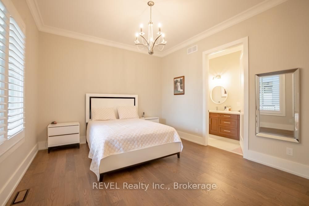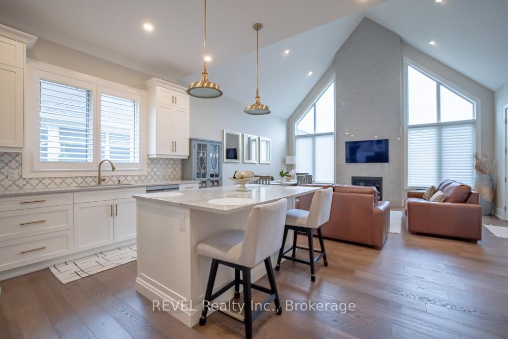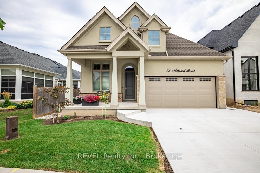 Set on a quiet, refined streetscape in the heart of St. The Bungalow on 75 Millpond Road has 2 bedrooms, 3 bathrooms, and is located on a 107.37 x 44.33 ft lot in the community of St. Davids . Davids, 75 Millpond Road is a custom-built bungalow by DRT Homes offering over 2,700 sq. ft. of finished living space. The grand foyer with wainscoting opens to a soaring great room with 20-ft ceilings and a dramatic tiled fireplace. The main floor features a spacious primary suite with a walk-in closet and an ensuite, a second bedroom (currently styled as a home office) with its own 3-piece bath, and a bright, neutral kitchen with high-end finishes. Outdoors, a covered patio extends the living space into landscaped surroundings. The lower level is designed for gathering, with an expansive rec room, built-in bar/kitchenette with stone counters, an additional bedrooms and full bath and a spacious home gym. Millpond Road is known for its well-appointed high-end homes and peaceful setting - all within walking distance of Ravine Vineyard, local cafés, and dining in the village of St. Davids. Just minutes away are Old Town Niagara-on-the-Lake, Golf Courses, Shaw Festival Theatre, Queen Street shops and restaurants, The Outlet Collections of Niagara & White Oaks, and of course, the areas many renowned wineries. Particularly convenient about this location is the quick highway access for easy commutes, and close proximity to all that Niagara Falls and St. Catharines have to offer as well. An excellent opportunity to own a thoughtfully designed home in one of Niagara's most desirable communities!