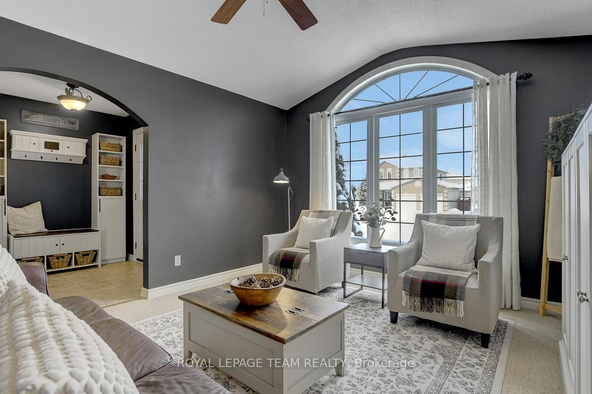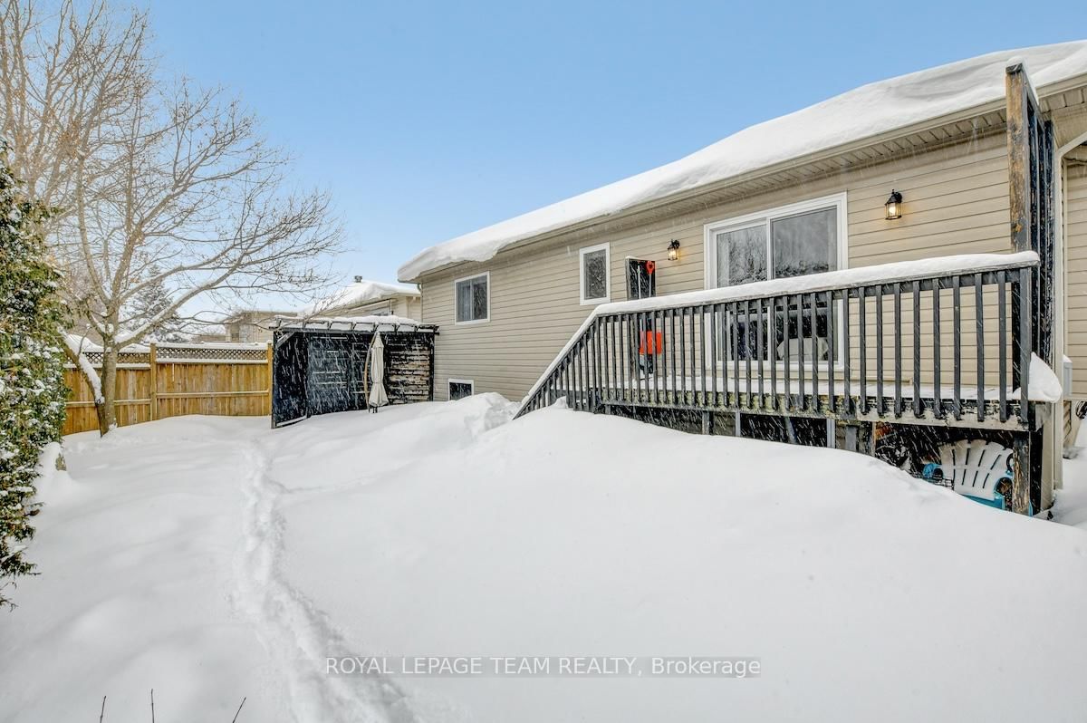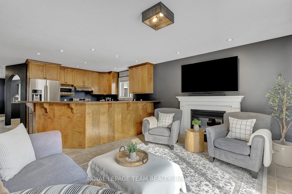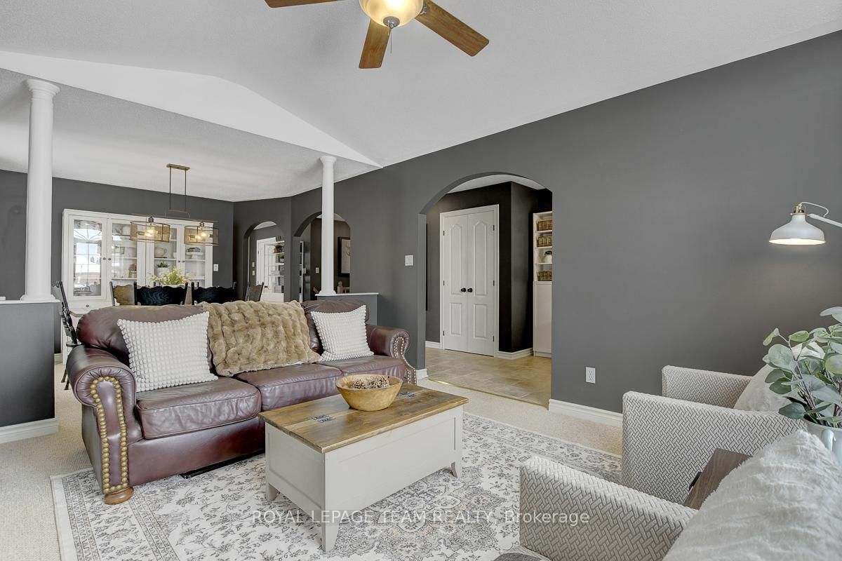 Gorgeous bungalow situated on a quiet street, set on a premium lot with no rear neighbours. The Bungalow on 28 Prime Place has 3 bedrooms, 3 bathrooms, and is located on a 98.43 x 50.45 ft lot in the community of Carleton Place . Thoughtful design, versatile living space, and quality upgrades, this home offers ample privacy & serenity. Striking full brick front, covered entry and double attached garage create superb curb appeal. Interior of the home feels elegant and comfortable, beginning with a generous foyer that leads into the front formal living room with a large arched window & vaulted ceiling. Living room opens gracefully to the dining area with architectural half-walls and classic columns. Open-concept kitchen and family room are perfectly suited for everyday living. Kitchen features light maple cabinetry finished with crown moulding, a large peninsula island with overhang seating and abundant storage. Family room is anchored by a gas fireplace and offers direct access to the backyard. Spacious primary bedroom feels like a retreat with a serene private ensuite & walk-in closet. Two additional main level bedrooms and a second full bathroom are also well appointed. Convenient laundry and mudroom on main level. Downstairs, partially finished basement - just missing the finished ceiling, opens into a long, bright recreation room & storage space, flowing into what could function as a future apartment-style suite with two bedrooms, a large living space, and a partial bath with roughed-in plumbing and a mostly built-out shower. This area is also ideal for quiet work-from-home offices or hobby spaces. Effortless outdoor living with a main level walk-out deck leading into a fully fenced backyard lined with mature foliage for privacy. Low-maintenance, no-grass landscaping featuring a 13x13 patio & privacy wall. Nestled in a relaxed yet vibrant community set along the Mississippi River, charming heritage downtown just minutes away. Backing onto soccer fields, a playground, dog park & community pool nearby. Less than 10 minutes to the main shopping plaza offering conveniences + amenities.
