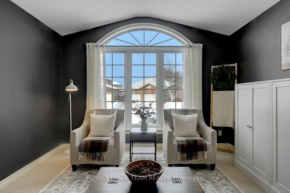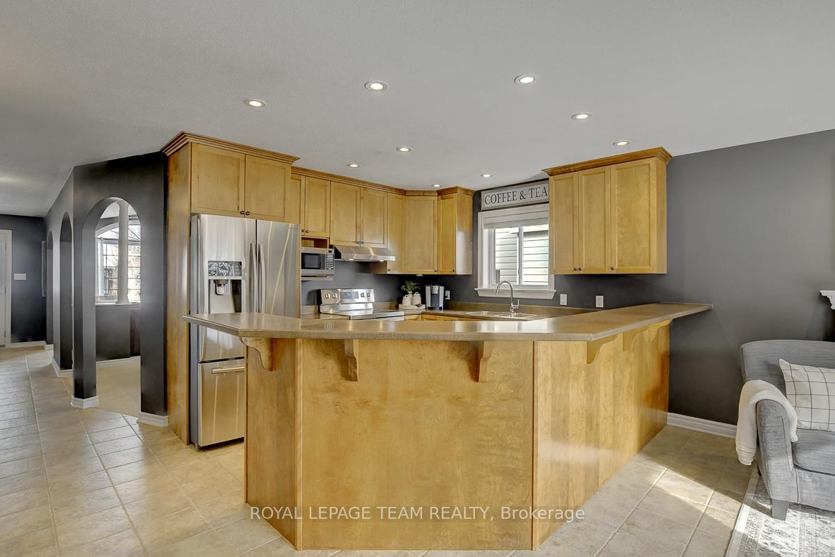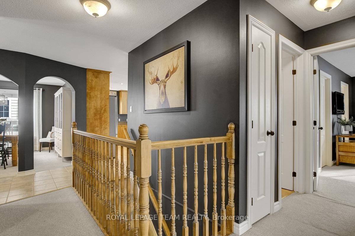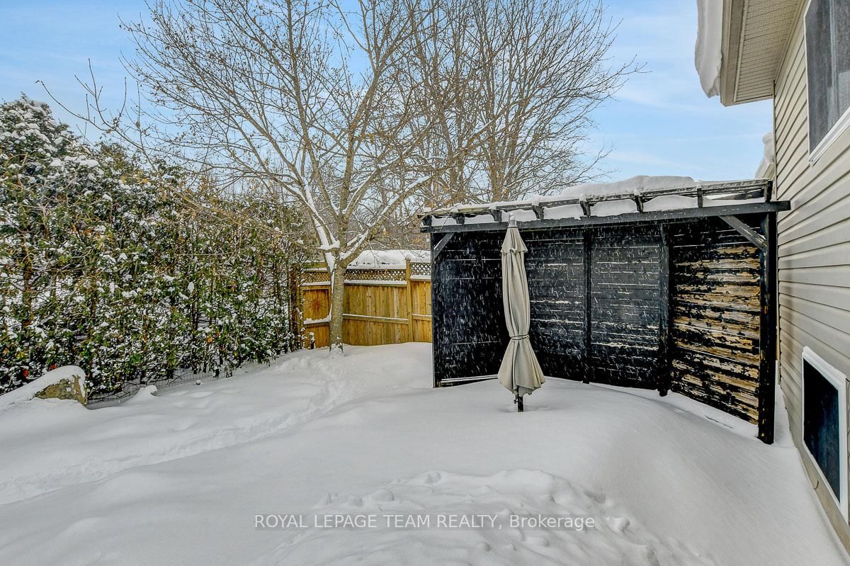 Gorgeous bungalow situated on a quiet street, set on a premium lot with no rear neighbours. The Bungalow on 28 Prime Place has 3 bedrooms, 3 bathrooms, and is located on a 98.43 x 50.45 ft lot in the community of Carleton Place . Thoughtful design, versatile living space, and quality upgrades, this home offers ample privacy & serenity. Striking full brick front, covered entry and double attached garage create superb curb appeal. Interior of the home feels elegant and comfortable, beginning with a generous foyer that leads into the front formal living room with a large arched window & vaulted ceiling. Living room opens gracefully to the dining area with architectural half-walls and classic columns. Open-concept kitchen and family room are perfectly suited for everyday living. Kitchen features light maple cabinetry finished with crown moulding, a large peninsula island with overhang seating and abundant storage. Family room is anchored by a gas fireplace and offers direct access to the backyard. Spacious primary bedroom feels like a retreat with a serene private ensuite & walk-in closet. Two additional main level bedrooms and a second full bathroom are also well appointed. Convenient laundry and mudroom on main level. Downstairs, partially finished basement - just missing the finished ceiling, opens into a long, bright recreation room & storage space, flowing into what could function as a future apartment-style suite with two bedrooms, a large living space, and a partial bath with roughed-in plumbing and a mostly built-out shower. This area is also ideal for quiet work-from-home offices or hobby spaces. Effortless outdoor living with a main level walk-out deck leading into a fully fenced backyard lined with mature foliage for privacy. Low-maintenance, no-grass landscaping featuring a 13x13 patio & privacy wall. Nestled in a relaxed yet vibrant community set along the Mississippi River, charming heritage downtown just minutes away. Backing onto soccer fields, a playground, dog park & community pool nearby. Less than 10 minutes to the main shopping plaza offering conveniences + amenities.