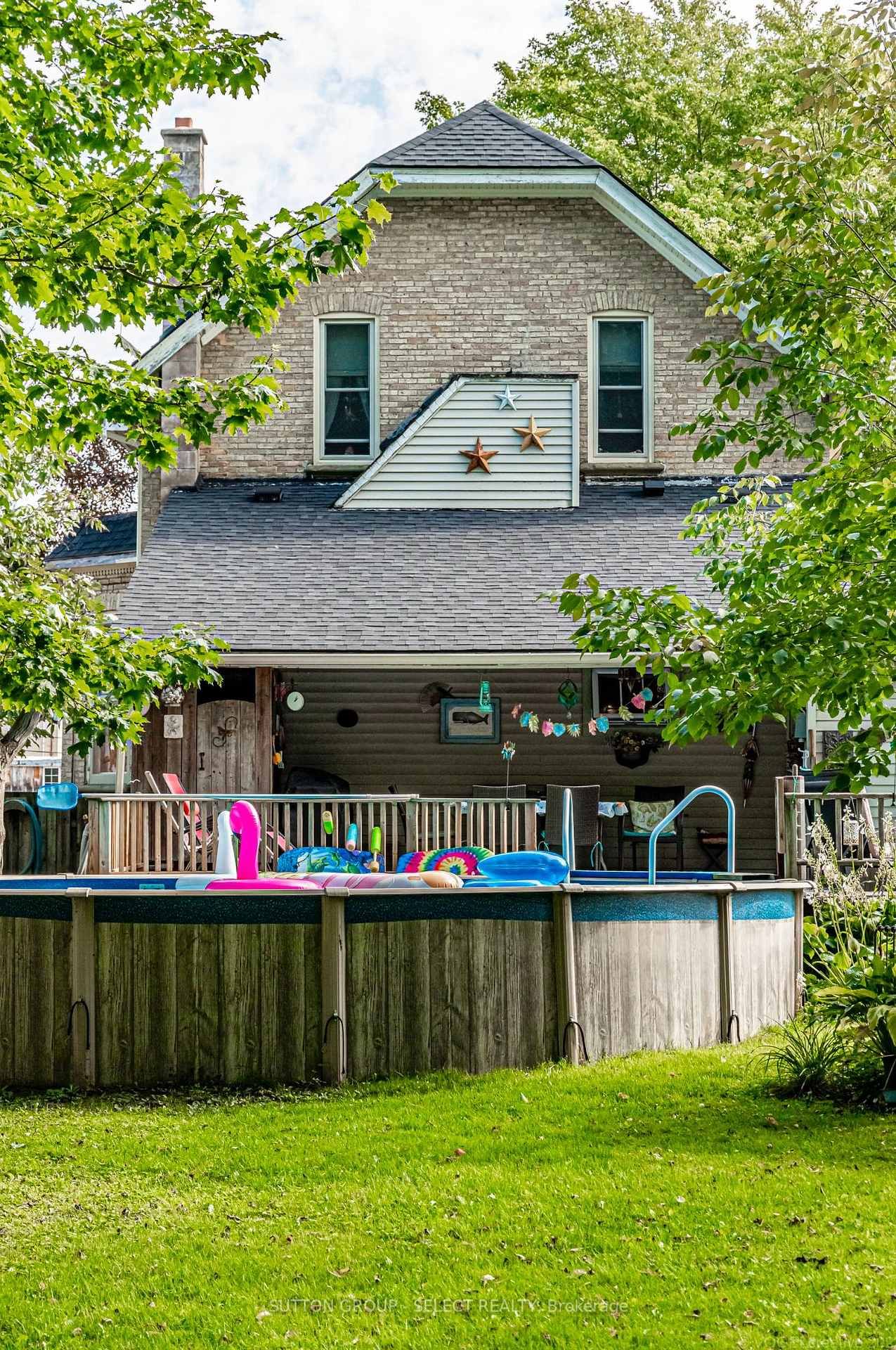 Beautifully maintained and steeped in history, this remarkable century home is believed to be one of the first 14 houses built in Exeter, double bricked by a Scottish mason, and built in 1856. The 2-Storey on 365 William Street has 3 bedrooms, 3 bathrooms, and is located on a 178.93 x 60.69 ft loton < .50 acres in the community of Exeter . The home exudes timeless Victorian elegance through an array of original and restored features, including wainscoting, 14" baseboard trim, crown molding, front screened doors and exquisite stained-glass windows. The main level offers a versatile bedroom/office with its own private entrance -ideal for in-laws/guests, or a private business/home occupation - conveniently located near a newly constructed 3 piece bath with a tiled shower. A renovated kitchen blends modern function with classic charm, featuring quartz countertops, custom cabinetry, and a large island, while a spacious and bright dining area is highlighted by a gas fireplace and vintage mantle. Original pocket doors transition to a living room accented by a striking stained-glass window and a beautifully refinished hardwood floor. The original front and renovated rear staircases lead to the upper level which offers 3 spacious bedrooms, including a primary with 2 walk-in closets, and two 3 piece bathrooms. Outdoors, relax on a large deck surrounding an above-ground pool(new cleaning system) and a hot tub while quiet evenings can be spent around the fire-pit or enjoying the tranquil fish pond, with ample yard remaining for entertaining or play. Peaceful mornings begin on the covered front or side porch, where the Gingerbread trim has been meticulously restored. A updated shed, garden, a single car garage with a steel roof, front and rear door access and a workbench ensure everyone in the family has space to tinker. Numerous updates completed in 2022 include a sump pump, furnace, central vac sweeper, electrical, roof (2023) and more. This is a rare opportunity to own an updated home where history-inspired design, rich character, and modern comforts come together in perfect harmony.