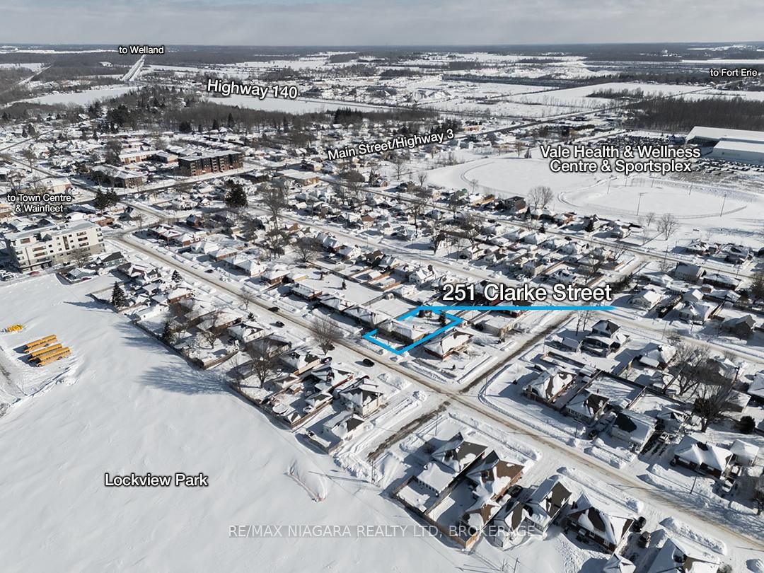 Well-maintained, move-in ready 3-bedroom, 2-bathroom brick bungalow set on a generous 66' x 124' lot in a family friendly Port Colborne location. The Bungalow on 251 Clarke Street has 3 bedrooms, 2 bathrooms, and is located on a 124 x 66 ft loton < .50 acres in the community of Killaly East .The home is carpet-free with hardwood and ceramic floors throughout the mainfloor. A direct door from the kitchen provides easy access to the backyard - perfect for BBQs. The basement adds valuable living space with a nice, finished rec room and a separate workshop complete with built-in cupboards. The private, fenced backyard features a covered patio, raised garden beds, perennial gardens, and a custom-built shed with steel roof-ideal for storage or projects. Key updates to this well-cared for home include newer paved driveway and resurfaced walkways (2024), updated main floor windows, high-efficiency furnace, central air, recently added attic insulation, central vac, and gutter guards. Lakeshore Catholic High School and the Vale Centre with parks and walking trails, are both nearby and Port Colborne Beaches and the Marina are just a few minutes away. Hwys #3 and #140 are right around the corner giving quick and easy access to Welland, North Niagara and Fort Erie.