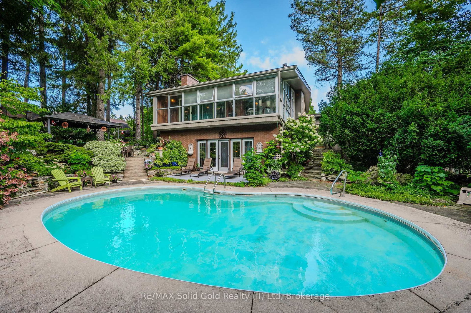 RARE FIND! Located on a stunning 1. The Backsplit 5 on 111 Grandview Drive has 4 bedrooms, 5 bathrooms, and is located on a 222.57 x 302.07 ft loton .50-1.99 acres in the community of .11 acre property, this UNIQUE home offers a postcard setting of singing pines, flowering trees, ponds, streams, an inviting inground pool and beautiful gardens. Step into the spacious foyer and to the left you'll find the serene primary suite addition (1983) featuring sloped ceilings, generous closet space, a spa-like ensuite, and a dramatic SPIRAL staircase framed by windows that leads to the finished basement. The warm and welcoming kitchen is the room where your family will head for when they come home. The black granite counters contrast nicely with the white cabinetry, and there's lots of room for multiple people to cook with 2 sinks and a large island-perfect for casual family gatherings. Off the kitchen is a convenient powder room and laundry area. Enjoy garden views from the elegant formal dining room. A few steps up brings you to the large living room with cathedral ceilings and a cozy wood-burning fireplace-ideal for ENTERTAINING. From here, step into the enclosed, wrap-around sunroom deck that overlooks the magnificent yard. Travel up one more level to find three very spacious bedrooms and a full bath. The movie and sports crowd will love to relax in the lower-level family room with a wood stove, large windows, french doors to the patio and pool, and an adjacent full bathroom. The basement offers endless possibilities with space for a games room, home gym, hobbies, and ample storage. A BONUS feature is the huge workshop with its own exterior entrance-great for hobbyists or home-based projects. With FIVE finished levels, this home is ideal for large or multi-generational families. MAGNIFICENT SUNSETS!