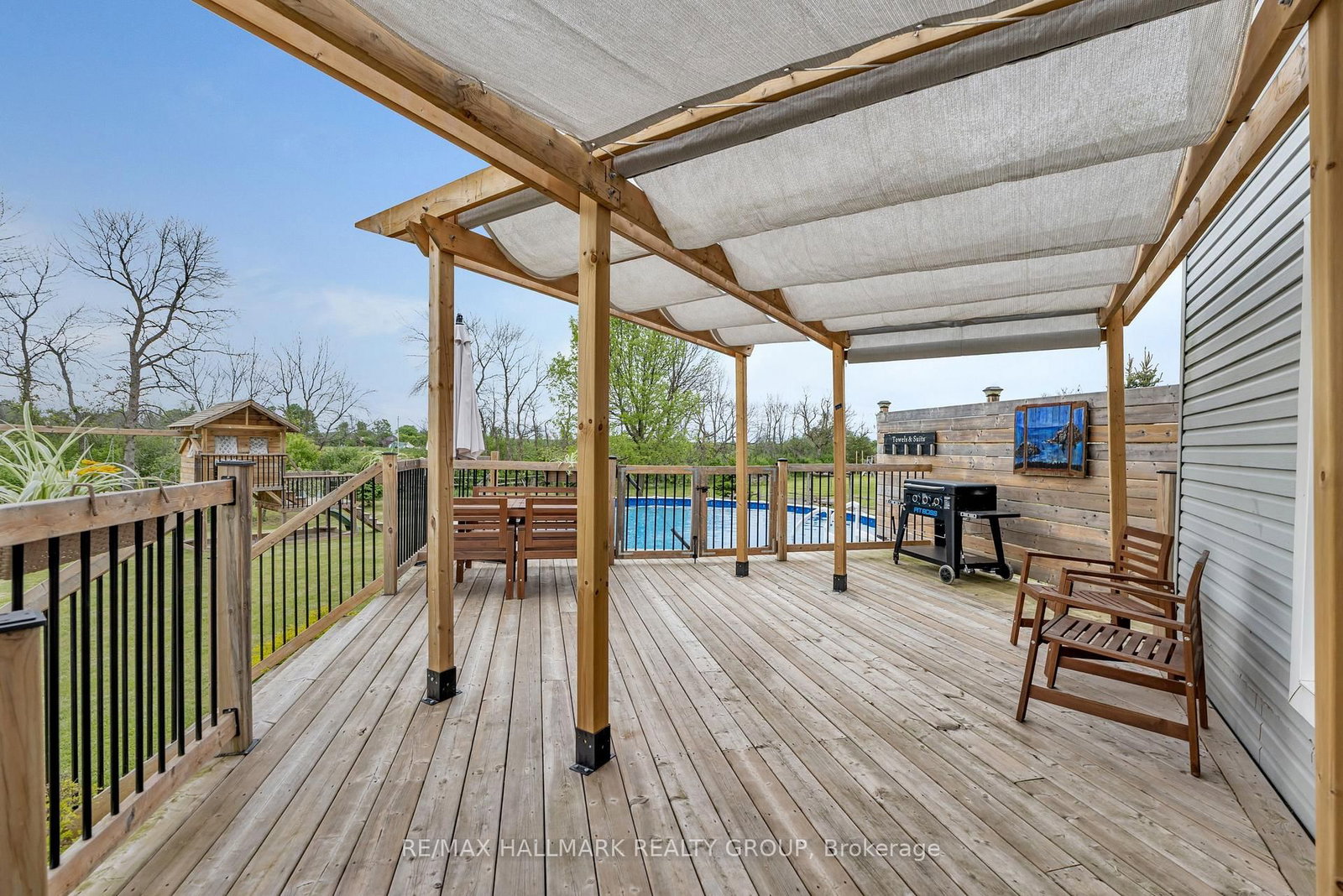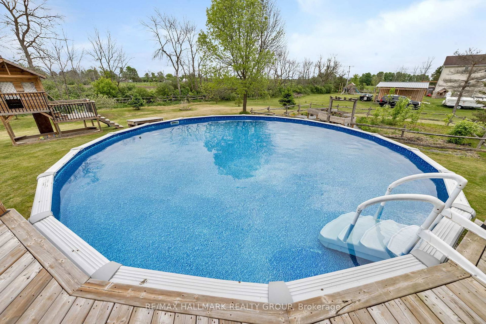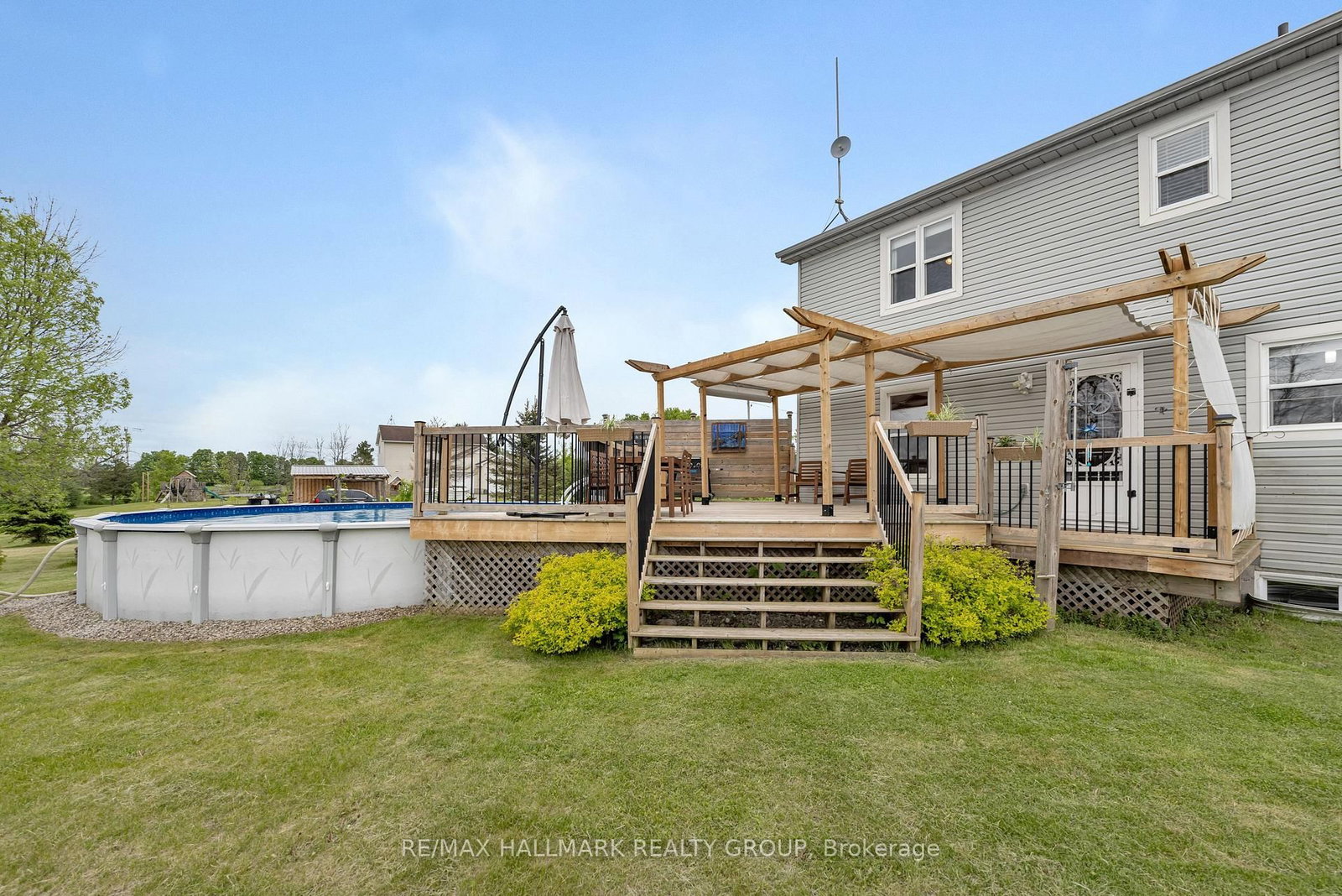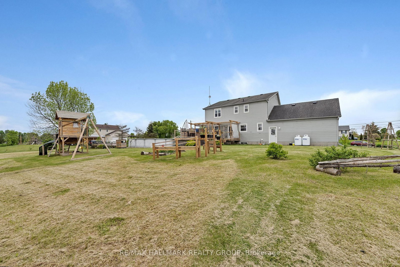 Located just 10 minutes from Brockville in the highly desirable country subdivision of Algonquin, North Augusta, this beautifully 3BR/4BTH home offers over 2,000 sq. The 2-Storey on 3 Cheyenne Trail has 3 bedrooms, 4 bathrooms, and is located on a 225 x 211 ft lot in the community of Augusta Twp . ft. of fully finished living space on a generous 211 ft x 224.93 ft lot with no rear neighbours ensuring exceptional privacy and a peaceful, scenic setting. The main floor showcases tastefully updated hardwood & ceramic tile flooring, creating a warm and elegant atmosphere throughout. The updated kitchen features granite countertops, a double Granite sink, a tile backsplash, a new stove, and a stylish centre island, flowing seamlessly into a cozy family room with a gas fireplace. A separate formal living room provides additional space to relax or entertain, while a renovated powder room and a convenient laundry area enhance everyday functionality. A dedicated dining room completes the layout, ideal for family meals or entertaining guests. Upstairs, the spacious primary suite includes a walk-in closet and a private ensuite with a newly tiled shower, underfloor heating, updated fixtures, and fresh décor. The renovated family bathroom also offers heated tile flooring and modern finishes. The fully finished, carpet-free basement provides a large recreation room, a newly built office or gym space, a functional 3-piece bathroom, and ample storage in the furnace room. Step outside to a generous deck and enjoy summer days in the 27' above-ground pool. The expansive yard is a true retreat, featuring a productive crabapple tree, two apple trees, raspberry canes, and established rhubarb plants. Garden enthusiasts will appreciate the fenced-in raised herb and vegetable beds, along with a bee-friendly wildflower garden. Families will love the charming children's playhouse with swings and a slide. Additional outdoor highlights include wooden staging for summer potted plants and hanging baskets, and a hardstanding parking area next to a large Amish shed. Located just 400 metres from Dixons General Store and Café!