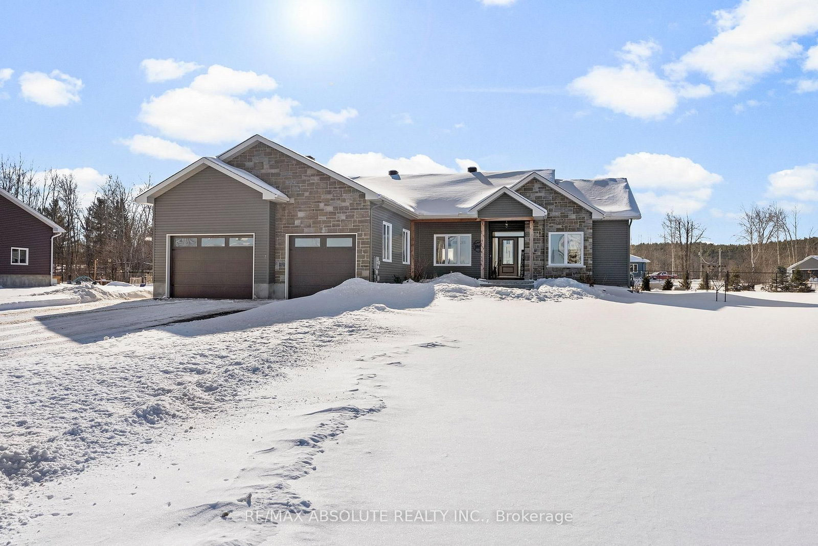 Custom built bungalow in a highly sought after Pakenham subdivision! This beautiful, sun-filled 3 bedroom home features an open concept great room and a thoughtfully designed layout. The Bungalow on 211 Lion Head Drive has 3 bedrooms, 3 bathrooms, and is located on a 222.73 x 199.92 ft loton .50-1.99 acres in the community of Mississippi Mills - Pakenham . Walk right into perfection in this immaculate, well appointed residence. Warm living and dining areas flow seamlessly into the kitchen...ideal for entertaining! The kitchen is a foodie's delight, offering stainless steel appliances, a large centre island with breakfast bar and ample workspace. Gleaming hardwood floors and a cozy gas fireplace complete the inviting great room. The smart floor plan places the primary bedroom in its own private wing, while bedrooms 2 & 3 are located on the opposite side of the home. The stunning primary bedroom features a walk-through 5 piece ensuite with designer finishes including oversized shower, a stand-alone soaker tub and a custom walk-in closet with built ins. Bedrooms 2 & 3 are generously sized with ample closet space, and the main bath is tastefully finished in rich, modern tones. Convenient main floor laundry offers direct access to the oversized heated double garage. The fully finished lower level is completed to the same high standard as the main floor and includes a separate entrance from the garage making it ideal for an in-law or income suite. This level offers a spacious radiant floor heated living area with peninsula and kitchenette, two large bedrooms and a versatile toddler room that could easily be converted into a home office or additional living space. Fully fenced property with $100,000 of landscaping, retractable awning, hot tub and outdoor fire-pit creates a relaxed, rural retreat, minutes from the Pakenham Highlands Golf Course and the Pakenham Ski Hill. Country living made easy with natural gas heat, generator included + Bell Fibre Internet ! Conveniently located only 25 minutes to Kanata, making for an easy commute! A Must See !
