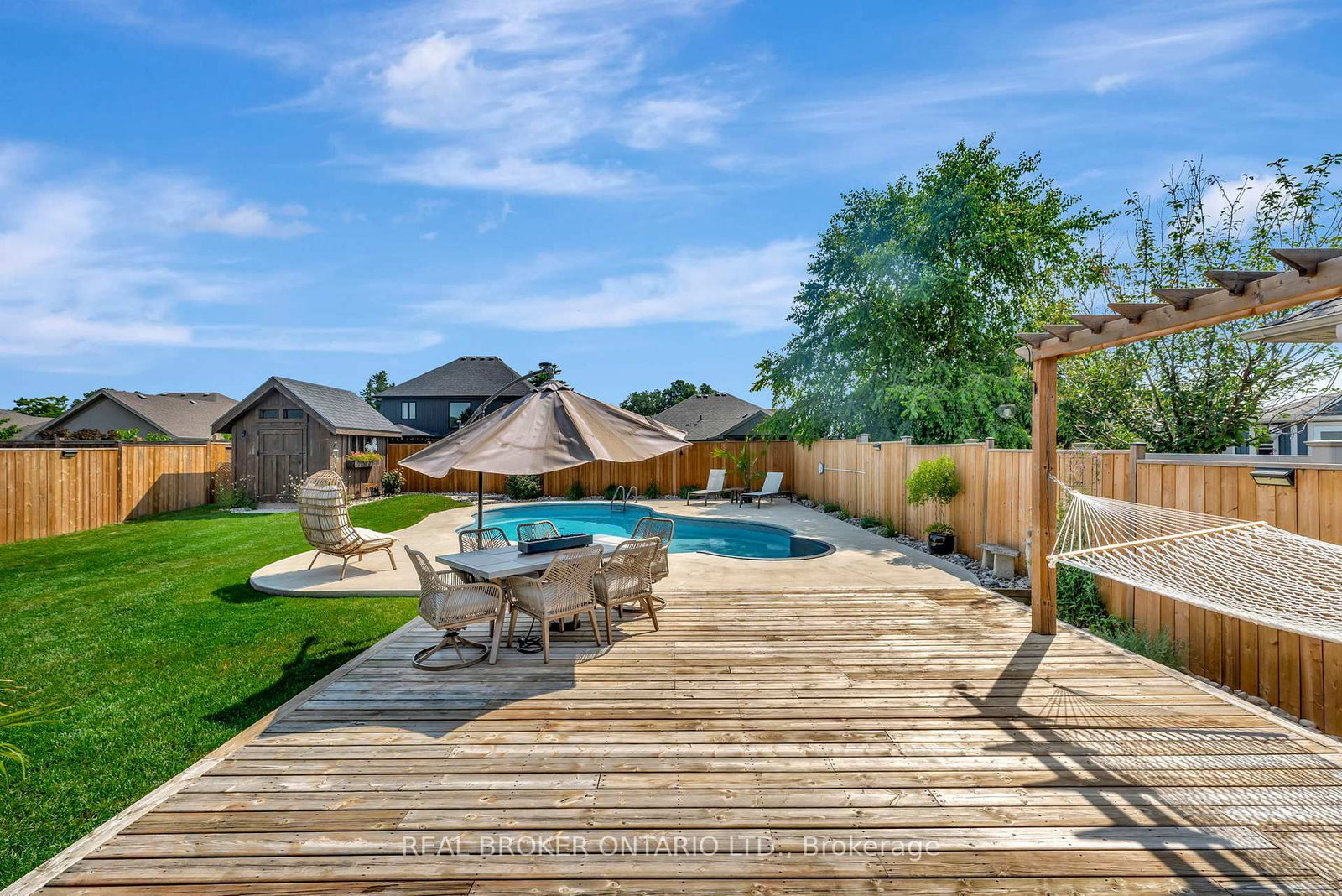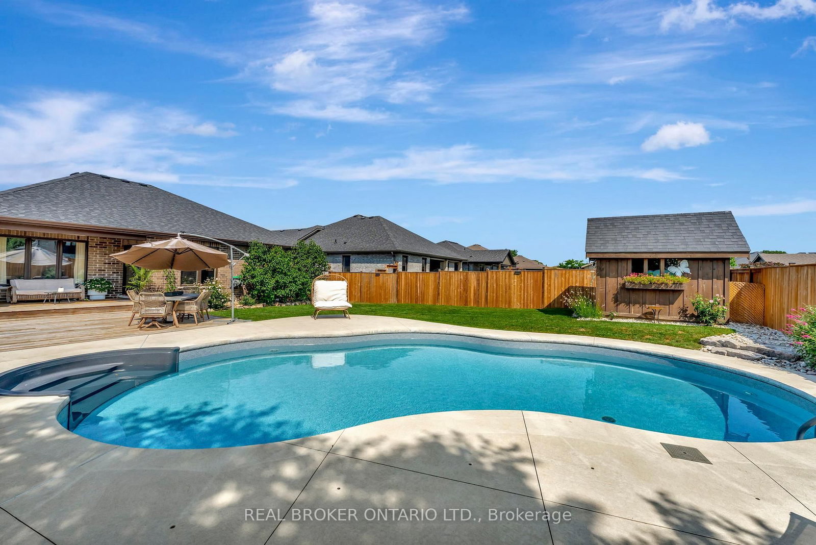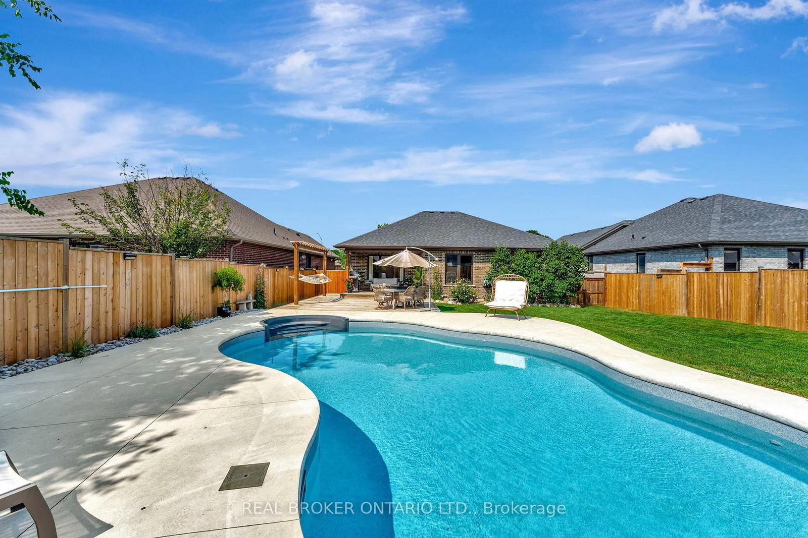 Welcome to this beautifully maintained 2+1 bedroom, 2 bathroom brick bungalow in Delhi, Ontario - offering stylish finishes, functional living space, and your own backyard oasis. The Bungalow on 304 Courtland Street has 2 bedrooms, 2 bathrooms, and is located on a 134.38 x 58.07 ft lot in the community of Delhi . Step inside to a welcoming foyer that leads to a bright front bedroom and convenient 4-piece bathroom - perfect for guests or a home office. The open-concept living room is warm and inviting, anchored by a stunning stone fireplace that creates the perfect focal point for relaxing or entertaining. The gorgeous quartz kitchen features rich dark wood cabinetry, a breakfast bar with pendant lighting, and a dedicated dining area with sliding doors leading to your outdoor patio. Just off the kitchen, the spacious primary bedroom retreat offers a luxurious 5-piece ensuite. Main floor laundry adds everyday convenience. Downstairs, the partially finished basement provides a large recreation room and an additional bedroom - ideal for guests, teens, or extended family- plus a bathroom rough-in offering the opportunity to easily add a third full bathroom. Step outside and experience your own private paradise. The expansive wood deck with a built-in hammock extends your living space, while the exposed concrete with stamped edging adds a polished touch. Enjoy summers by the beautiful heated 16x32 South Coast inground pool, all maintained effortlessly with a 4-zone Rain Bird irrigation system. This home blends comfort, style, and outdoor luxury - a true standout in Delhi.
