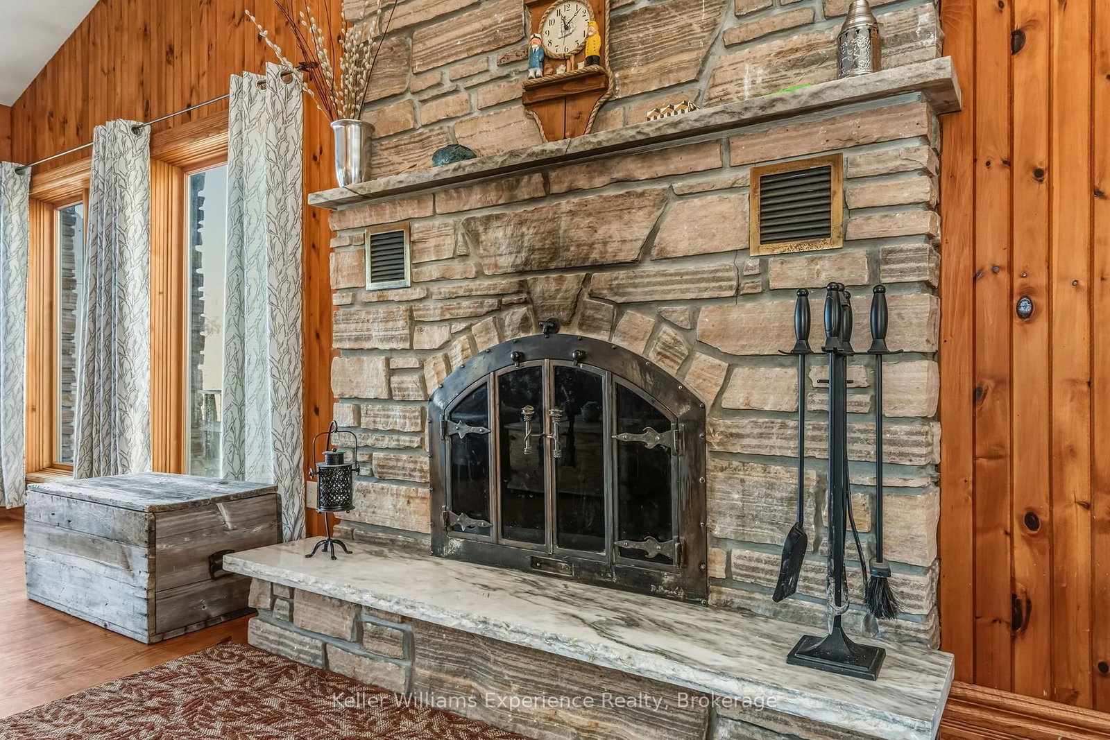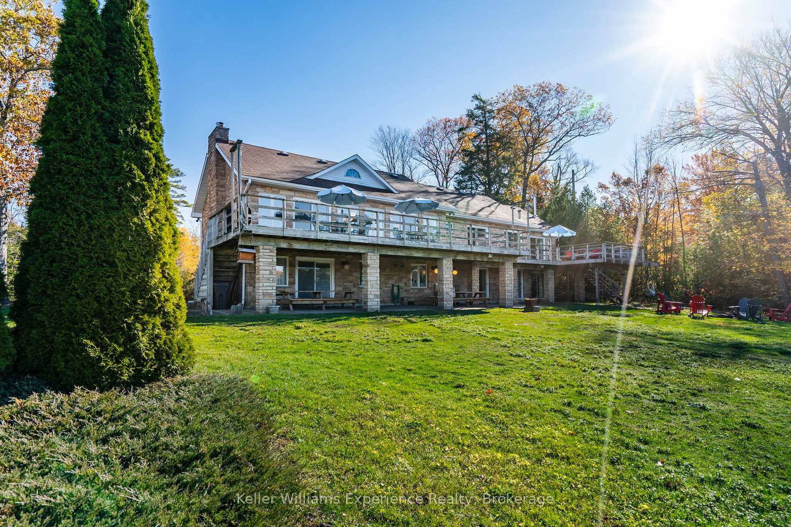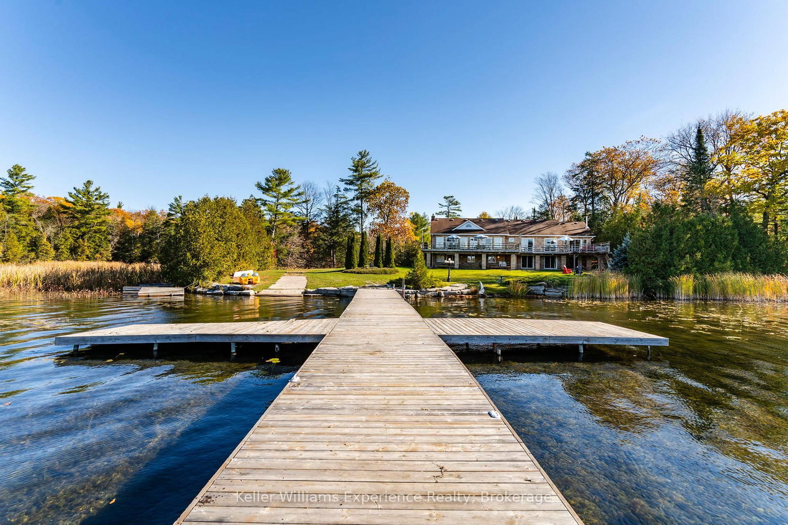 Live your dream on the coveted shores of Gloucester Pool. The Bungalow on 804 Kings Farm Road has 3 bedrooms, 4 bathrooms, and is located on a 196.58 x 110 ft lot in the community of Baxter . This rare property offers over 300 feet of pristine waterfront, blending the tranquility of cottage life with the sophistication of year-round luxury living. This four-bedroom, 4,100 sq. ft. residence is designed for both relaxation and entertaining. The open-concept living and dining area features vaulted ceilings, a majestic stone fireplace, and panoramic lake views that set an unforgettable scene. The chef-inspired kitchen boasts stone countertops, an island breakfast bar, and abundant cabinetry, perfectly balancing beauty and functionality. Down the hall, two guest suites open to the lakeside deck, while the primary suite offers an elegant ensuite, walk-in closet, and private walkout-ideal for enjoying morning coffee as the sun rises over the water. Throughout the home, solid wood doors, custom millwork, crown moldings, and marble countertops showcase fine craftsmanship and attention to detail. The walkout lower level expands the living space with a large family and entertainment area, fourth bedroom, additional bath, and convenient access to the garage and storage area. A sauna, wet bar, and wood-burning fireplace create the perfect retreat after a day on the lake or a cozy spot on a winter's evening. Outside, a mix of lush lawn and mature forest ensures peace and privacy. The expansive dock provides ample room for lounging or docking multiple boats, while a private boat launch offers effortless access to Gloucester Pool and the Trent-Severn Waterway-your gateway to endless boating adventures. This is a rare opportunity to own a timeless lakefront retreat where elegance meets natural beauty. Whether as a luxury cottage or year-round residence, this exquisite waterfront home invites you to live the lifestyle you've always imagined.