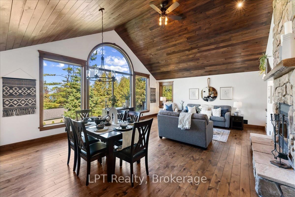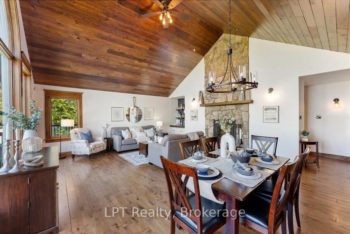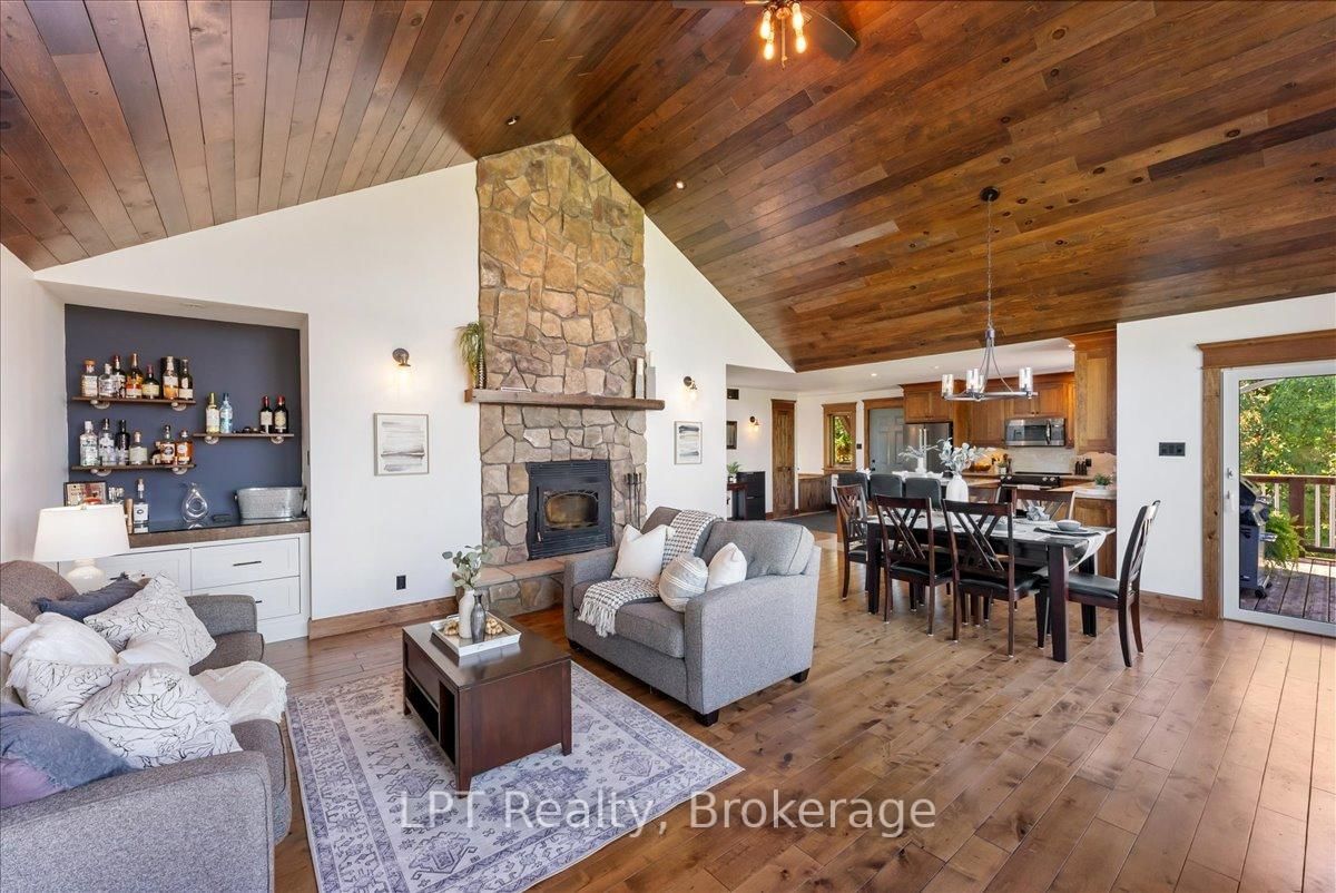 Experience refined lakeside living in this beautifully crafted raised bungalow at 857 Cedar Glen Rd, offering over 3,400 sq ft of f inished living space with breathtaking views of Sturgeon Lake. The Bungalow-Raised on 857 Cedar Glen Road has 3 bedrooms, 3 bathrooms, and is located on a 204.86 x 75 ft lot in the community of Verulam . Situated in the peaceful Kawartha Lakes community of Dunsford, this property is just steps from the Trent Severn Waterway, with a public boat launch just down the road, perfect for boating, fishing, and water recreation. Inside, the open-concept layout features vaulted wood ceilings, large windows with views of Lake Sturgeon, and an impressive floor-to-ceiling wood-burning stone fireplace that creates a warm and inviting great room. The custom kitchen is designed for entertaining, complete with quartz counters, a large centre island, stainless steel appliances, and custom cabinetry. Adjacent to the kitchen, enjoy the convenience of a built-in bar, blending beauty with function. The primary suite offers a tranquil retreat, featuring a walk-in closet, private walk-out to deck, and a spa-inspired 5-piece ensuite with a soaker tub and walk-in glass shower. Two additional bedrooms complete the main floor. The fully f inished lower level is ideal for gatherings and guest stays, showcasing a spacious rec room with a second fireplace, oversized windows, a walk-out to the yard, and space for a games area or pool table. A fourth bedroom with a walkout to the yard, a full bath, and a large laundry room complete the basement. Outdoors, enjoy quiet evenings by the fire pit under the stars, surrounded by mature trees and just a short stroll from the water. The detached garage offers excellent storage or workshop potential, and the long private driveway accommodates multiple vehicles. A rare offering that combines upscale finishes, natural beauty, and year-round enjoyment, this is a home you'll be proud to show.