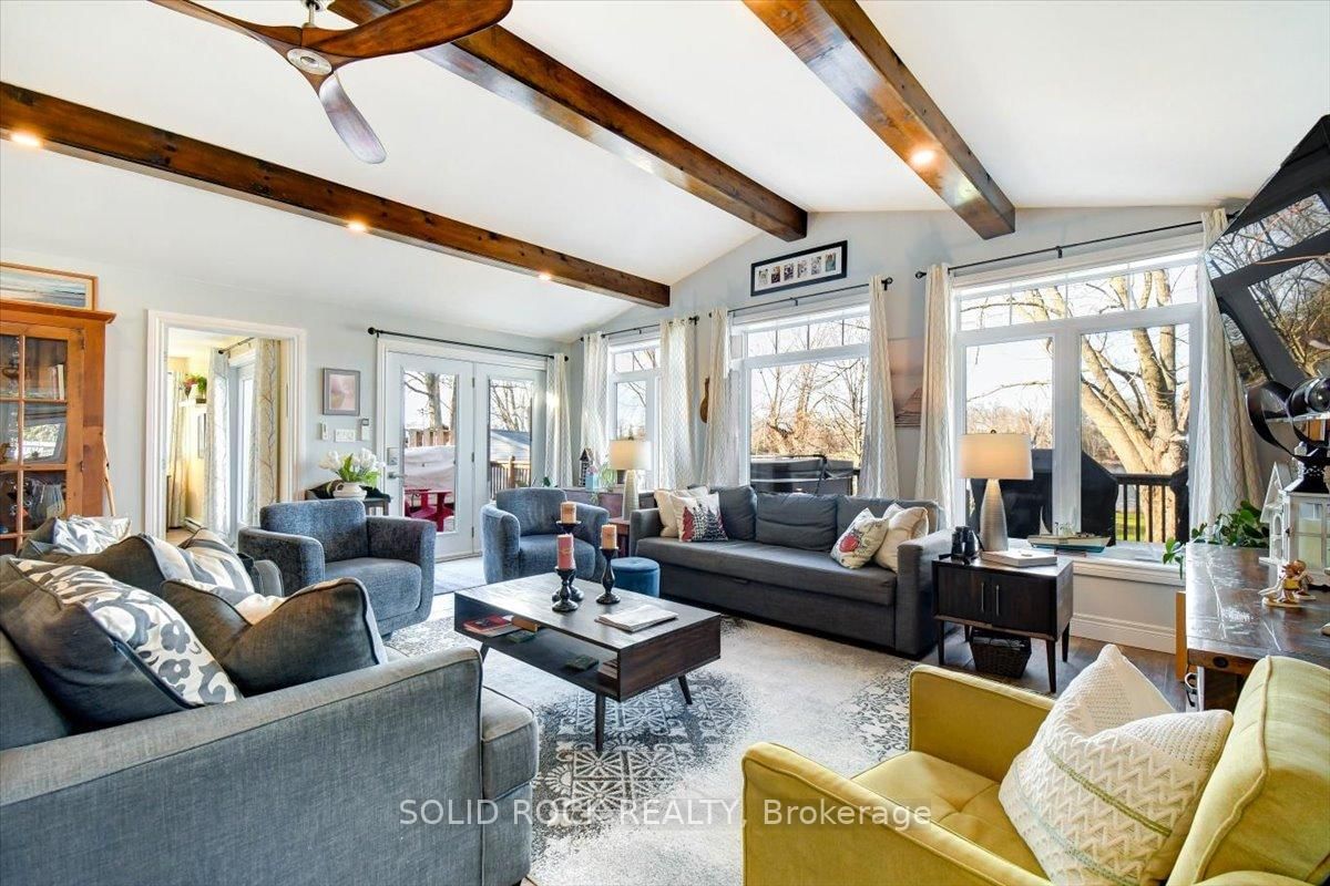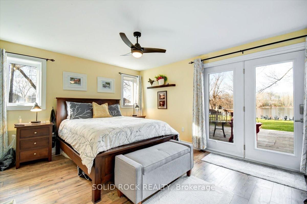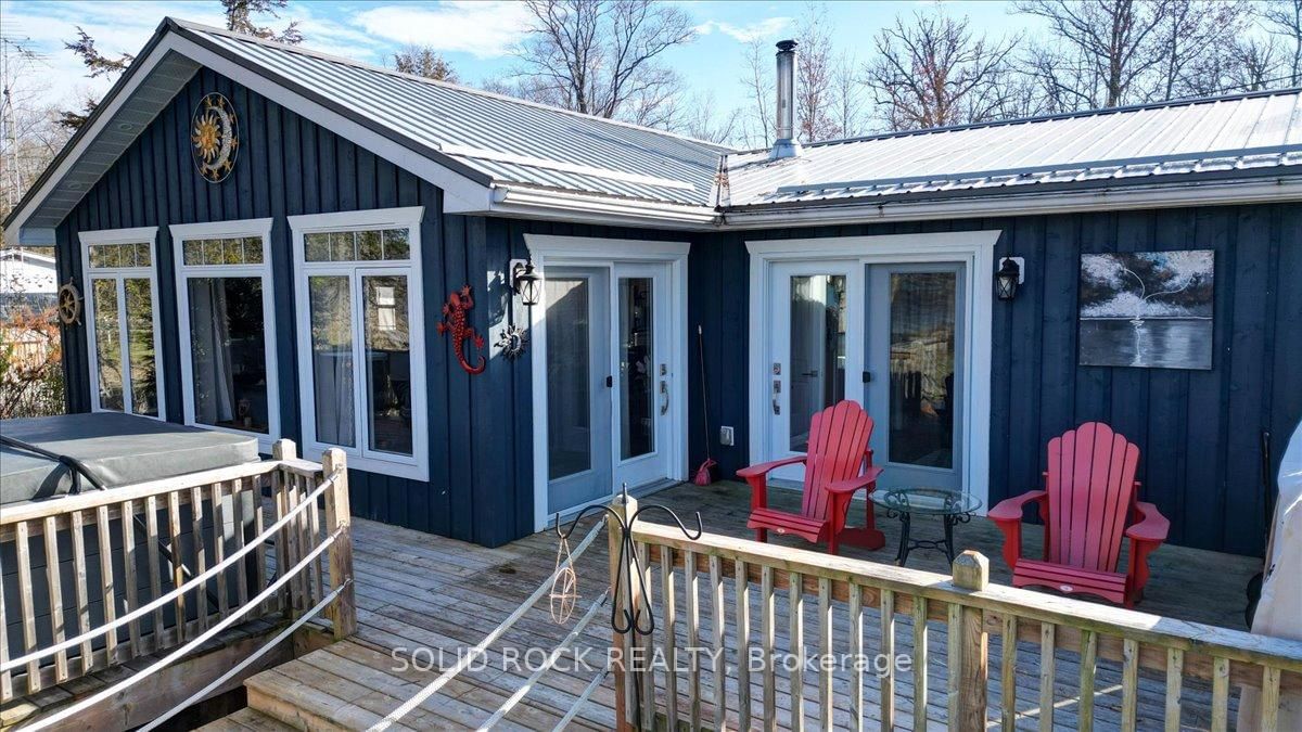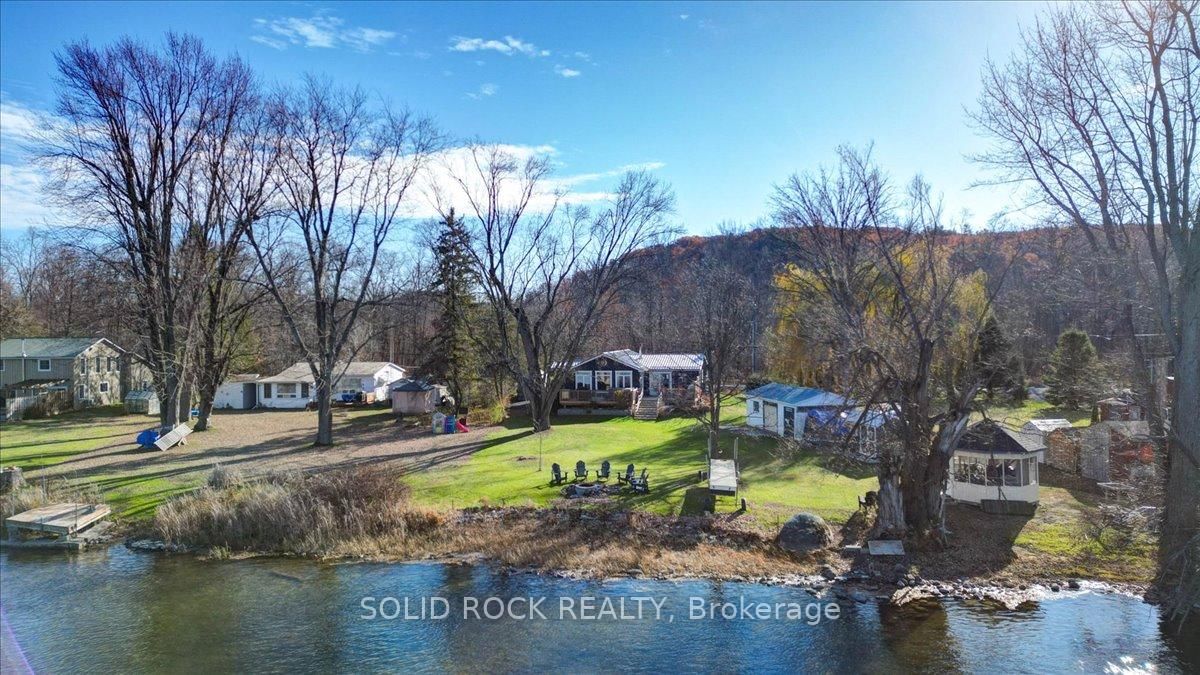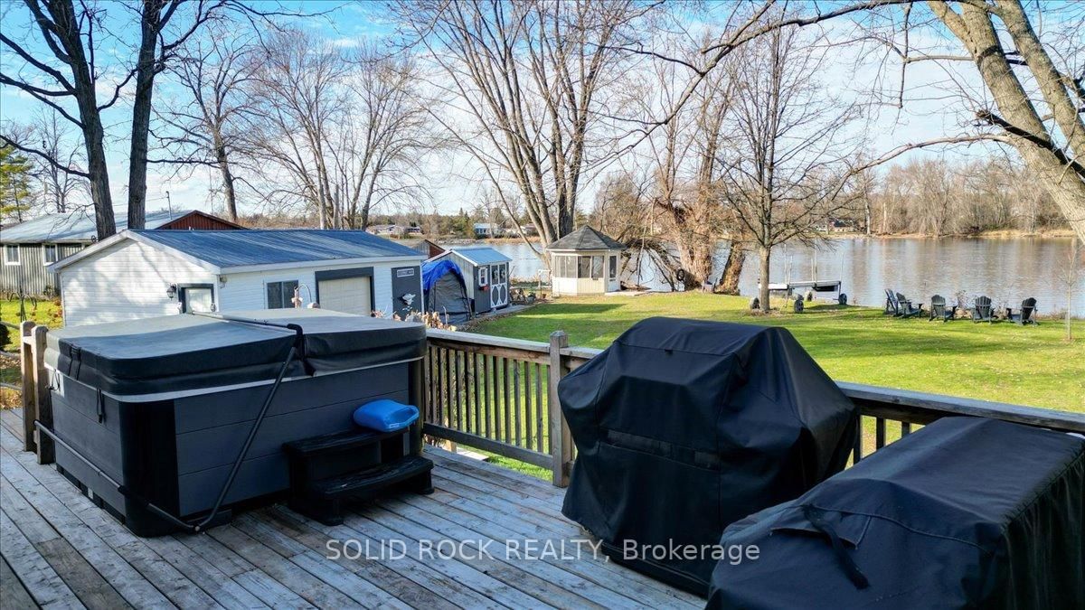 Welcome to this exceptional waterfront property, offering the perfect blend of comfort, charm, and year-round relaxation. The Bungalow on 49 Cooke Armstrong Road has 2 bedrooms, 2 bathrooms, and is located on a 230.85 x 101.3 ft lot in the community of Sidney Ward . This well maintained 2-bedroom, 2-bath home sits on just over .5 acre landscaped lot with breathtaking sunset views and direct access to the water, allowing you to enjoy peaceful living and fishing right from your own dock. Step inside to an inviting open-concept kitchen, dining, and living area designed for effortless flow and natural light. The kitchen features stainless steel appliances, abundant cabinetry, and generous counter space. Striking wood beams add warmth and character, while porcelain flooring runs throughout the main living area for durability and style. A cozy wood stove creates the perfect ambiance on cooler evenings. The spacious primary bedroom boasts a private 3-piece ensuite and direct patio access, making it an ideal space for quiet mornings or enjoying fresh air before bed. The second bedroom is conveniently located next to main bathroom providing function and practicality which includes the laundry facilities, adding to the home's thoughtful layout. A practical mudroom provides additional organization and storage. Outdoor living is truly exceptional here. Relax and unwind on the deck, complete with a hot tub, or gather around the fire pit for evenings under the stars. The property also includes a charming screened-in gazebo, perfect for bug-free summer nights, as well as a workshop and a delightful she shed-ideal for hobbies, storage, or creative space. The beautifully landscaped grounds enhance the home's tranquil atmosphere, with open sightlines to the water and incredible sunset views that never gets old. Whether you're looking for a year-round residence or a peaceful getaway, this property offers unmatched comfort, charm, and riverside living. Don't miss the opportunity to make this stunning waterfront home your own.
