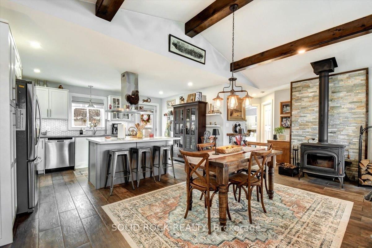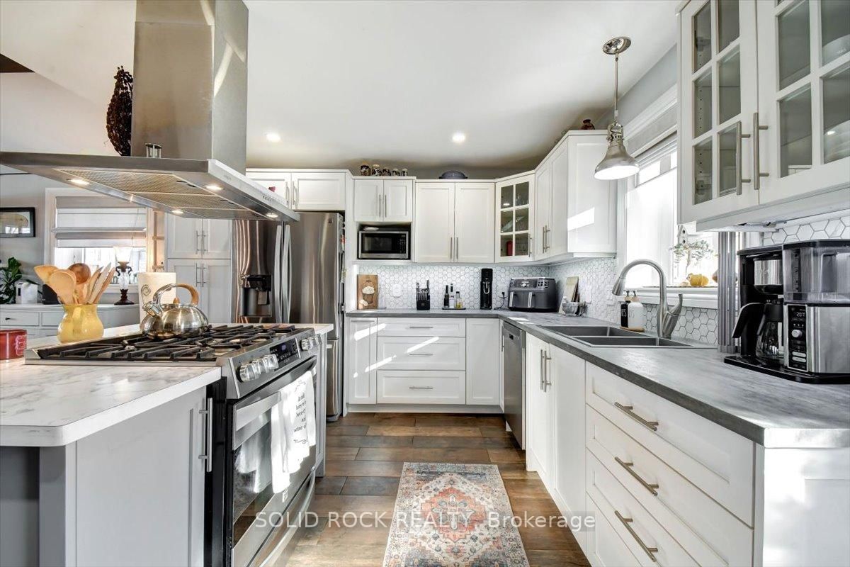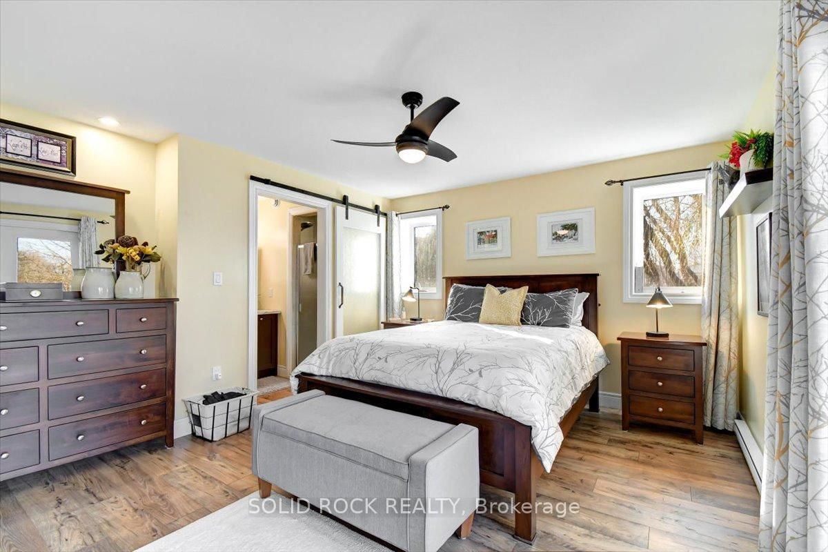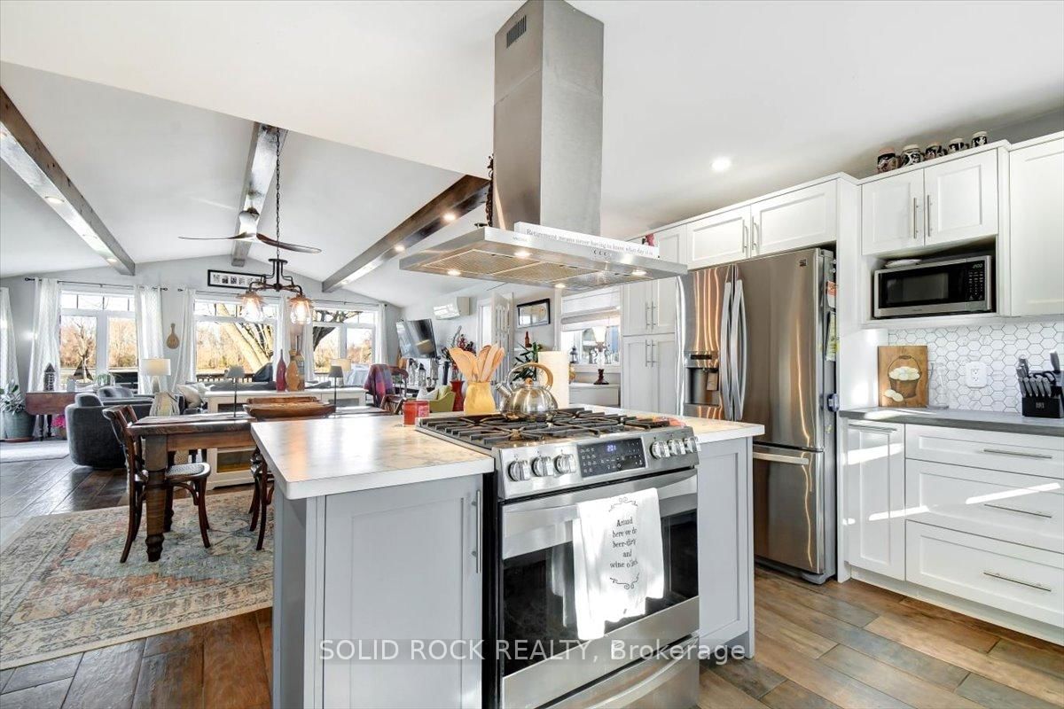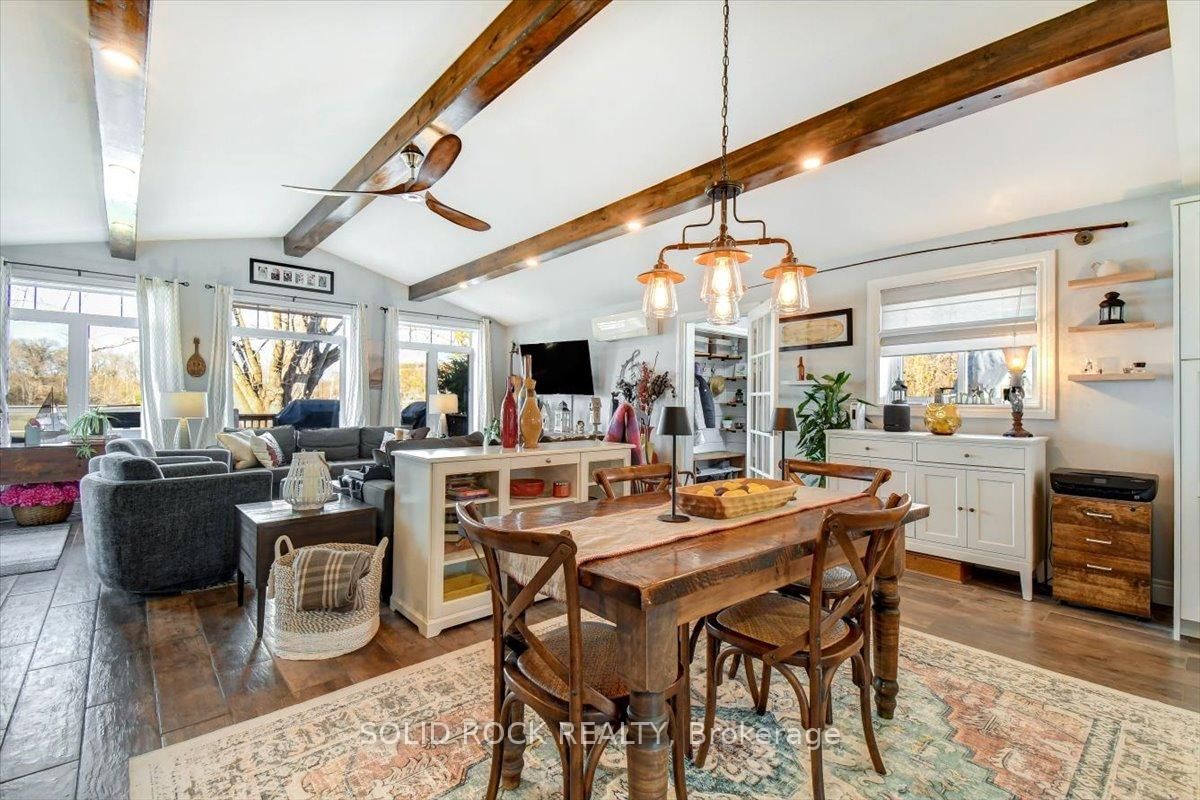 Welcome to this exceptional waterfront property, offering the perfect blend of comfort, charm, and year-round relaxation. The Bungalow on 49 Cooke Armstrong Road has 2 bedrooms, 2 bathrooms, and is located on a 230.85 x 101.3 ft lot in the community of Sidney Ward . This well maintained 2-bedroom, 2-bath home sits on just over .5 acre landscaped lot with breathtaking sunset views and direct access to the water, allowing you to enjoy peaceful living and fishing right from your own dock. Step inside to an inviting open-concept kitchen, dining, and living area designed for effortless flow and natural light. The kitchen features stainless steel appliances, abundant cabinetry, and generous counter space. Striking wood beams add warmth and character, while porcelain flooring runs throughout the main living area for durability and style. A cozy wood stove creates the perfect ambiance on cooler evenings. The spacious primary bedroom boasts a private 3-piece ensuite and direct patio access, making it an ideal space for quiet mornings or enjoying fresh air before bed. The second bedroom is conveniently located next to main bathroom providing function and practicality which includes the laundry facilities, adding to the home's thoughtful layout. A practical mudroom provides additional organization and storage. Outdoor living is truly exceptional here. Relax and unwind on the deck, complete with a hot tub, or gather around the fire pit for evenings under the stars. The property also includes a charming screened-in gazebo, perfect for bug-free summer nights, as well as a workshop and a delightful she shed-ideal for hobbies, storage, or creative space. The beautifully landscaped grounds enhance the home's tranquil atmosphere, with open sightlines to the water and incredible sunset views that never gets old. Whether you're looking for a year-round residence or a peaceful getaway, this property offers unmatched comfort, charm, and riverside living. Don't miss the opportunity to make this stunning waterfront home your own.