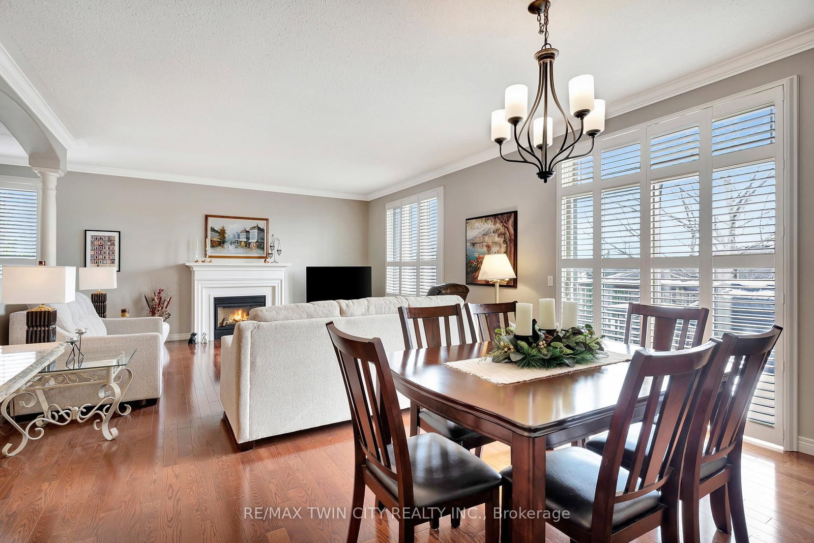 • Living Room: Gas Fireplace, hardwood floor, California Shutters