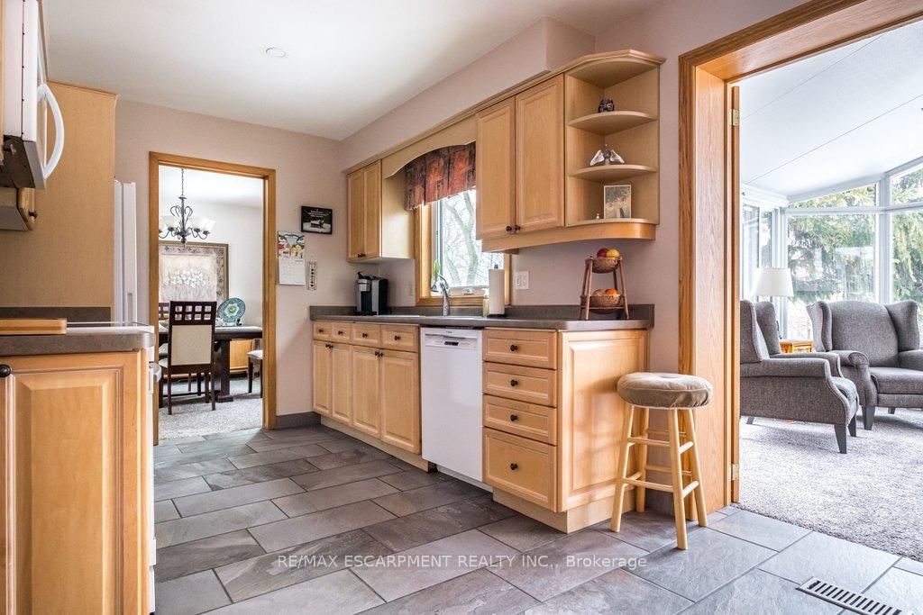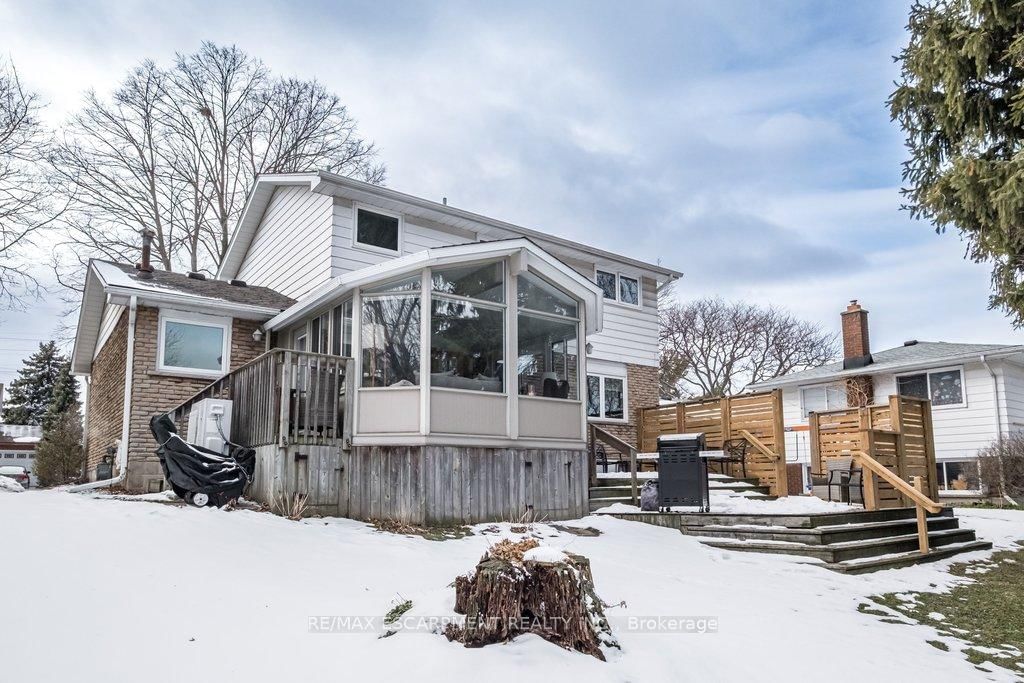 Welcome to 19 Chateau Court in Hamilton, an exceptional opportunity! Families and professionals from the GTA (especially Mississauga, Oakville, & Toronto) seeking space, nature, & family lifestyle without leaving urban conveniences behind. The 2-Storey on 19 Chateau Court has 4 bedrooms, 2 bathrooms, and is located on a 100 x 50 ft loton < .50 acres in the community of Mountview . This beautifully maintained four- bedroom home sits on a premium ravine lot offering rare privacy and peaceful treed views-something increasingly hard to find in larger city markets. The backyard retreat features a bright sunroom addition by QSI (2004, with permits) that opens to a remarkable two-tier deck with privacy fencing overlooking the ravine. A perfect setting for family gatherings, outdoor dining, and relaxed evenings surrounded by nature. Inside, the home balances comfort and practicality with a renovated Canec kitchen (2005), welcoming living room with Napoleon gas fireplace (2004), and durable ceramic flooring (2020) in high-traffic areas including the front hall, kitchen, back entry, and powder room. Alexanian broadloom (2022) adds warmth to the sunroom, living and dining rooms, staircase, and hallway, with original hardwood floors beneath. The upper level offers four spacious bedrooms and a beautifully renovated bathroom (2020), ideal for growing families or home office needs. Finished recreation room provides flexible family space for play, movies, or hobbies. Extensive updates include eaves & gutter protection (2015), repaved driveway (2018), redesigned front porch and gardens by Gelderman Landscaping, roof replacement by DeLuca Roofing (2019), and newer Boonstra furnace, A/C & heat pump (2025). Hamilton boasts exceptional education: public and private grade and secondary schools systems, Hillfield Strathallan College, McMaster University, Mohawk College, & Redeemer College. Family living thrives near parks, escarpment trails, shopping, dining, transit, and convenient highway access. This is a rare opportunity to enjoy privacy, quality updates, natural beauty, & family value many GTA buyers are seeking in Hamilton.