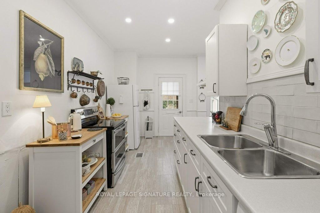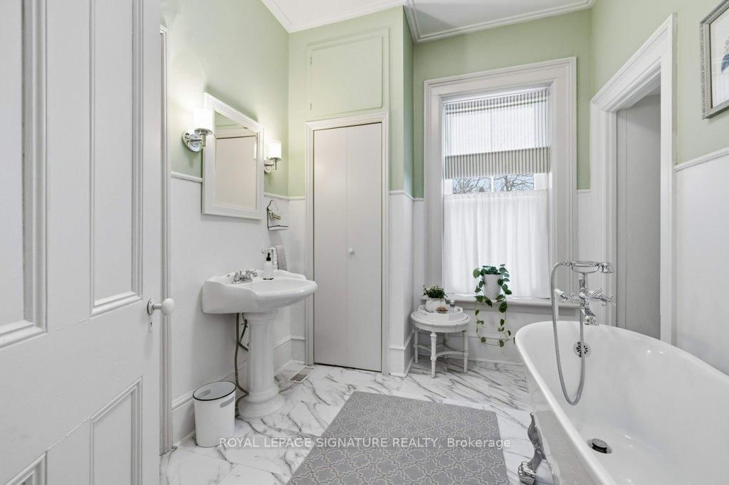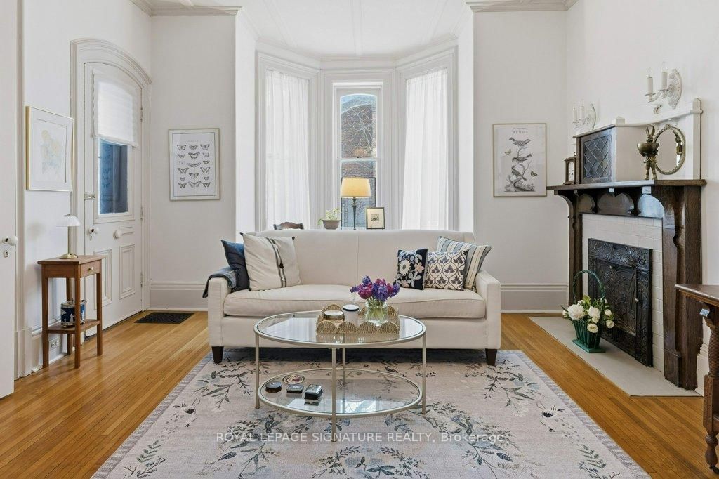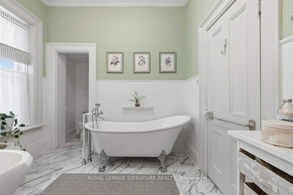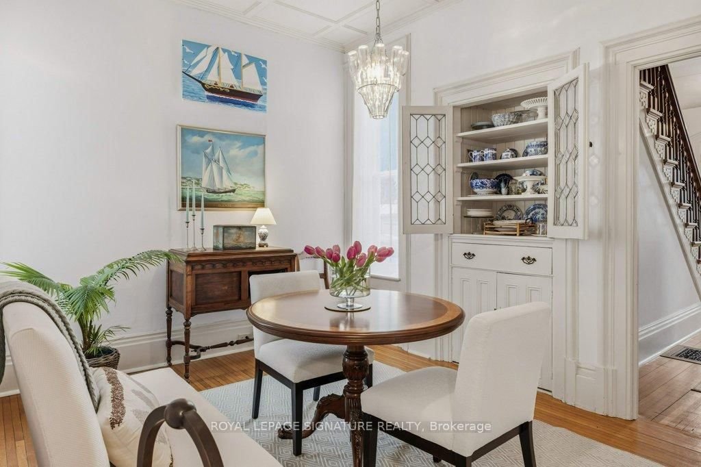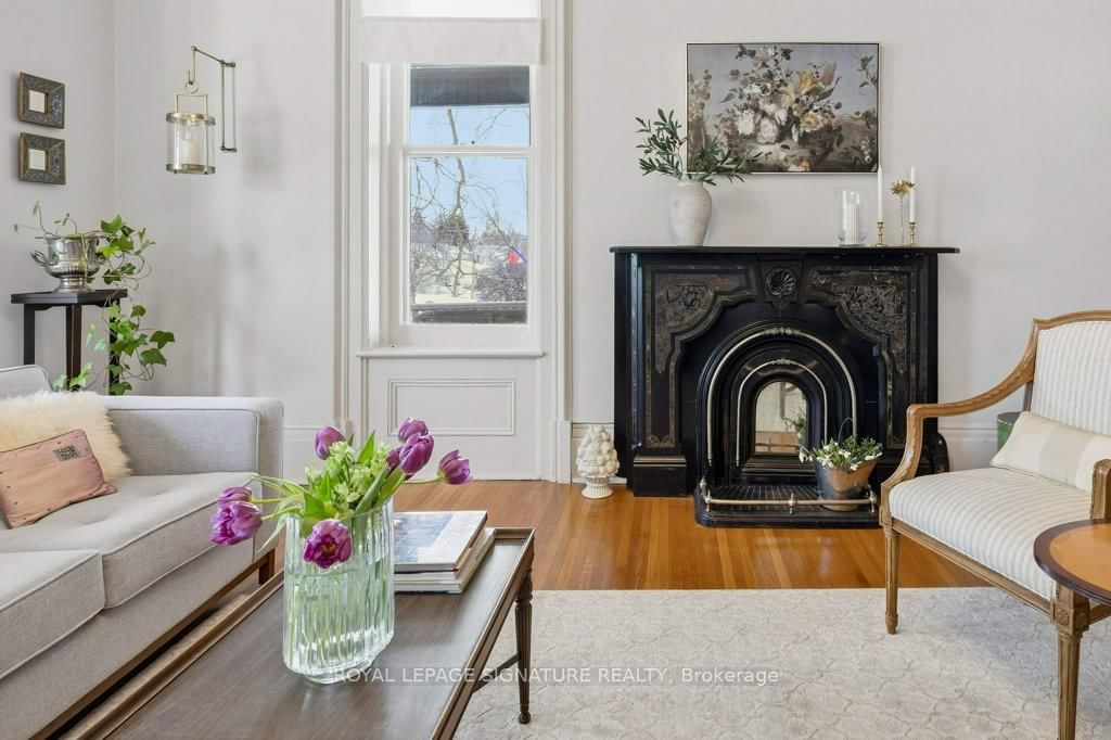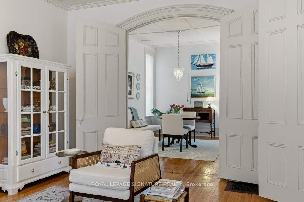 Built in 1871 and quietly anchoring one of Napanee's most established streets, this stately triple brick Victorian offers five bedrooms and two baths and sits just a five-minute walk from the downtown core, riverfront boardwalk, parks, schools, hospital, and local boutiques. The 2-Storey on 172 Dundas Street W has 5 bedrooms, 2 bathrooms, and is located on a 132 x 66 ft loton < .50 acres in the community of Greater Napanee . Set within historic Napanee, the home reflects an era when craftsmanship was intentional and architectural detail mattered.Original wood floors run throughout the light-filled principal rooms. A graceful arched doorway connects the family and sitting rooms, while two fireplaces, one marble and one oak, anchor the main living spaces. Ten-inch baseboards, extended height windows, solid double doors, and a striking bannister speak to a level of construction rarely replicated today. Main floor laundry offers everyday convenience without compromising character.Upstairs, the primary bedroom opens onto a private upper porch, a peaceful perch for evening sunsets. Generous porches extend the living space outdoors, offering multiple vantage points from which to enjoy the gardens and neighbourhood streetscape. The full, dry basement provides substantial storage and workshop space. A shared drive leads to the original two-storey carriage house, where a historic horse stall remains intact beneath lofted storage, a rare and increasingly uncommon survivor of the Victorian era. Meticulously maintained and thoughtfully preserved, this is an opportunity to steward a significant nineteenth-century home in one of Ontario's most charming small towns.