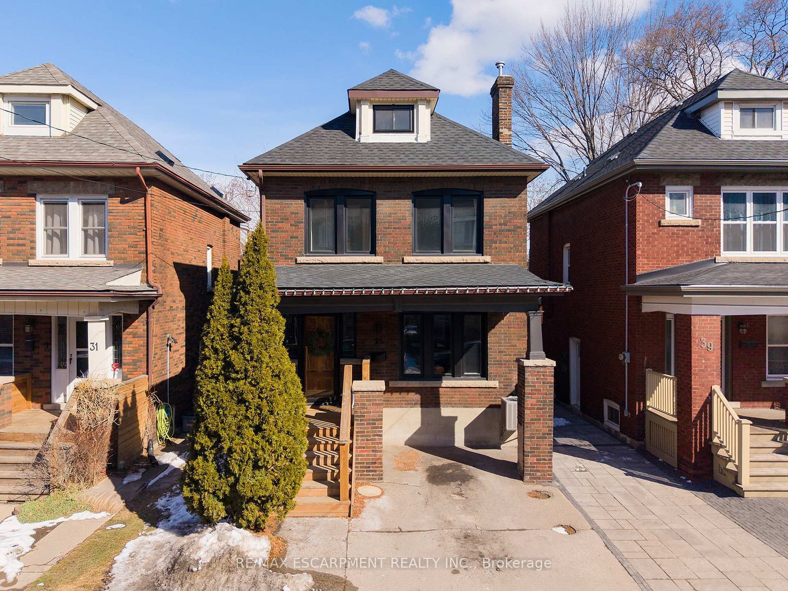 Welcome home to 35 Rutherford Avenue, a handsome 2. The 2 1/2 Storey on 35 Rutherford Avenue has 4 bedrooms, 2 bathrooms, and is located on a 58.66 x 25.25 ft lot in the community of St. Clair .5 storey century home in Hamilton's St. Clair neighbourhood. This well-maintained property offers 4 bedrooms, 2 bathrooms, 1,415 sq ft plus a basement with separate side entrance, blending original character with modern updates. The all brick exterior offers strong curb appeal with new roof (2025), repointed brick and parging (2020), updated front porch (2023), storm doors (2021), and front windows (2021) that enhance the appearance and reflect the care & maintenance throughout the property. The main floor features a welcoming foyer with a solid wood front door, hardwood flooring and beautiful millwork throughout the living & formal dining rooms. An elegant interior pass-through opening between the foyer and living room enhances sightlines and natural light. The living room includes large front windows and a fireplace converted to a Napoleon gas unit (2021). Both the living room and formal dining room showcase decorative stained glass windows, while original baseboards and wood casings highlight the home's character and craftsmanship. The updated kitchen (2023) offers slate flooring, granite countertops, and a newer dishwasher (2023), with rear yard access and basement stairs. The second floor includes 3 bedrooms, an updated 4 piece bathroom with new vanity and penny tile, and updated trim (2023) throughout. The third floor features a finished attic serving as the 4th bedroom, providing flexible space for a bedroom, office, or additional living area. The basement with separate side entrance includes a recreation room, laundry, 3 piece bathroom, and updated A/C (2021). The fenced and private rear yard offers a lush setting with a raised deck (2023) and storage shed. Located in Hamilton's St. Clair neighbourhood, this home offers convenient access to parks, amenities, the Wentworth Stairs, the Escarpment Rail Trail, and the Sherman Access for easy mountain access.