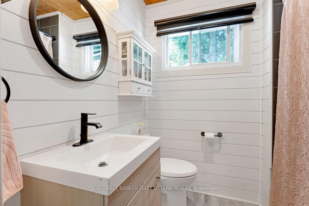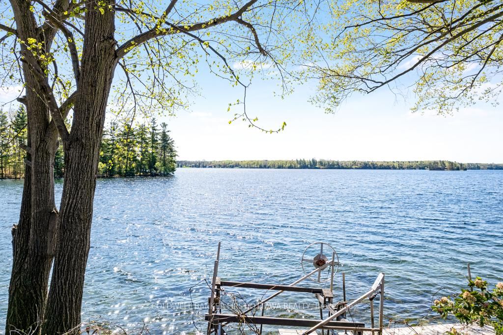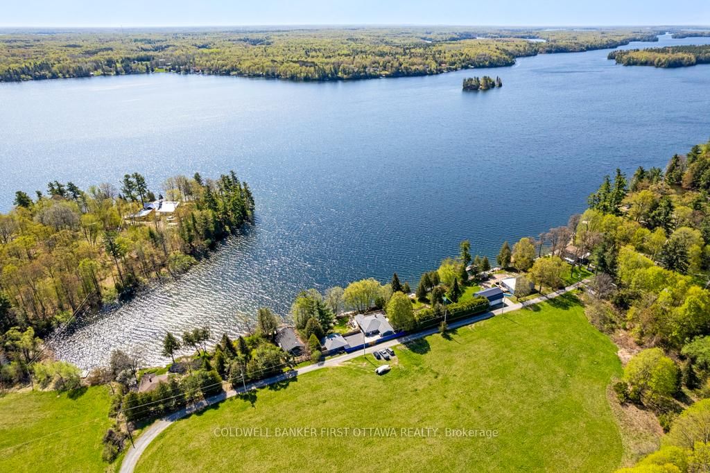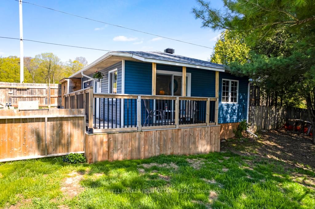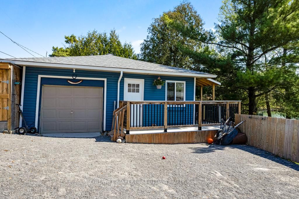 Upgraded home on Big Rideau Lake, with the amazing panoramic lake views. The Bungalow on 889 Jones Point Road has 3 bedrooms, 2 bathrooms, and is located on a 97 x 130 ft lot in the community of Bathurst/Burgess & Sherbrooke (North Burgess) Twp . Lovely family home on the lake or, your wonderful vacation retreat for any time of the year. Light bright bungalow offers expansive spaces inside and out for easy living - plus, all fenced yard is perfect for pets and young children. Freshly painted in 2024, the three bedroom, 1.5 bathroom home has large welcoming foyer with big closet. Livingroom stone fireplace includes energy-efficient pellet stove insert with new 2025 blower fan. Wide patio doors open to huge expansive deck that keeps you connected to the outdoors, facing southeast over the lake. Extra-large dining area open to living room and is adjacent to contemporary kitchen with ledger stone backsplash and lovely birch cabinetry. Relaxing den offers you extra flex space. Den also opens to sitting nook with more patio doors to the deck. Main floor powder room and laundry station. Comfortable primary bedroom with attractive tongue & groove pine ceiling. Two more good-sized bedrooms. The 4-pc bathroom updated 2023 with shiplap wall and rain head shower-tub. Home has heat pump for heating and, cooling with 2020 mini-split wall unit. Updated vinyl windows and sliding doors are 3 to 6 yrs old. Roof shingles new 2020. Hook up in place for a generator. Detached single car garage has hydro. Guest Bunkie completely insulated and has patio doors to its own wrap-about 2022 covered deck. For toys and tools, you have garden shed, storage shed plus small coverall. Gentle, slightly sloping, access to the 128 ft waterfront with boat lift and a dock that's 6' deep at end. Shoreline clear for swimming and has shallow area for young children. Big Rideau Lake is the largest and deepest lake in the Rideau Canal System with great boating and fishing for Lake Trout, Largemouth & Smallmouth Bass plus Northern Pike. Bell hi-speed and satellite available. Cell service. Private road fee for maintenance and snow plowing is approx $400/year. Just 15 mins to Perth.