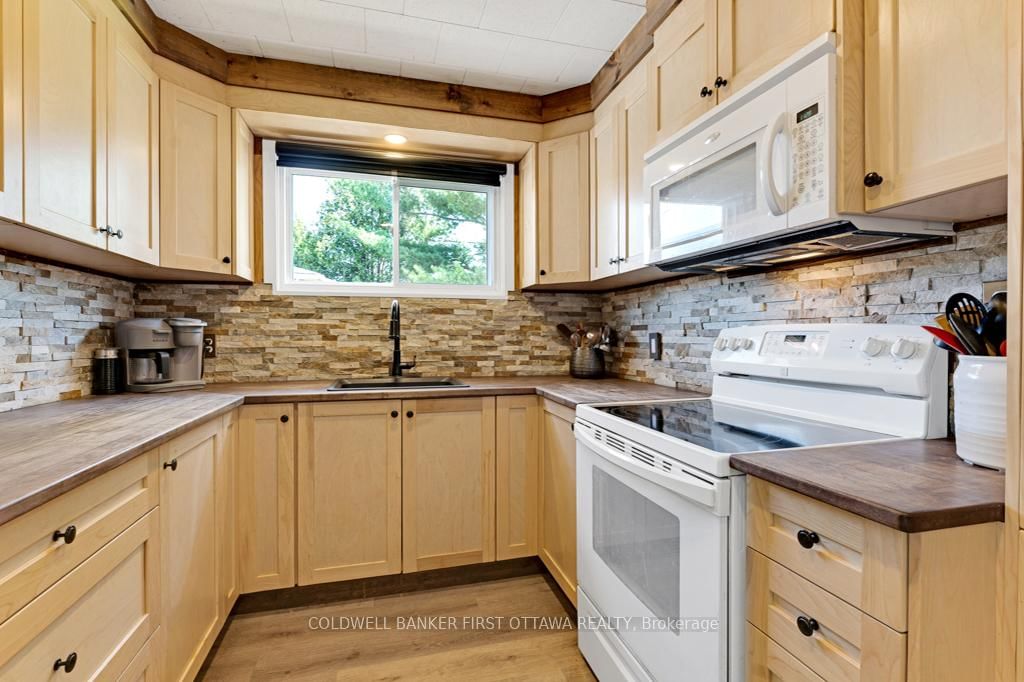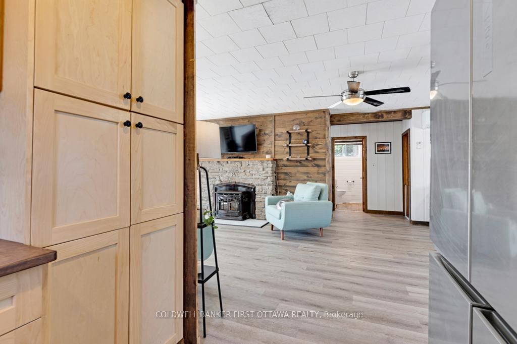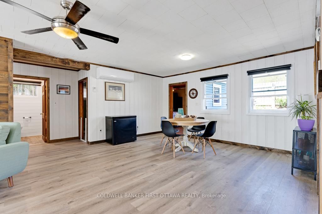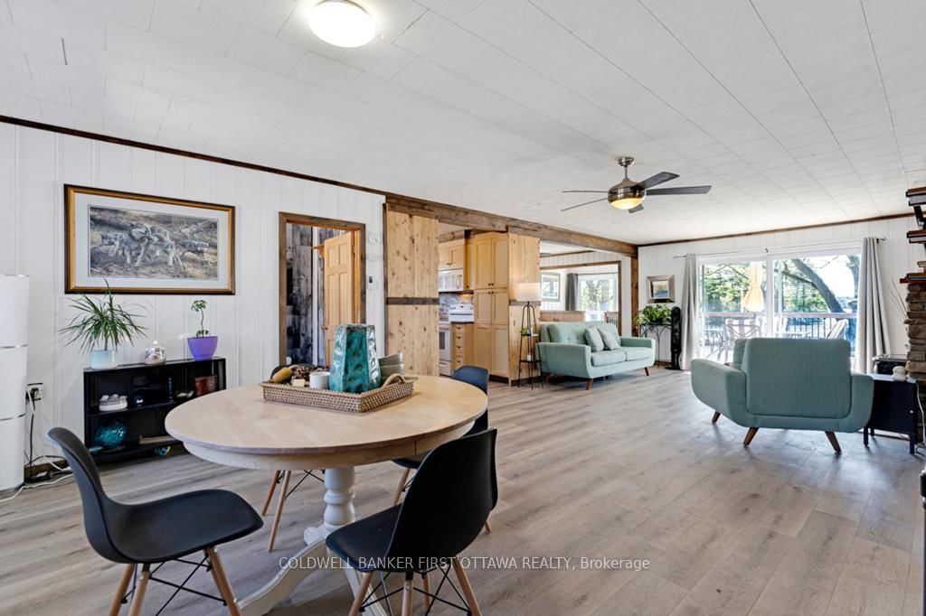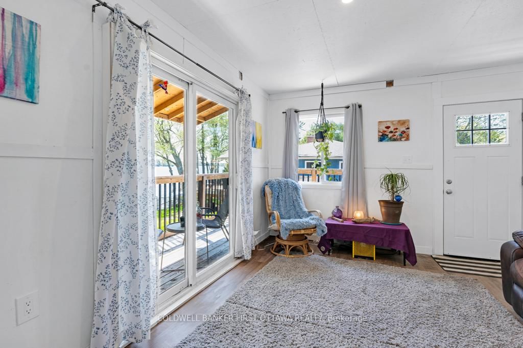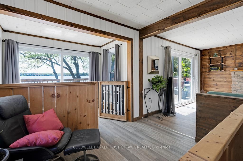 Upgraded home on Big Rideau Lake, with the amazing panoramic lake views. The Bungalow on 889 Jones Point Road has 3 bedrooms, 2 bathrooms, and is located on a 97 x 130 ft lot in the community of Bathurst/Burgess & Sherbrooke (North Burgess) Twp . Lovely family home on the lake or, your wonderful vacation retreat for any time of the year. Light bright bungalow offers expansive spaces inside and out for easy living - plus, all fenced yard is perfect for pets and young children. Freshly painted in 2024, the three bedroom, 1.5 bathroom home has large welcoming foyer with big closet. Livingroom stone fireplace includes energy-efficient pellet stove insert with new 2025 blower fan. Wide patio doors open to huge expansive deck that keeps you connected to the outdoors, facing southeast over the lake. Extra-large dining area open to living room and is adjacent to contemporary kitchen with ledger stone backsplash and lovely birch cabinetry. Relaxing den offers you extra flex space. Den also opens to sitting nook with more patio doors to the deck. Main floor powder room and laundry station. Comfortable primary bedroom with attractive tongue & groove pine ceiling. Two more good-sized bedrooms. The 4-pc bathroom updated 2023 with shiplap wall and rain head shower-tub. Home has heat pump for heating and, cooling with 2020 mini-split wall unit. Updated vinyl windows and sliding doors are 3 to 6 yrs old. Roof shingles new 2020. Hook up in place for a generator. Detached single car garage has hydro. Guest Bunkie completely insulated and has patio doors to its own wrap-about 2022 covered deck. For toys and tools, you have garden shed, storage shed plus small coverall. Gentle, slightly sloping, access to the 128 ft waterfront with boat lift and a dock that's 6' deep at end. Shoreline clear for swimming and has shallow area for young children. Big Rideau Lake is the largest and deepest lake in the Rideau Canal System with great boating and fishing for Lake Trout, Largemouth & Smallmouth Bass plus Northern Pike. Bell hi-speed and satellite available. Cell service. Private road fee for maintenance and snow plowing is approx $400/year. Just 15 mins to Perth.