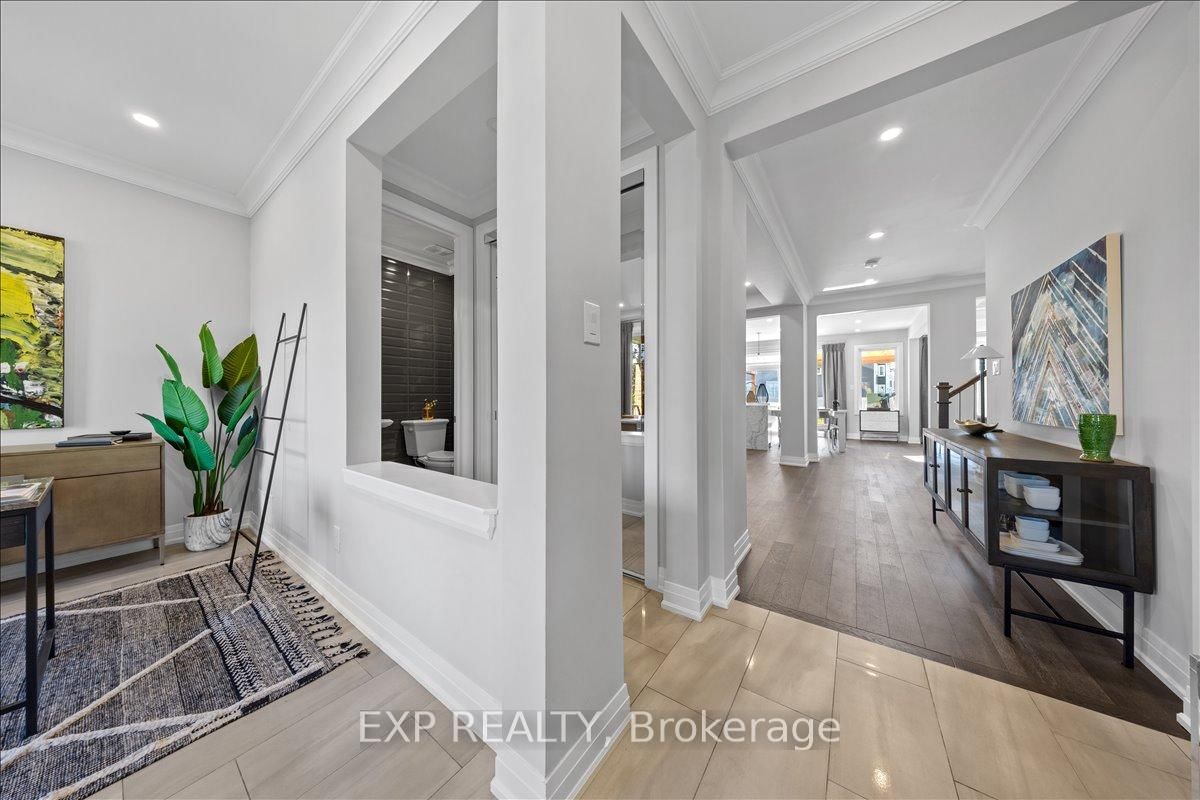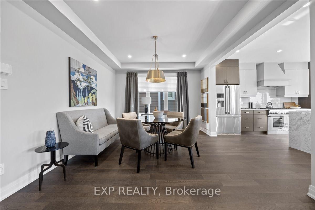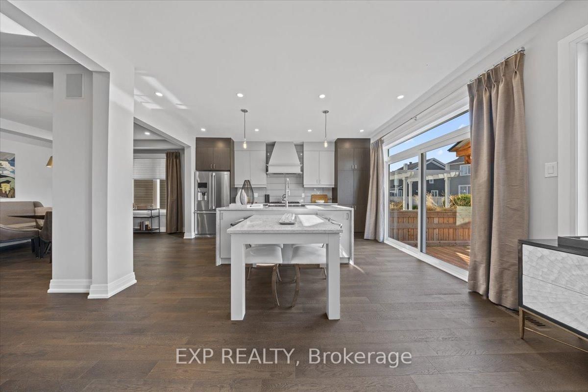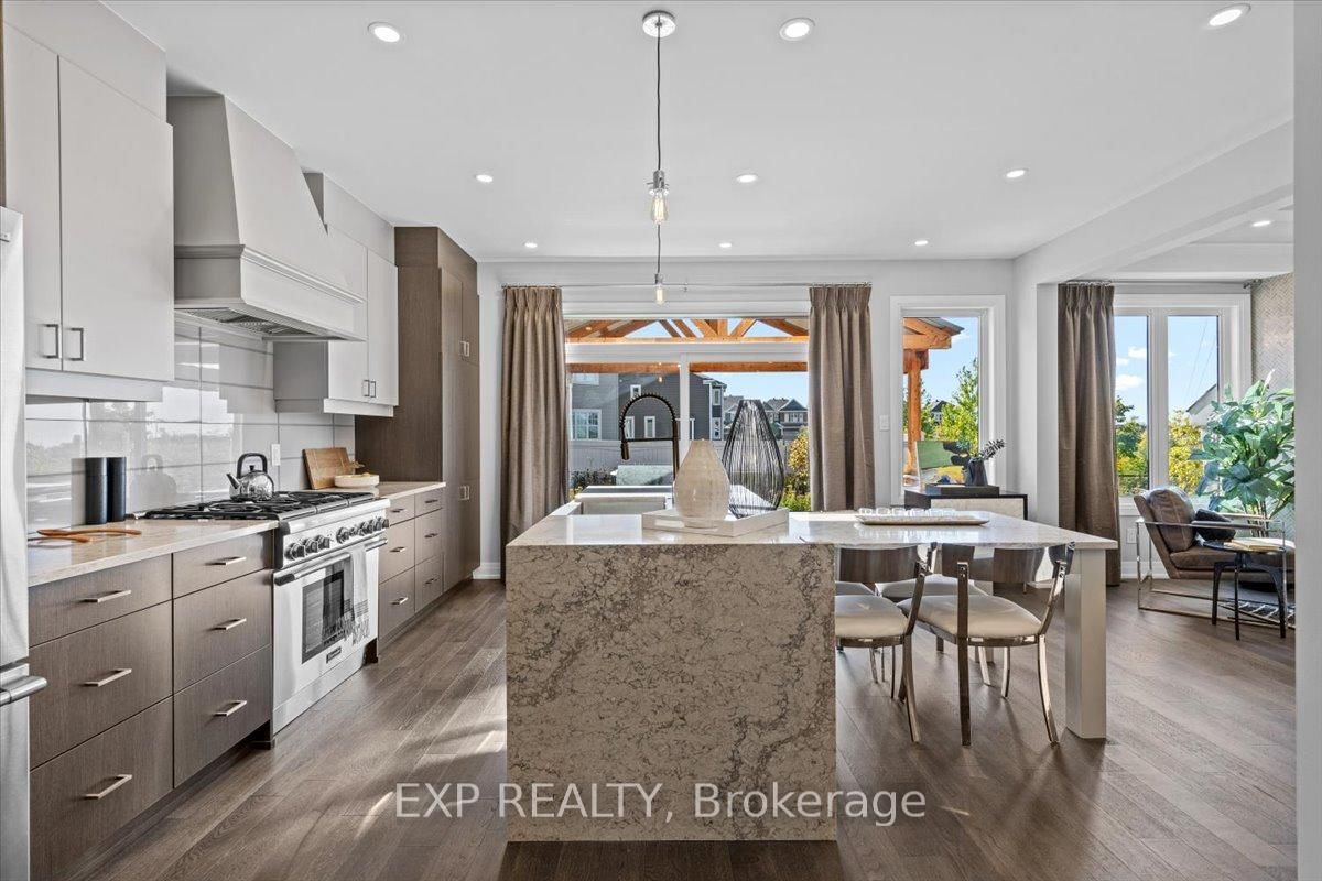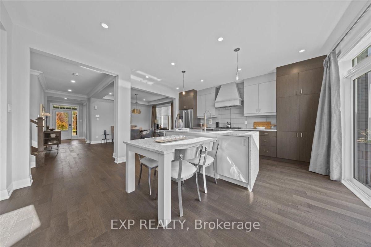 PREMIUM LOT backing onto mature trees with NO REAR NEIGHBOURS, located in the highly desirable Northwoods community. The 2-Storey on 804 Tincture Place has 5 bedrooms, 4 bathrooms, and is located on a 96 x 43 ft lot in the community of Rural Kanata (Central) . This brand new home, The Essence by Mattamy Homes offers an exceptional blend of space, luxury, and thoughtful design, with OVER $110,000 IN UPGRADES throughout including the upgraded SPICE KITCHEN. Situated on a 43' lot, this impressive single-family home with thoughtfully selected design finishes features this rarely offered 3,844 sq. ft. plan, 5 bedrooms, 4 bathrooms, and a double car garage. The main level boasts smooth 9' ceilings and an open-concept layout ideal for everyday living and entertaining. The upgraded kitchen showcases an enhanced layout with quartz countertops, a stunning quartz waterfall island, pots and pans drawers, soft-close cabinetry, a Cyclone hood fan, fridge water line, and an upgraded prep/spice kitchen! Stunning feature allows for all your entertaining needs. The great room features a TV-ready wall, while large windows flood the space with natural light and offer serene views of the treed backdrop. A gas rough-in for a future BBQ adds outdoor entertaining potential. Upstairs, the primary suite is a private retreat with a walk-in closet and spa-inspired ensuite featuring a frameless glass shower. Secondary generously sized bedrooms, including one with its own ensuite, plus convenient second-floor laundry complete the upper level. The lower level includes a bathroom rough-in, offering future flexibility. Additional upgrades include quartz countertops in all bathrooms and laundry, 200 AMP service, and more. Minutes from DND, RCMP, High-tech park and close to parks, schools, shopping, and everyday amenities. This home is under construction. Photos and renderings are for illustrative purposes only. Model home is now open for viewing in the same community.