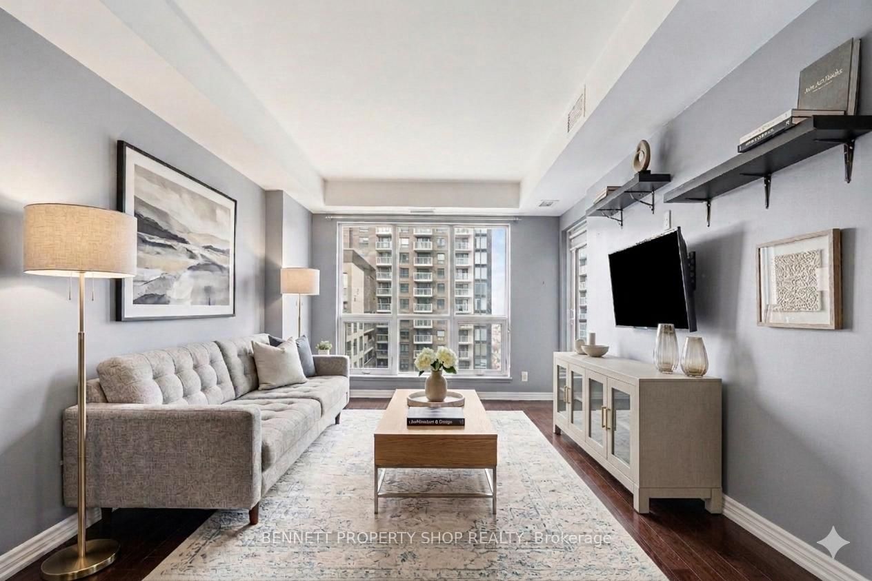 Enjoy downtown living at its best in this stylish 1-bedroom, 1-bathroom condo in sought-after Sandy Hill. The 1 Storey/Apt on 2005-242 Rideau Street has 1 bedrooms, 1 bathrooms, and is located in the community of Sandy Hill . The open-concept living and dining area features floor-to-ceiling windows, rich dark hardwood flooring, and direct access to a private balcony, creating a bright and comfortable living space. The kitchen is finished with dark cabinetry, stainless steel appliances, and a convenient breakfast bar that connects seamlessly with the main living area.The generously sized bedroom offers large patio doors with balcony access, providing a quiet and inviting retreat. A spacious full bathroom and in-unit laundry complete the thoughtfully designed layout.Residents enjoy a wide range of amenities, a fitness centre, sauna, indoor pool, party room with full kitchen, and a landscaped outdoor terrace equipped with barbeques.All of this is within walking distance to public transit and LRT stations, the University of Ottawa, Parliament Hill, Rideau Centre, grocery stores, restaurants, and everyday essentials - an ideal setting for comfortable, connected downtown living. 24 hours irrevocable on all offers. Some photos are digitally enhanced.