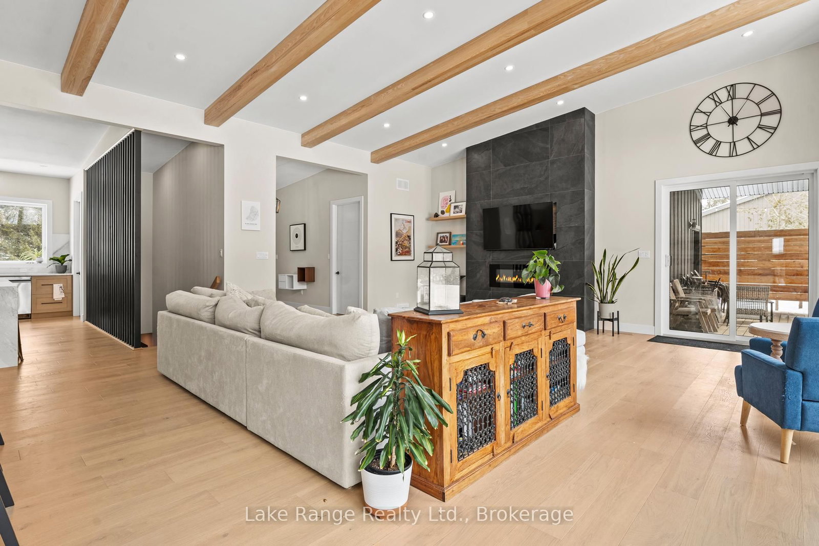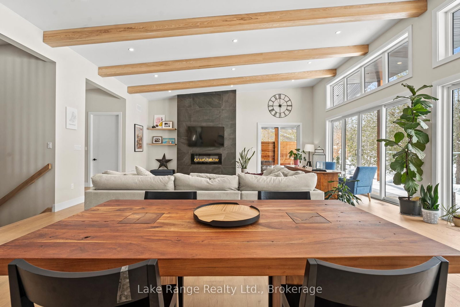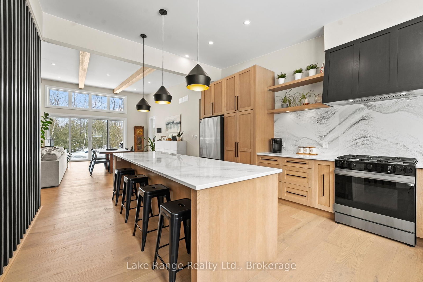 Welcome to this warm and modern custom-built 2024 home, ideally located just steps from the beach in the sought-after community of Blairs Grove. The Bungalow on 23 Green Brae Crescent has 3 bedrooms, 3 bathrooms, and is located on a 209.97 x 100.07 ft lot in the community of Huron-Kinloss . This one-of-a-kind residence features soaring 14-foot vaulted ceilings with exposed beams in the open-concept living and dining area, complemented by expansive windows and sliding glass doors that flood the space with natural light and offer serene forest views. Ten-foot ceilings extend throughout the three main-floor bedrooms, including a spacious primary suite with a walk-in closet featuring custom shelving and a spa-inspired ensuite with heated floors. The stunning kitchen showcases an 11-foot quartz island, white oak cabinetry, waterfall accents, and sleek modern finishes. Engineered hardwood floors flow throughout the main level, which also includes a five-piece bathroom, modern fireplace, and three sliding doors leading to a 56-foot covered back deck with beautiful 16 foot Douglas Fir posts. The fully finished lower level offers 3 additional bedrooms and ample storage space with 9 foot ceilings throughout and a 1,200 sq. ft. custom-finished rec room, perfect for family time or entertaining. The striking exterior combines brick with LP Smart Side board-and-batten siding and backs onto 25 acres of nature trails for added privacy. Located just 160 meters from beach access, this exceptional home offers the best of modern design and beachside living. Contact your Realtor today and come take a look.