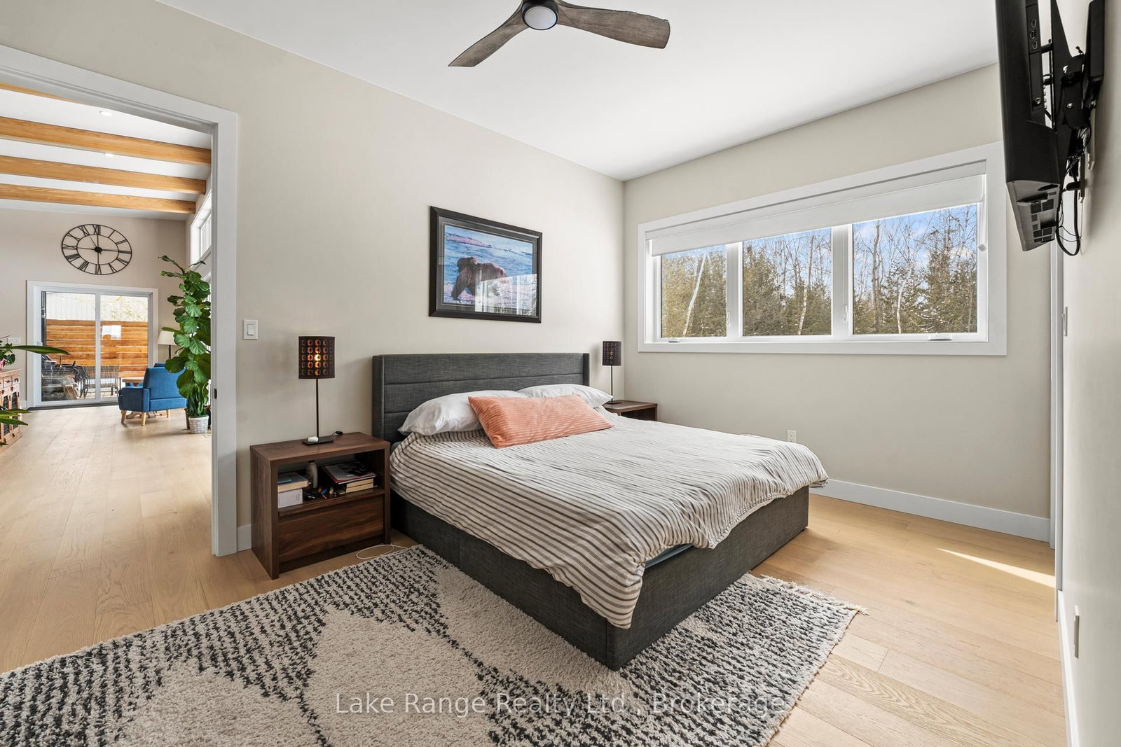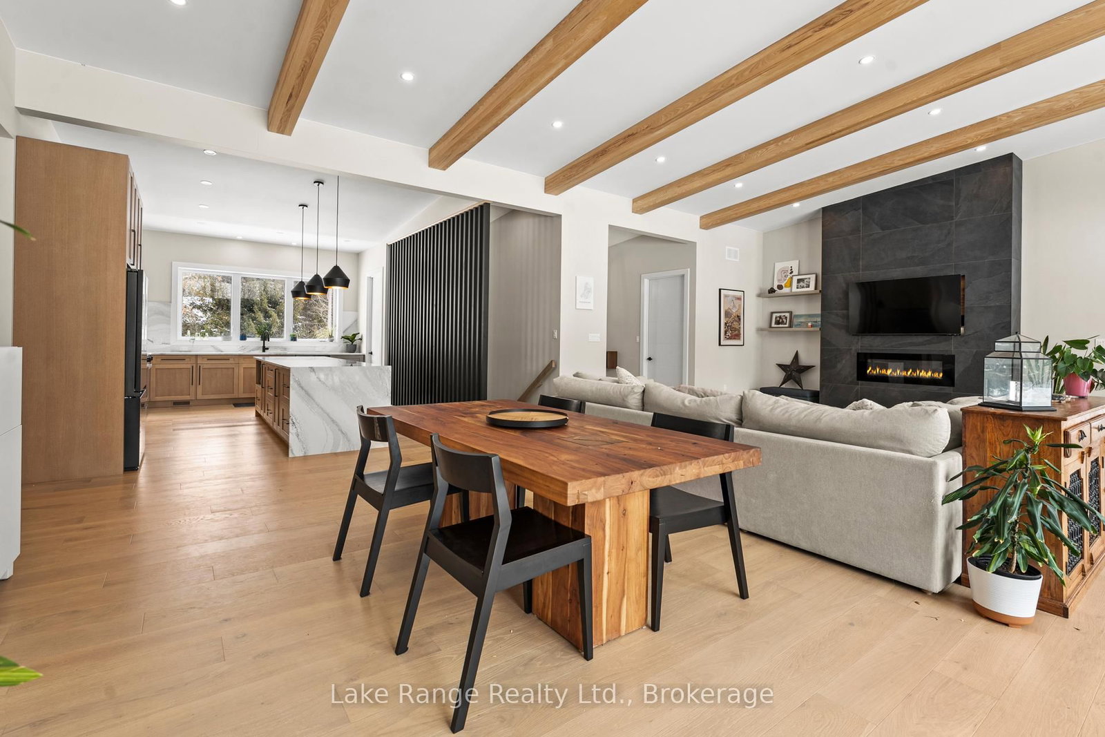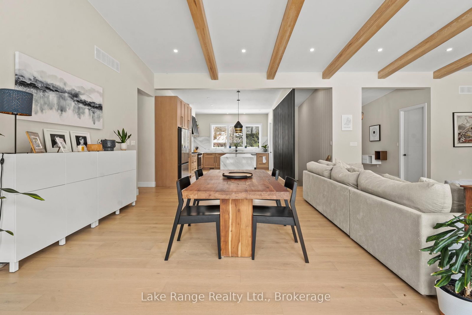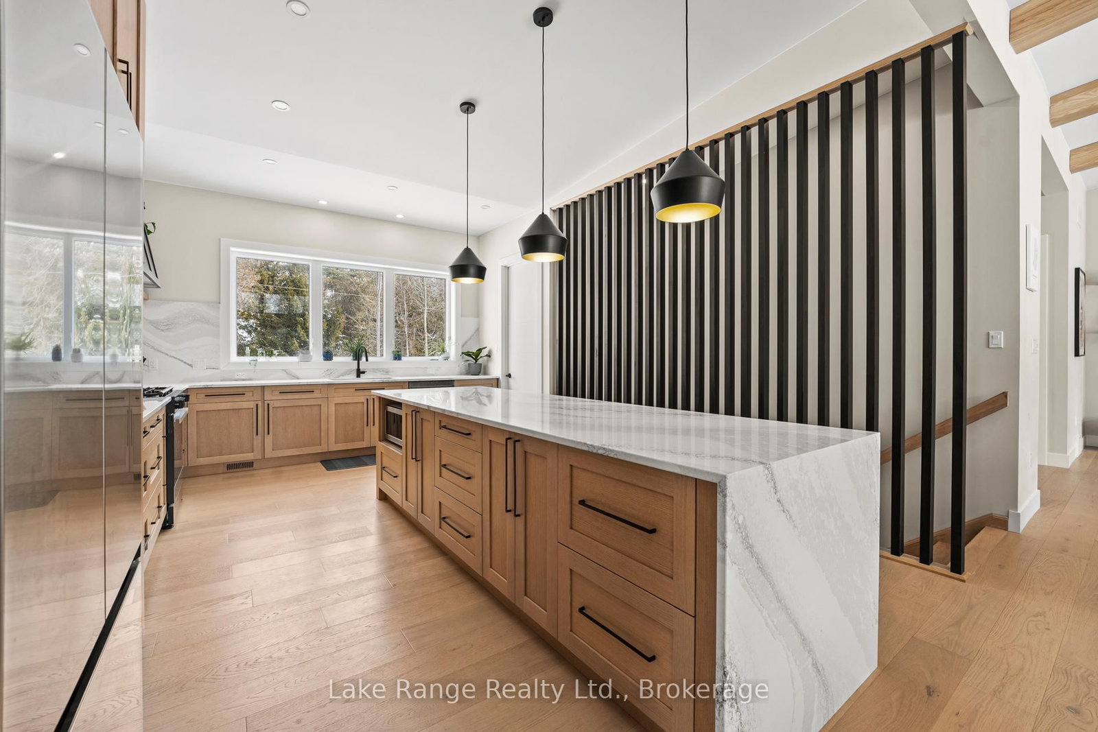 Welcome to this warm and modern custom-built 2024 home, ideally located just steps from the beach in the sought-after community of Blairs Grove. The Bungalow on 23 Green Brae Crescent has 3 bedrooms, 3 bathrooms, and is located on a 209.97 x 100.07 ft lot in the community of Huron-Kinloss . This one-of-a-kind residence features soaring 14-foot vaulted ceilings with exposed beams in the open-concept living and dining area, complemented by expansive windows and sliding glass doors that flood the space with natural light and offer serene forest views. Ten-foot ceilings extend throughout the three main-floor bedrooms, including a spacious primary suite with a walk-in closet featuring custom shelving and a spa-inspired ensuite with heated floors. The stunning kitchen showcases an 11-foot quartz island, white oak cabinetry, waterfall accents, and sleek modern finishes. Engineered hardwood floors flow throughout the main level, which also includes a five-piece bathroom, modern fireplace, and three sliding doors leading to a 56-foot covered back deck with beautiful 16 foot Douglas Fir posts. The fully finished lower level offers 3 additional bedrooms and ample storage space with 9 foot ceilings throughout and a 1,200 sq. ft. custom-finished rec room, perfect for family time or entertaining. The striking exterior combines brick with LP Smart Side board-and-batten siding and backs onto 25 acres of nature trails for added privacy. Located just 160 meters from beach access, this exceptional home offers the best of modern design and beachside living. Contact your Realtor today and come take a look.
