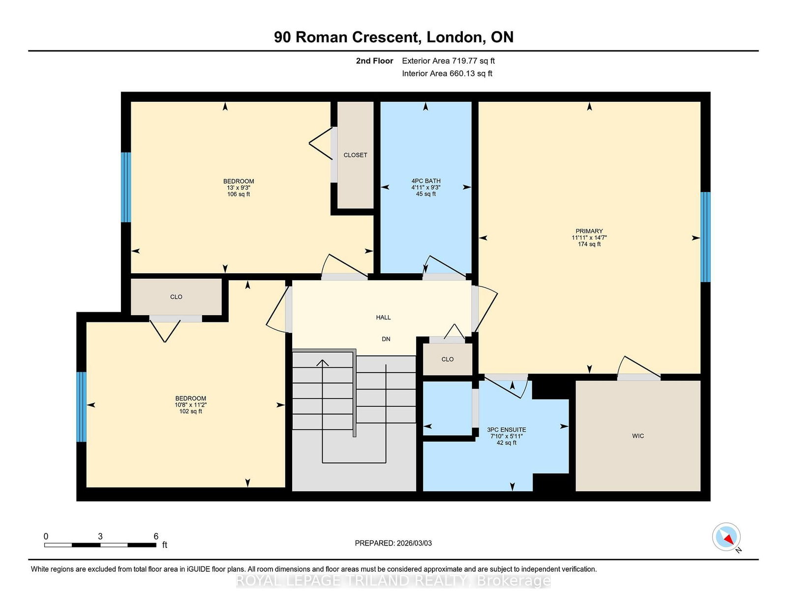 Great 3 bedroom family home situated on a quiet tree lined crescent. The 2-Storey on 90 Roman Crescent has 3 bedrooms, 3 bathrooms, and is located on a 103.56 x 30.02 ft loton < .50 acres in the community of East I . Spacious inviting foyer features a 2-piece bathroom and inside entry to the attached one car garage. Galley style eat-in kitchen with 4 appliances included. Lots of natural light streams into the dining area great for entertaining and open to the bright living room with large picture window. Patio door off dining area leads to private partly fenced back yard with a 12 foot x 18 foot stamped, coloured concrete patio and an 8 foot x 10 foot shed on a concrete pad. Second floor offers 3 bedrooms, principal bedroom with bonus 3 piece ensuite, walk in closet and an additional 4 piece main bathroom. Lower level offers additional living space with a finished family room with cozy gas fireplace great space for watching movies, or relaxing. Additional storage area, laundry room and rough in for future bathroom. Washer/dryer included plus an owned water heater purchased in 2023. Updates through the years include: 40 year shingles installed in 2010, 2 new vinyl bedroom windows in 2011, freshly painted main floor, bedrooms and basement. Parking for 3 cars featuring a double wide concrete driveway. Conveniently located close to schools, transit, just minutes away from Argyle Mall, grocery stores, big box stores, London Airport and Veterans Memorial Parkway with quick access to highway 401.Don't miss out on this opportunity to live in this family friendly home offering lots of space and versatility with a possible flexible possession date.