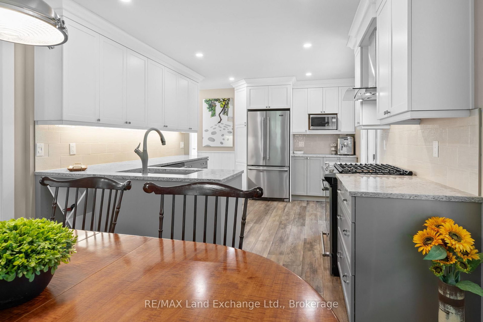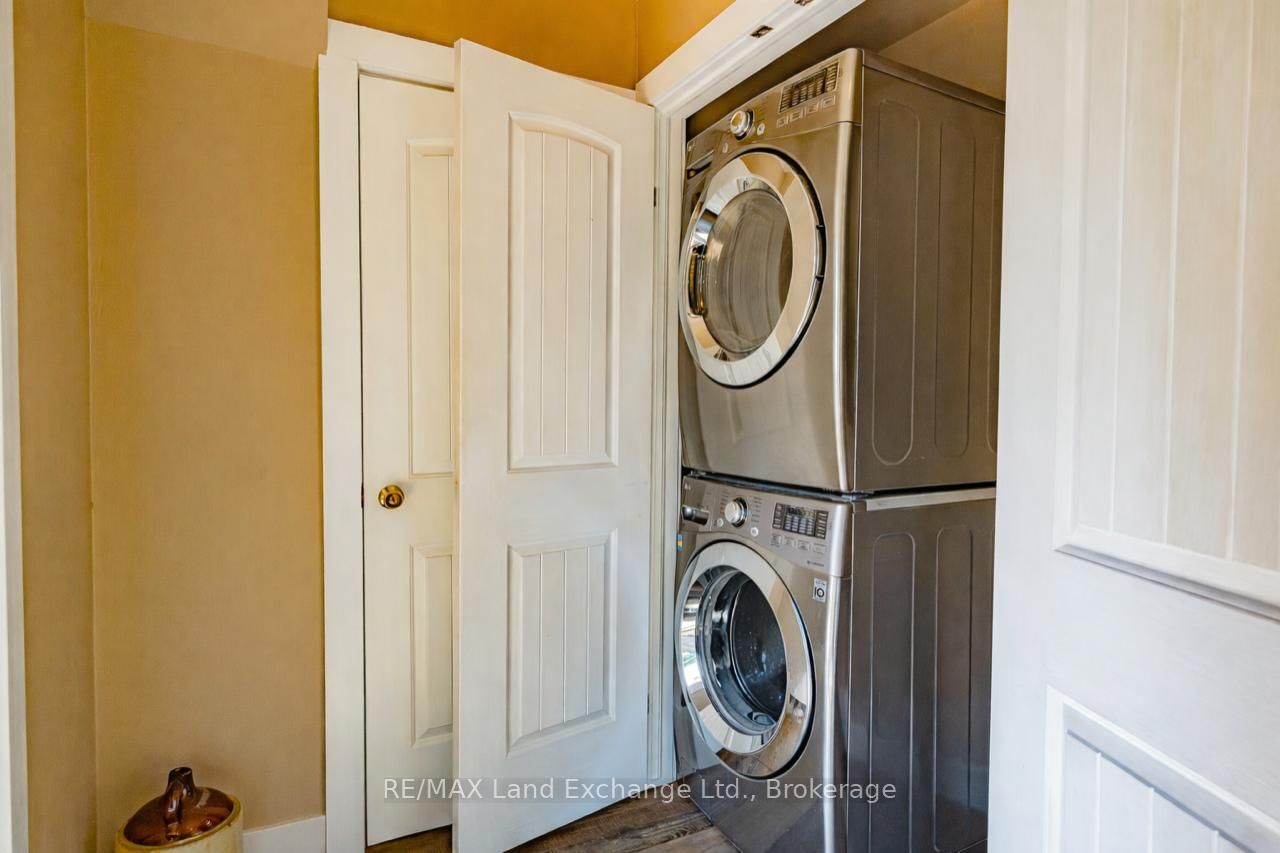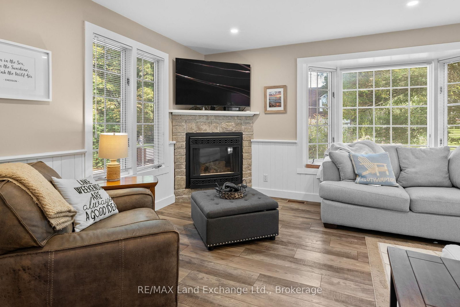 Welcome to 215 Island Street, a charming 4-bedroom home set on a beautifully private, landscaped corner lot in the heart of Southampton. The 2-Storey on 215 Island Street has 4 bedrooms, 2 bathrooms, and is located on a 125 x 60 ft lot in the community of Saugeen Shores . This well-maintained property offers the perfect blend of comfort, outdoor living, and cottage charm, just a short walk to sandy beaches, downtown shops, and the areas popular walking and biking trails. Inside, a spacious living room features a cozy gas fireplace and luxury vinyl plank floors that flow throughout the main level and upstairs. The bright, updated kitchen is designed with style and function in mind, showcasing white upper and grey lower cabinets, modern quartz counters, upgraded appliances, and abundant cabinet space. A cheerful dining room is filled with natural light, while the main floor also offers a convenient laundry area and a large 2-piece bath. Upstairs, four sun-filled bedrooms provide space for family or guests, along with a full 4-piece bathroom.The backyard is a true retreat. Enjoy summer evenings around the fire-pit, or relax on the large wrap-around deck with multiple outdoor sitting areas, all surrounded by lush, private gardens that have been lovingly maintained. Two (2) generous sheds, including one with power, offer excellent storage. The expansive corner lot provides ample space for a future garage and is enhanced by an in-ground sprinkler system and a poured concrete pebbled driveway. The roof was replaced in October 2025. With forced-air natural gas heating, central air conditioning, and all furniture negotiable, this home is truly move-in ready - just bring your suitcase and start enjoying the Southampton lifestyle! Whether you are searching for a year-round residence, a family cottage, or a weekend escape, this is the perfect place to call home.