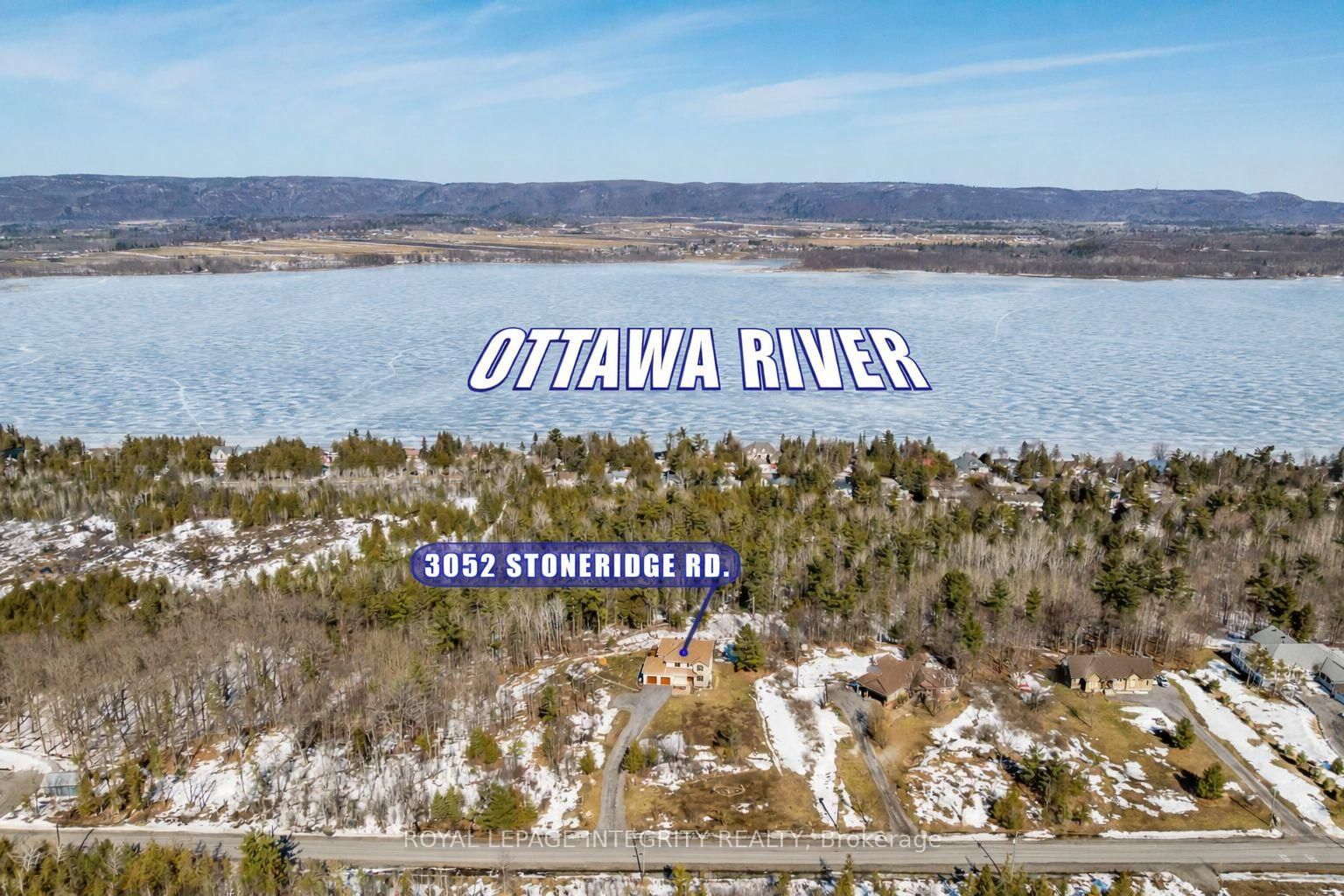 Incredible panoramic views of the Ottawa River Valley and Gatineau Hills!Custom built in 2019 in Dunrobin Shores, this open-concept 3-bedroom + den home sits on just under 2 acres atop a ridge, only 3 minutes from a beach and Ottawa River boat launch. The 2-Storey on 3052 Stoneridge Road has 3 bedrooms, 3 bathrooms, and is located on a 374.55 x 222.93 ft lot in the community of Dunrobin Shores . There's also the opportunity to expand into an estate-sized property with the adjacent 11.7 acres (135 ft frontage on Stoneridge Rd) offered at $800,000.The living room features a soaring 20-ft ceiling and expansive triple-glazed windows across two levels. All other areas, including the den, chef's pantry, and walk-out basement, offer 9-ft ceilings. Upstairs you'll find three bedrooms, including a spacious primary retreat with a stunning view, walk-in closet, and luxurious ensuite.High-end finishes throughout include Laurysen solid cherry cabinetry, granite in the kitchen, baths, and mudroom, hand-scraped solid acacia hardwood, Italian tile in wet areas, and stainless steel appliances.Enjoy outdoor living with a large raised deck off the kitchen and a private balcony off the primary suite - a true Canadian dreamscape.Additional features: Granite island seating 8 comfortably (10 in a pinch) Soft LED lighting throughout Enhanced interior wall insulation for soundproofing Stained white pine trim and interior doors Napoleon propane fireplace High-efficiency Napoleon propane furnace + electric heat pump Oversized well pump for strong, reliable water supply Water softener + reverse osmosis system Extra-large septic system with basement bath rough-in (future apartment potential) Stone and stucco exterior Large front porch and rear deck Lightning rods, hurricane clips, whole-home surge protector, alarm system Portable generator with quick connect Two fire pits and tranquility garden Walking paths with abundant wildlife on the propertyJust 7 minutes to Port of Call Marina and 15 minutes to Kanata - peaceful country living with city convenience.