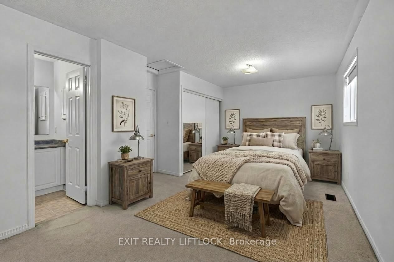 Tucked away on a quiet cul-de-sac on Peterborough's west side, this two storey brick and vinyl garden home offers a great mix of space, comfort, and commuter-friendly convenience. The 2-Storey on 1418 Hancox Court has 2 bedrooms, 3 bathrooms, and is located on a 119.29 x 25.23 ft loton < .50 acres in the community of Monaghan Ward 2 . Convenient access to Peterborough Regional Health Centre, schools, Highway 115 and Costco. Well maintained and thoughtfully updated, the home feels larger than it looks. Upstairs, you'll find a huge primary bedroom, a full four-piece ensuite bathroom, and plenty of storage. The main floor is laid out for everyday living, with a U-shaped kitchen, dining area, main-floor laundry tucked into a closet, a second bedroom, 4-piece bath and a bright living room with patio doors leading to a fully fenced yard. There's also direct access to the oversized garage-no running through the rain with groceries. The finished lower level adds even more flexibility, featuring a large rec room with a wet bar that could easily work as a third bedroom, plus a three-piece bathroom and lots of finished storage for seasonal gear. Newer furnace, A/C, and shingles round out the updates. A solid option for first-time buyers looking for space to grow, or a retiree seeking a low-maintenance property in a desirable area.