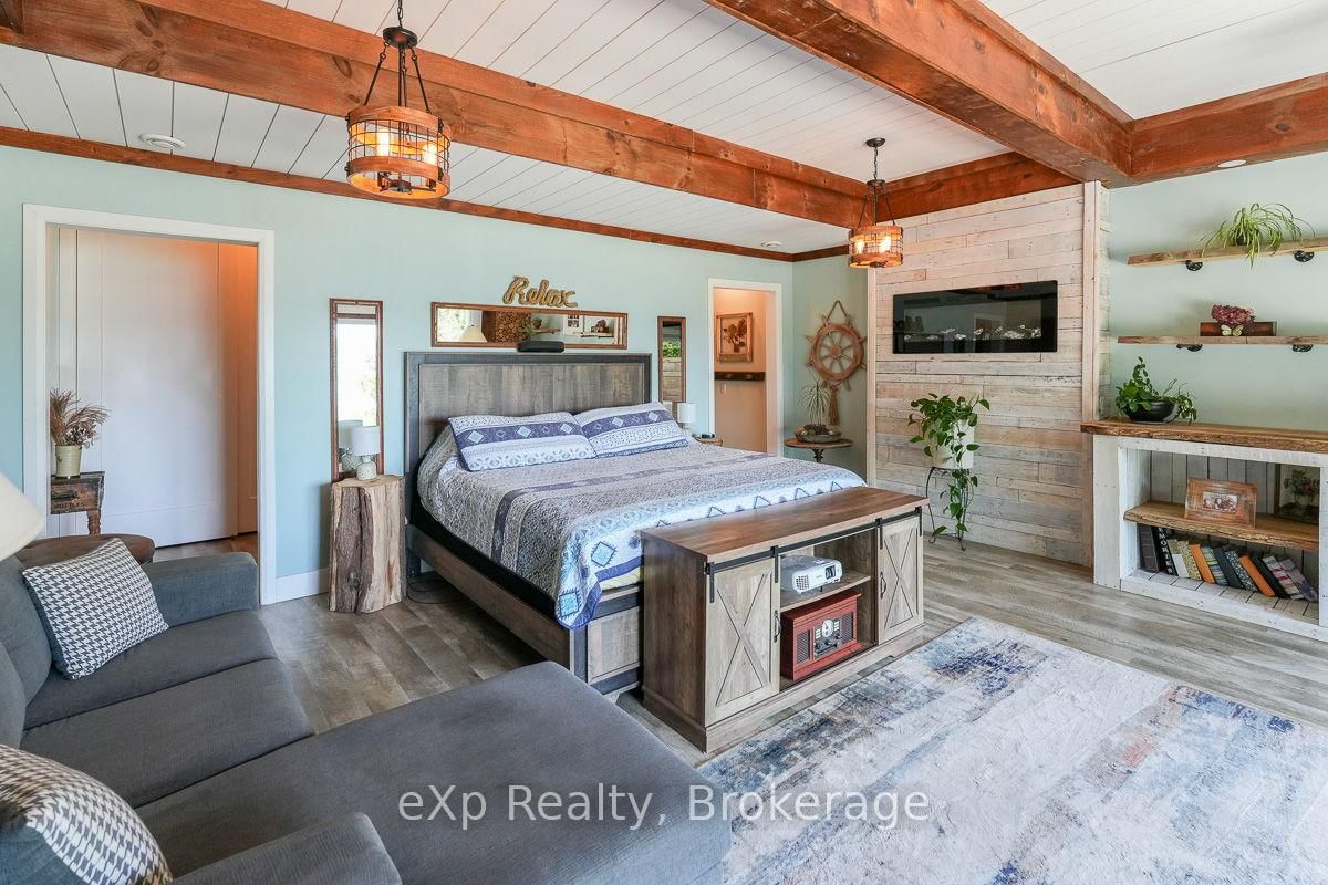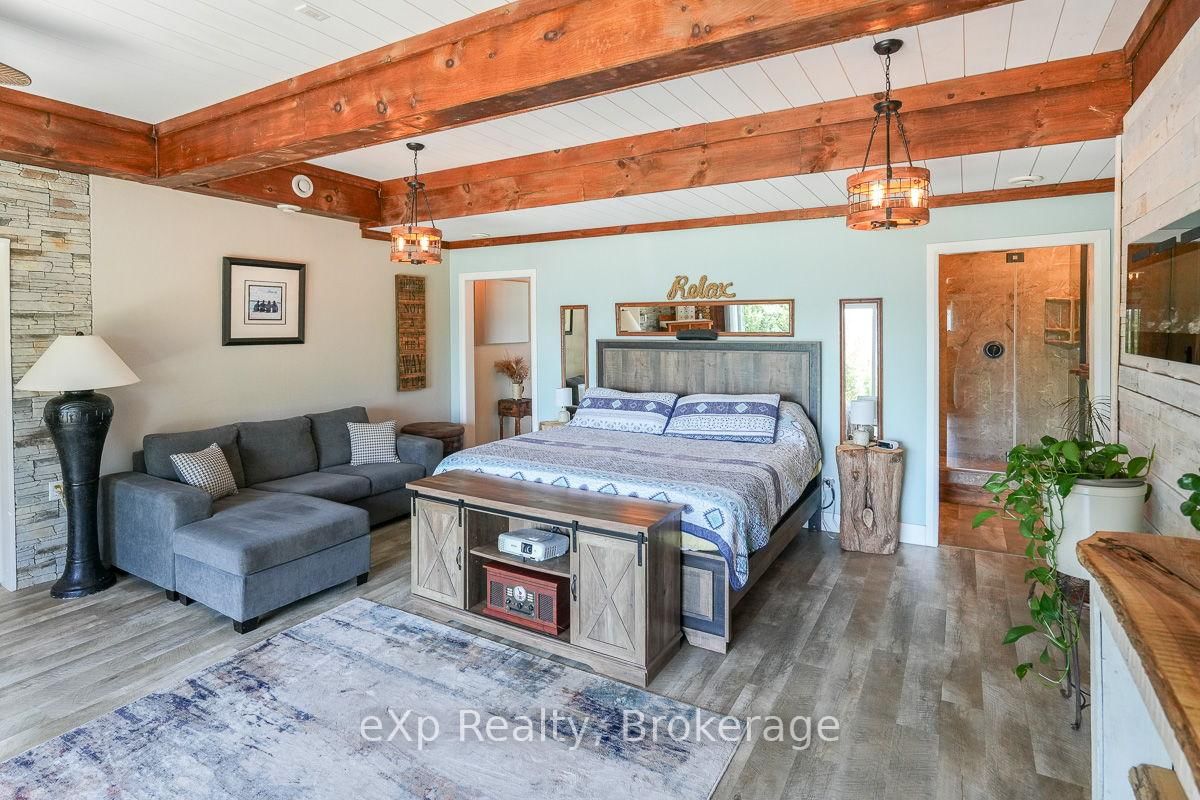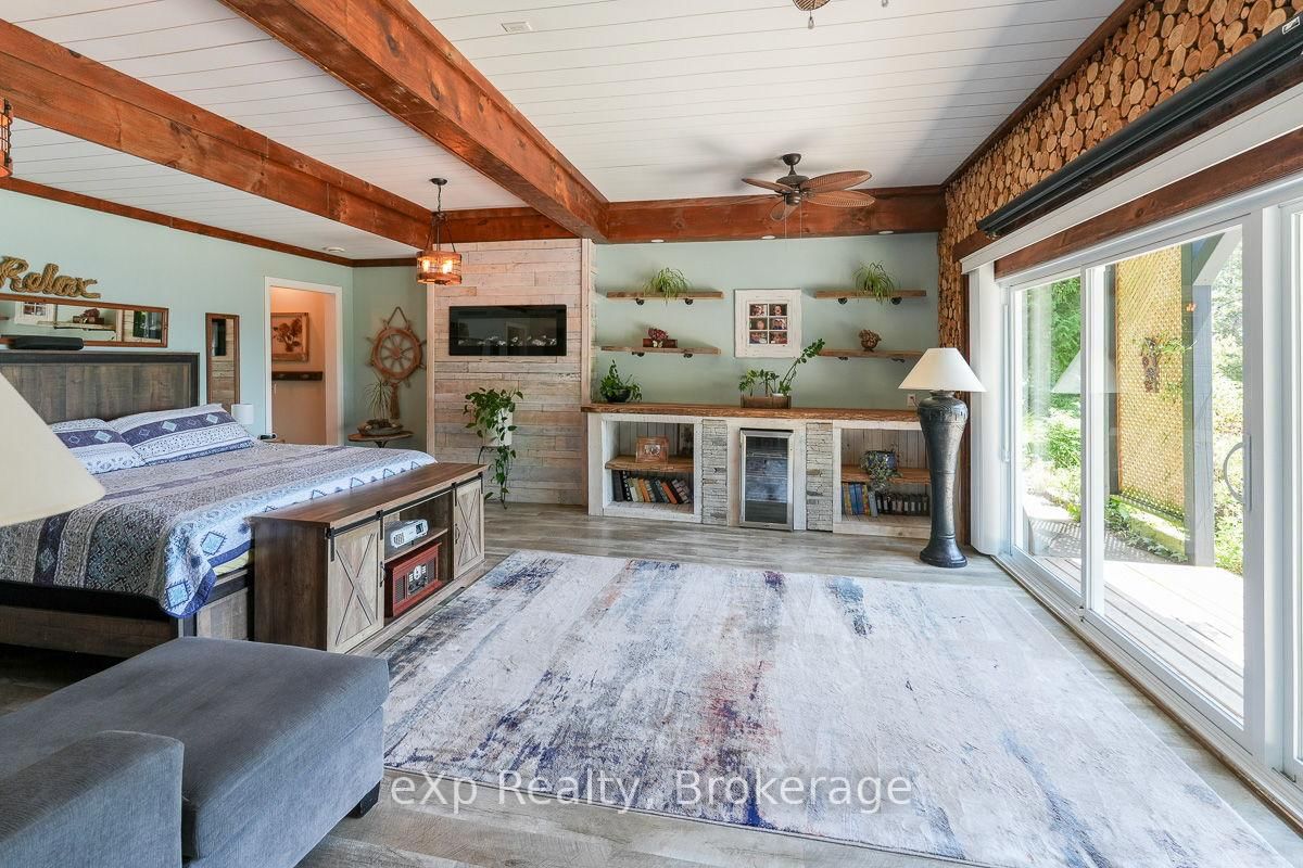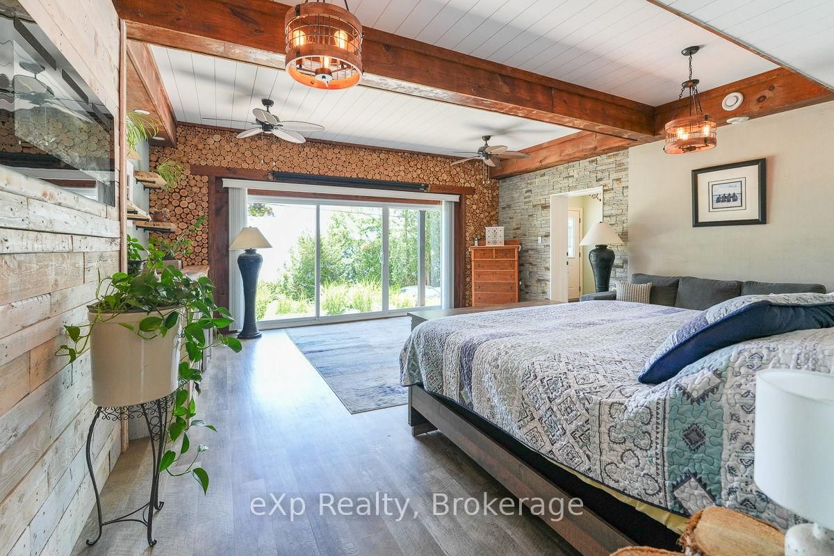 This outstanding waterfront home on Colpoys Bay offers a year-round, 5-bedroom, 3-bath family haven in a natural setting. The Bungalow-Raised on 149 Mallory Beach Road has 5 bedrooms, 3 bathrooms, and is located on a 200 x 97.71 ft lot in the community of South Bruce Peninsula . Just five minutes from Wiarton, and an easy drive to Sauble Beach and Owen Sound, the location strikes a rare balance: close to everything, yet quietly removed. A beautifully conceived reverse floor plan puts the open kitchen, dining, and living spaces upstairs, where expansive windows and a generous deck capture water views. A lovely bedroom with ensuite, two additional bedrooms, and a full bath complete this level. Downstairs, the primary suite is stunning with its beamed ceiling, fireplace, custom live edge cabinet and floating shelves. A sliding glass door opens to a covered verandah overlooking the gardens and the Bay beyond. The sleek three piece ensuite spans the width of the bedroom and features a glass shower and copious closet space. Across the wide hall, an inviting fifth bedroom with waterview makes hosting guests a delight. Laundry, utilities and storage are tucked away at the back of this level. Outside, the landscaping is lush and low-maintenance, with perennial plantings that frame the home and outdoor living areas. Across the quiet road on a private slice of waterfront sits a cool bunky, its sliding glass door overlooking the deck, the dock, and Colpoy's Bay. Everything here, both inside and out, is pleasing to the eye. Whether you're an active family looking for a full-time home or empty nesters wanting a place to gather with kids and grandkids, this impressive property is waiting for you. Upgrades include New Roof (July 2025), New UV System and New Foot Valve for lake intake pipe.