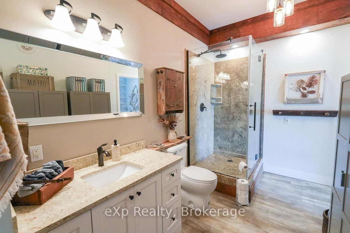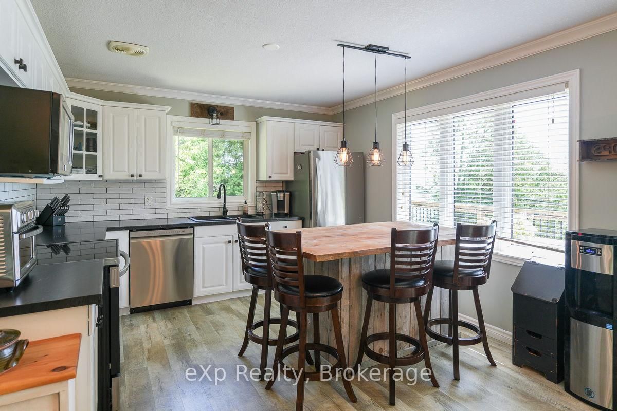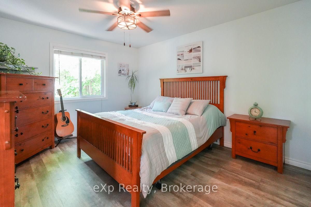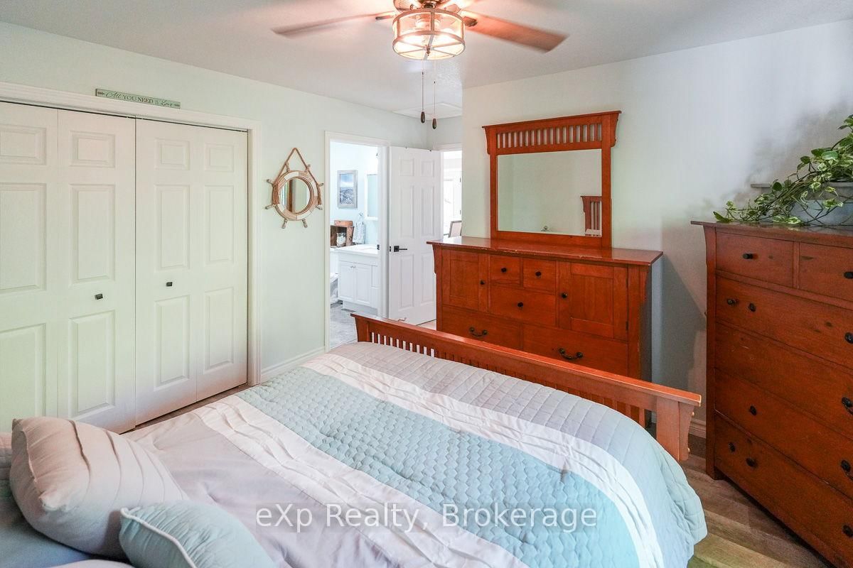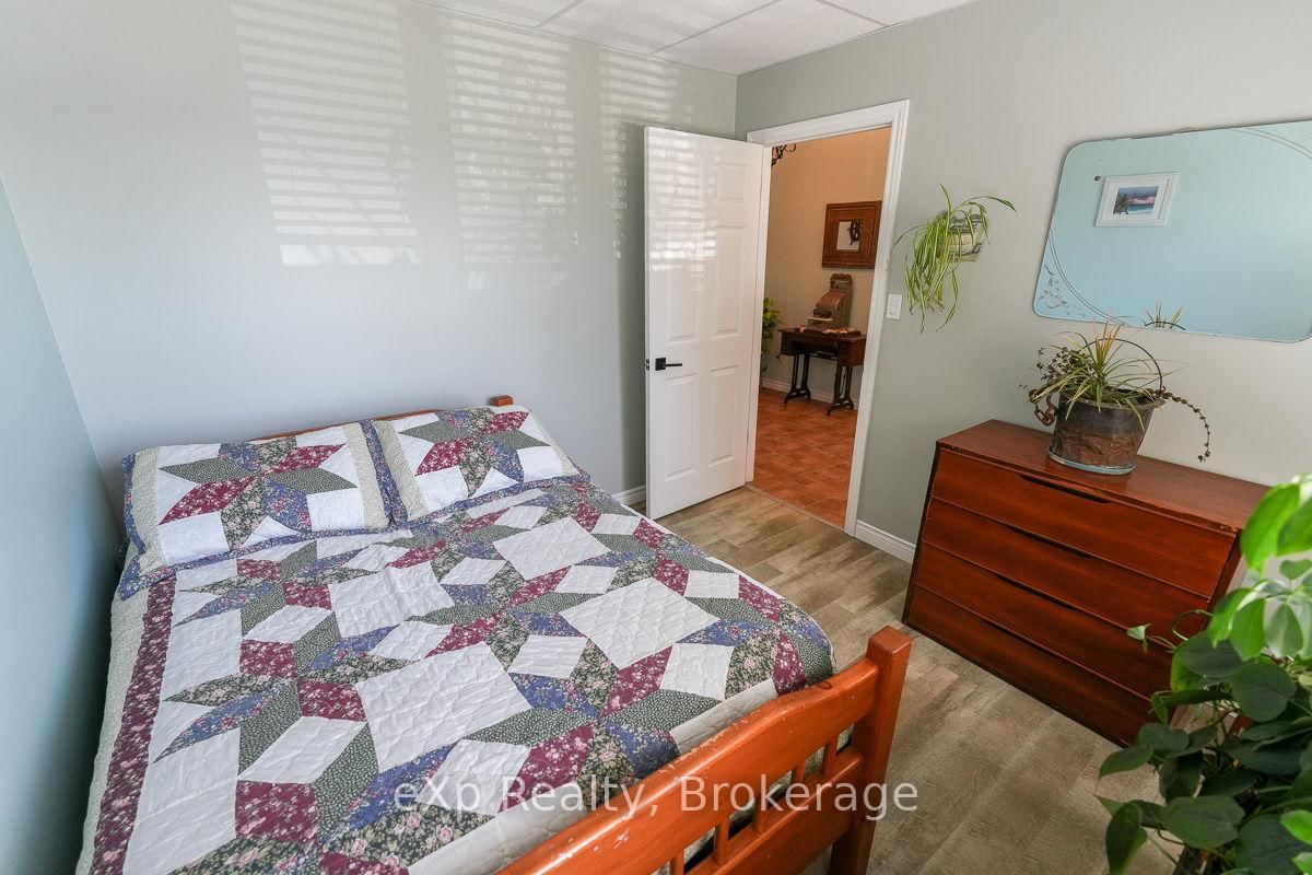 This outstanding waterfront home on Colpoys Bay offers a year-round, 5-bedroom, 3-bath family haven in a natural setting. The Bungalow-Raised on 149 Mallory Beach Road has 5 bedrooms, 3 bathrooms, and is located on a 200 x 97.71 ft lot in the community of South Bruce Peninsula . Just five minutes from Wiarton, and an easy drive to Sauble Beach and Owen Sound, the location strikes a rare balance: close to everything, yet quietly removed. A beautifully conceived reverse floor plan puts the open kitchen, dining, and living spaces upstairs, where expansive windows and a generous deck capture water views. A lovely bedroom with ensuite, two additional bedrooms, and a full bath complete this level. Downstairs, the primary suite is stunning with its beamed ceiling, fireplace, custom live edge cabinet and floating shelves. A sliding glass door opens to a covered verandah overlooking the gardens and the Bay beyond. The sleek three piece ensuite spans the width of the bedroom and features a glass shower and copious closet space. Across the wide hall, an inviting fifth bedroom with waterview makes hosting guests a delight. Laundry, utilities and storage are tucked away at the back of this level. Outside, the landscaping is lush and low-maintenance, with perennial plantings that frame the home and outdoor living areas. Across the quiet road on a private slice of waterfront sits a cool bunky, its sliding glass door overlooking the deck, the dock, and Colpoy's Bay. Everything here, both inside and out, is pleasing to the eye. Whether you're an active family looking for a full-time home or empty nesters wanting a place to gather with kids and grandkids, this impressive property is waiting for you. Upgrades include New Roof (July 2025), New UV System and New Foot Valve for lake intake pipe.
