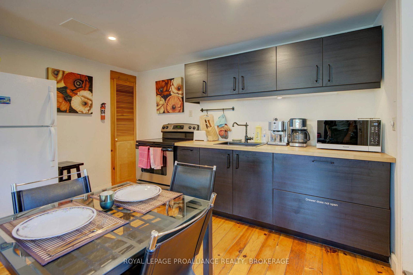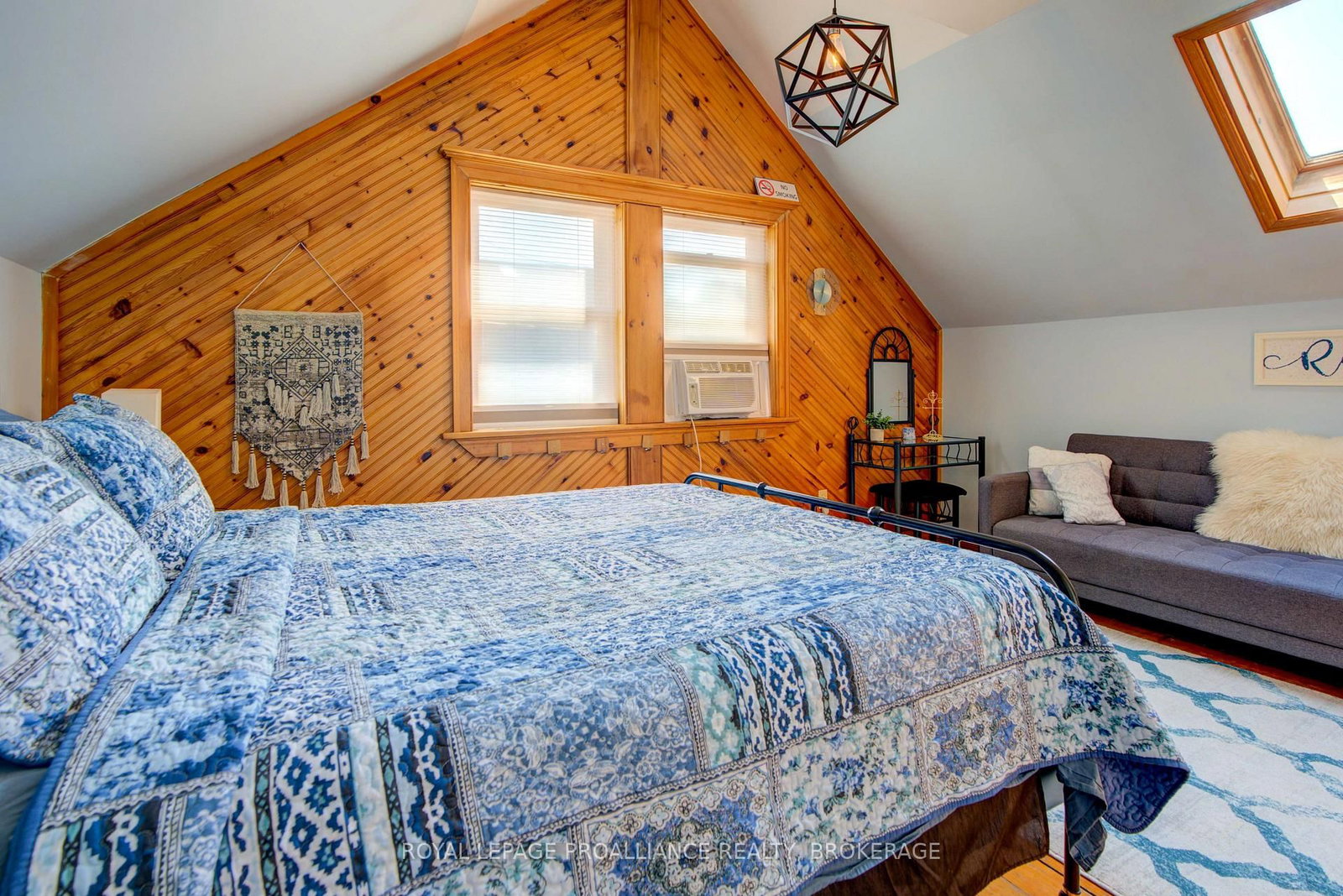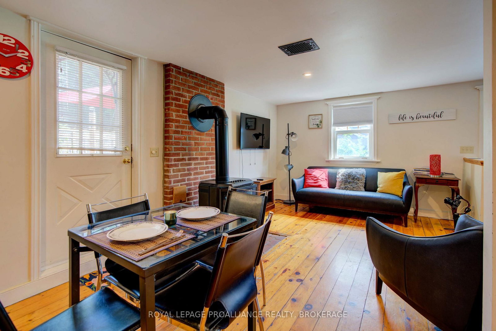 Charming two story home in Bagot offering a warm blend of rustic character and modern comfort, tucked away from the street for added privacy while still being just steps from all the action of downtown. The 1 1/2 Storey on 160A Bagot Street has 2 bedrooms, 2 bathrooms, and is located on a 52 x 46 ft loton < .50 acres in the community of Central City East . This thoughtfully designed 780 sq. ft. residence features 2 bedrooms, 2 bathrooms, and well planned living spaces that maximize functionality and natural light. The 480 sq. ft. main floor includes a welcoming living room with pine flooring, a large wall mounted TV, and comfortable seating. The adjoining kitchen showcases dark cabinetry and wooden countertops, complemented by a bright dining area with a glass top table-an ideal layout for everyday living and entertaining. Upstairs, the 300 sq. ft. second level offers one inviting bedroom. The primary bedroom (180 sq. ft.) features a striking knotty pine accent wall, metal frame bed, geometric lighting, and generous windows. The second bedroom provides a serene, coastal inspired atmosphere perfect for guests or a quiet retreat. The home's bathroom is compact yet efficient, complete with a glass enclosed shower, modern vanity, and a skylight that fills the space with natural light. A dedicated laundry area with full sized appliances adds convenience. Warm wood tones throughout the home pair beautifully with crisp white walls, creating a bright, cozy, and contemporary feel. Hidden quietly behind the historic façade of Bagot Street lies a rare cottage retreat just steps from downtown. Walk to waterfront parks, restaurants, cafés, and boutique shops while enjoying the privacy of a tucked-away setting. A unique opportunity to live in the heart of Kingston without sacrificing tranquility. Walking distance from Hotel Deu, Kingston General, Queen's University.