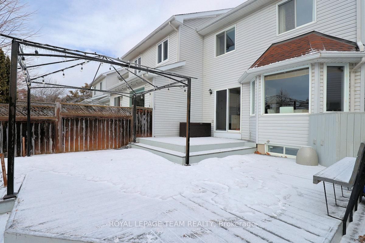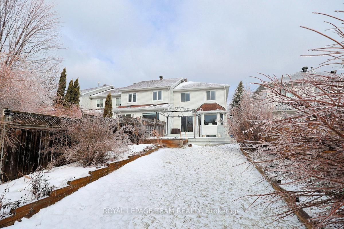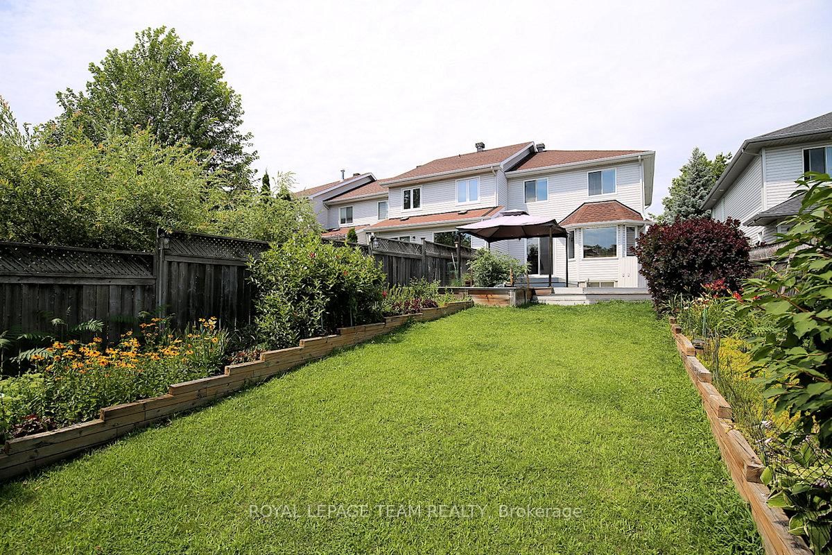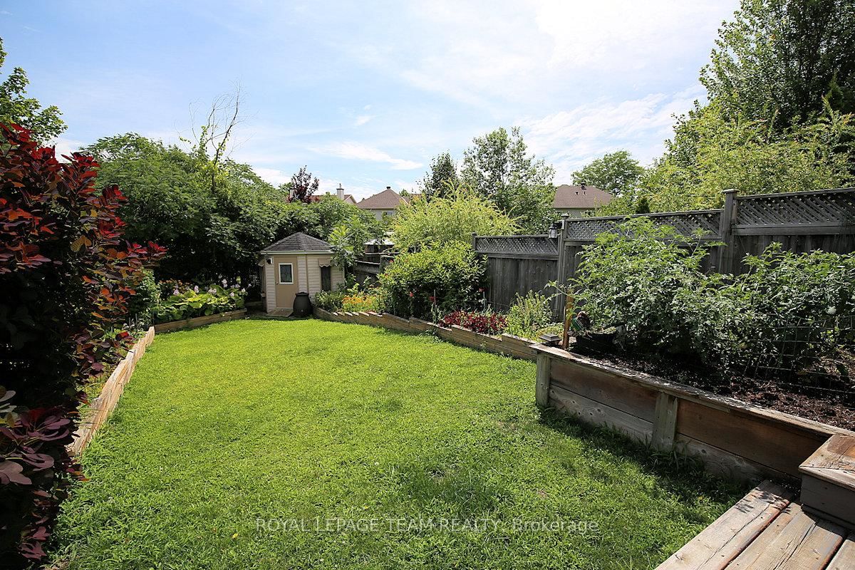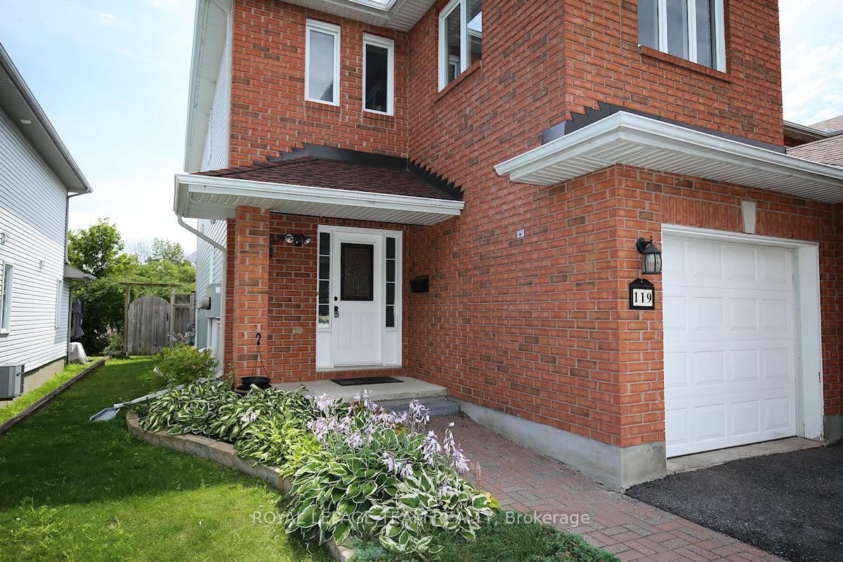 Wonderful 3 bedroom, 4 bath townhome with fabulous gardens ideal for gardeners, in Kanata Lakes. The 2-Storey on 119 Blackdome Crescent has 3 bedrooms, 4 bathrooms, and is located on a 155.55 x 26.64 ft lot in the community of Kanata Lakes/Heritage Hills . Great location & deep private yard. Close to many parks, shopping, transit & schools. Great space & immaculate condition. Chef's kitchen, open dining and living room with gas fireplace and finished lower level plus 2 piece bath & laundry. Welcoming front porch, tiled foyer & double closet. Handy powder room & inside entry to garage. Spacious living room open to dining room with big bay window & great backyard views. Kitchen with many cabinets and all appliances including wine fridge. Patio door to huge 2 level deck & private backyard with garden shed. On the second level there is a large primary bedroom painted in neutral color (photos shows a blue color which has been painted over) with beautiful windows, overhead light, spacious walk-in closet & a 4 piece ensuite bath with tub/shower combined and vanity with sink. Secondary bedrooms include overhead lights, large windows & double closets. The family bath has a good-sized vanity & tub/shower combined with tile surround. The lower level has a large room for recreation, entertainment or home office plus a convenient laundry/powder rm & utility rm. 24 hours notice preferred for showings and 24hrs irrevocable on all offers.