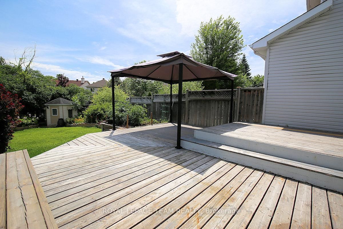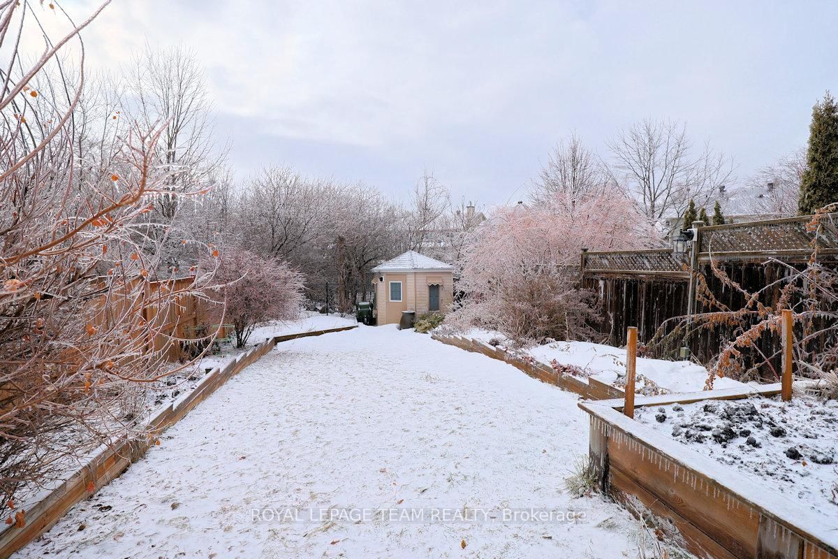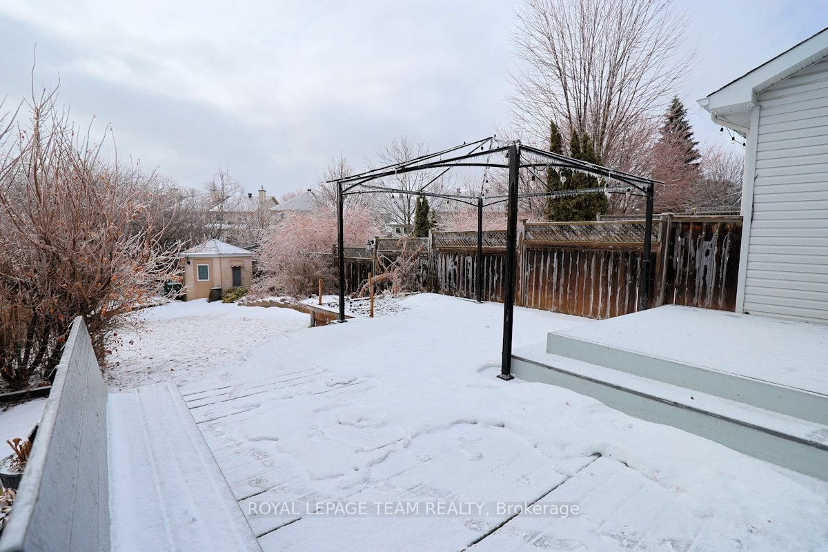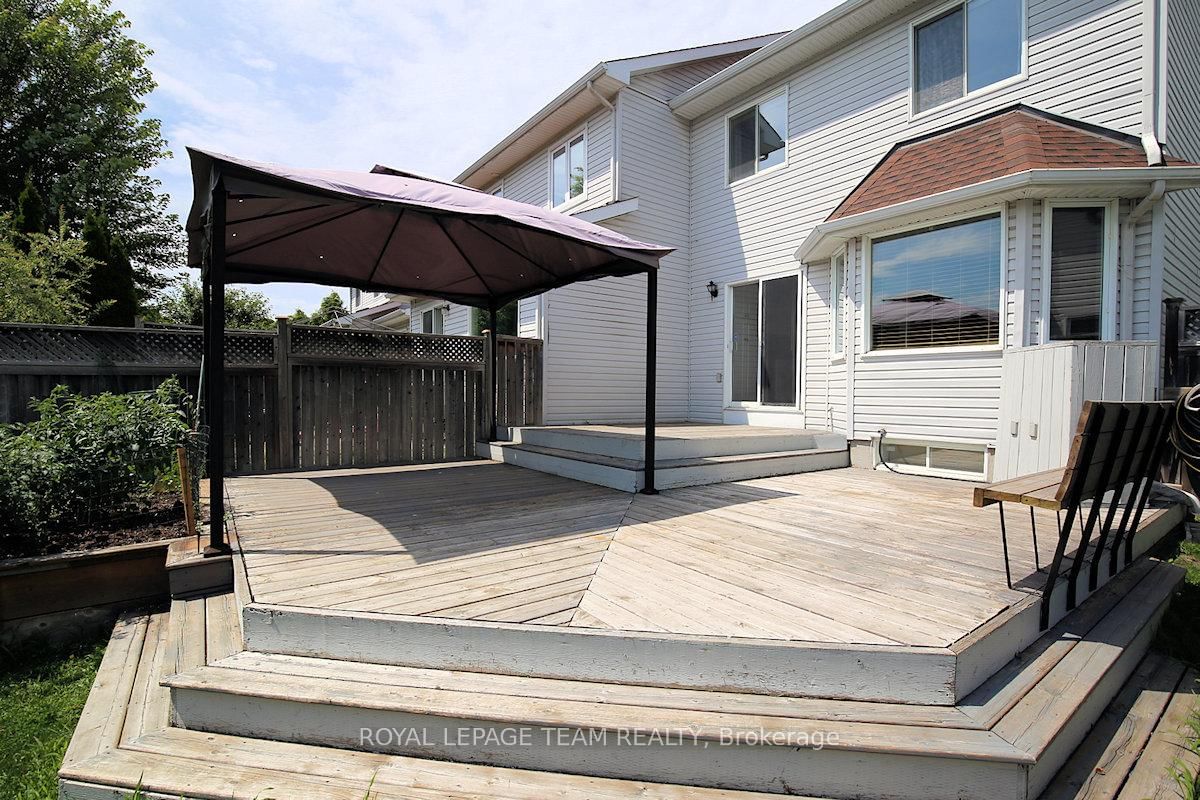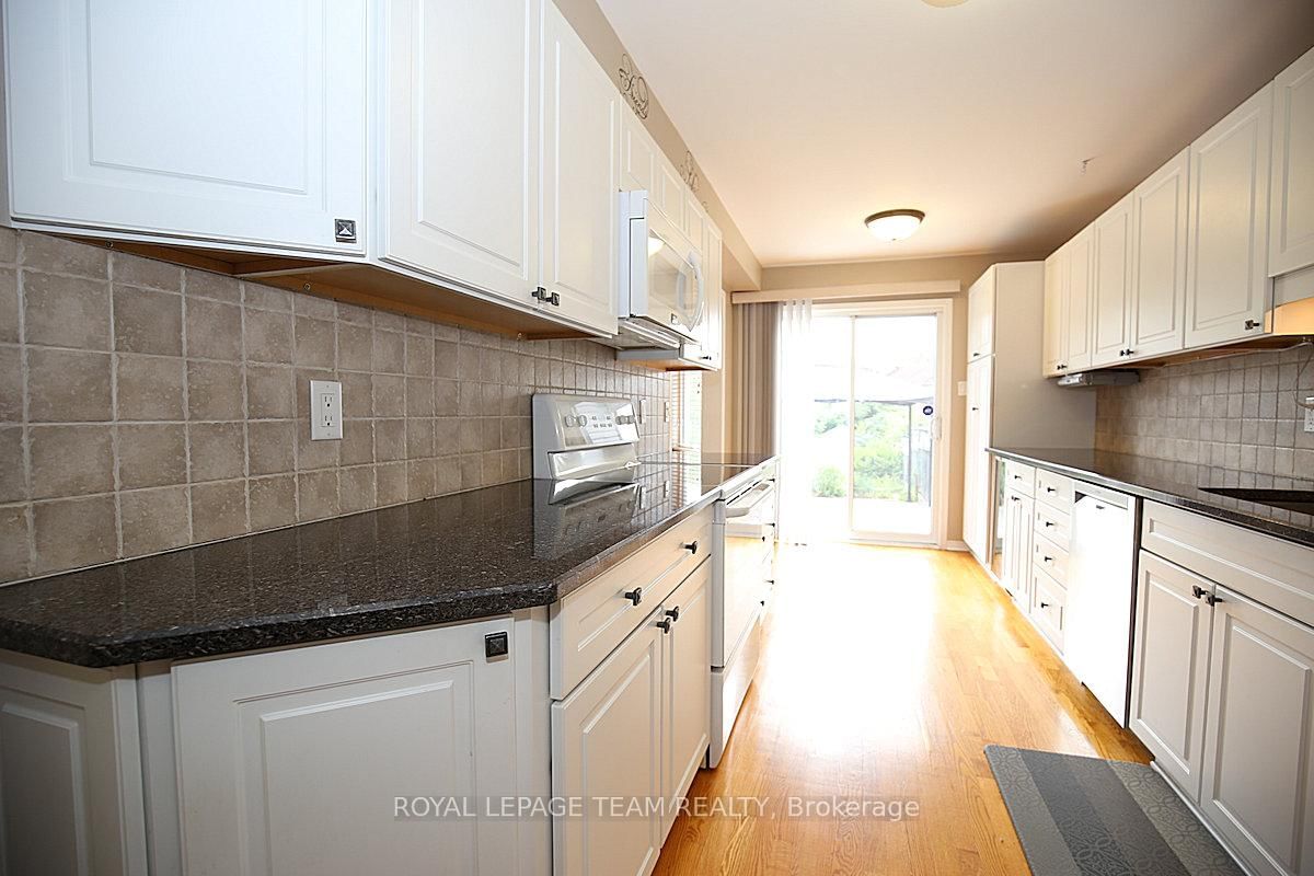 Wonderful 3 bedroom, 4 bath townhome with fabulous gardens ideal for gardeners, in Kanata Lakes. The 2-Storey on 119 Blackdome Crescent has 3 bedrooms, 4 bathrooms, and is located on a 155.55 x 26.64 ft lot in the community of Kanata Lakes/Heritage Hills . Great location & deep private yard. Close to many parks, shopping, transit & schools. Great space & immaculate condition. Chef's kitchen, open dining and living room with gas fireplace and finished lower level plus 2 piece bath & laundry. Welcoming front porch, tiled foyer & double closet. Handy powder room & inside entry to garage. Spacious living room open to dining room with big bay window & great backyard views. Kitchen with many cabinets and all appliances including wine fridge. Patio door to huge 2 level deck & private backyard with garden shed. On the second level there is a large primary bedroom painted in neutral color (photos shows a blue color which has been painted over) with beautiful windows, overhead light, spacious walk-in closet & a 4 piece ensuite bath with tub/shower combined and vanity with sink. Secondary bedrooms include overhead lights, large windows & double closets. The family bath has a good-sized vanity & tub/shower combined with tile surround. The lower level has a large room for recreation, entertainment or home office plus a convenient laundry/powder rm & utility rm. 24 hours notice preferred for showings and 24hrs irrevocable on all offers.