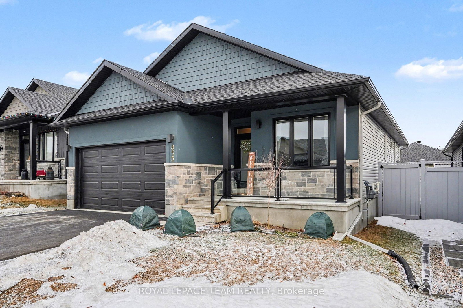Stunning 5-year-old bungalow in the highly sought-after Almonte area, perfectly blending small-town charm with modern luxury. The Bungalow on 855 Reaume Street has 2 bedrooms, 3 bathrooms, and is located on a 108 x 45 ft lot in the community of Mississippi Mills (Ramsay) Twp . This bright 2+1 bedroom home features an expansive open-concept kitchen, living, and dining area highlighted by dramatic vaulted ceilings and a custom-built fireplace. The kitchen boasts a large walk-in pantry, ideal for organization. Step out from the main level onto a brand-new deck, perfect for outdoor entertaining.The fully finished basement is a versatile retreat, offering a huge recreation space, a dedicated workshop for hobbyists, and two substantial storage rooms. With three full bathrooms and a double garage ( total parking for six cars with the driveway) this home is as functional as it is beautiful. Enjoy being minutes from Almonte's vibrant amenities and a convenient 35-minute commute to downtown Ottawa.