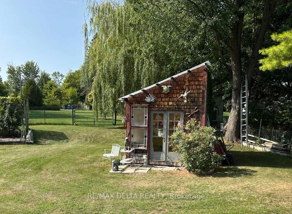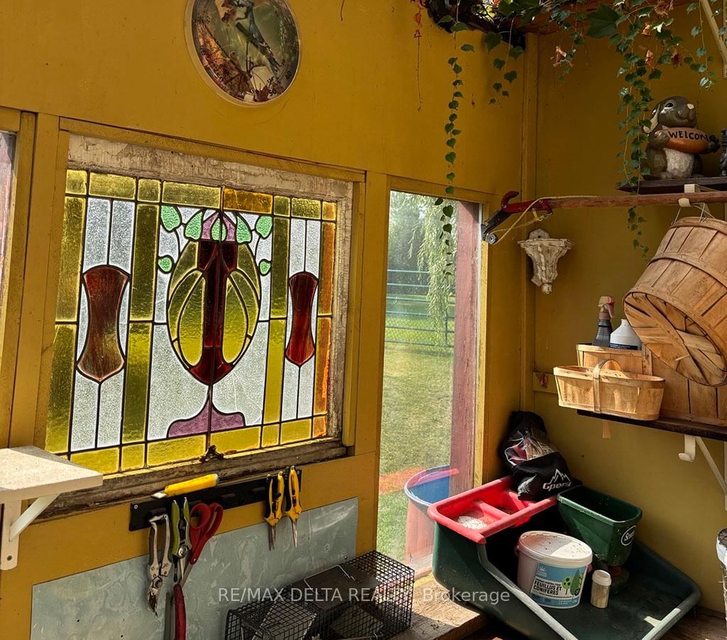 Refrigerator, Kitchen Range, Dishwasher, Wine Fridge (in kitchen), Washer, Dryer, HWT all sold in as-is condition. Also: Hanging pot rack in kitchen, suspended wall clock, large wooden wardrobe in primary bedroom, pine corner cupboard in sunroom, all window dressings, alarm system, outdoor white trellis/arch with built-in seats, all raised beds, all contents of potting shed including stained glass windows (new roof on potting shed in 2025), spa, table & six chairs in outdoor kitchen, Gazebo with canopy, all outdoor awnings, 8-10 cords of wood, 2-wheel utility trailer.