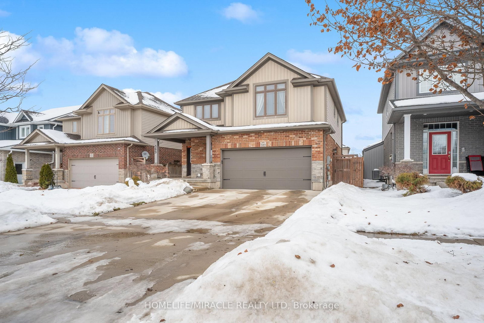 Stunning Upgraded Detached Home in a Prime Location - Move-In Ready! This beautifully updated two- storey home offers the perfect blend of style, space, and comfort. The 2-Storey on 589 Sales Drive has 3 bedrooms, 3 bathrooms, and is located on a 105.46 x 42.65 ft lot in the community of South . Step into a bright open-concept main floor featuring a modernized kitchen with new tile backsplash, freshly painted cabinets, gas stove conversion, and sleek pot lights throughout the kitchen and dining area. The show-stopping living room boasts a soaring 16-ft sloped ceiling and a custom-built fireplace with a designer feature wall-creating an impressive and inviting space perfect for entertaining. Walk out to your private deck and fully fenced backyard complete with a pergola-ideal for summer gatherings and family time. Upstairs, enjoy three spacious bedrooms including a primary retreat with its own 3-pieceensuite. The insulated basement offers excellent potential for future customization. Located in a highly desirable neighborhood close to top-rated schools, hospital, Hwy 401, and community amenities.