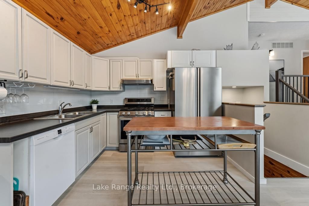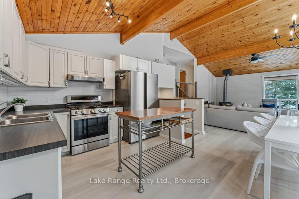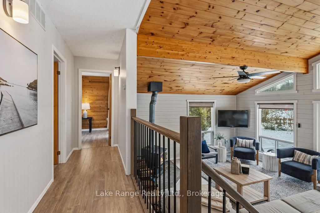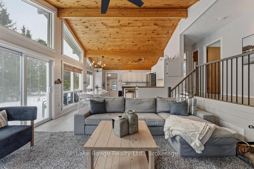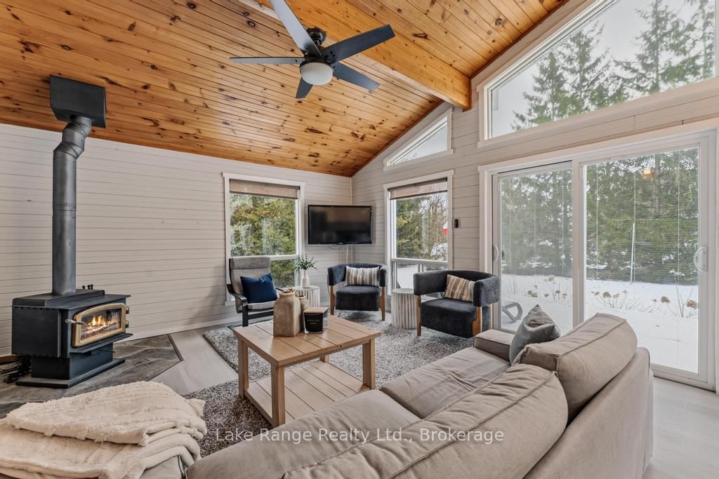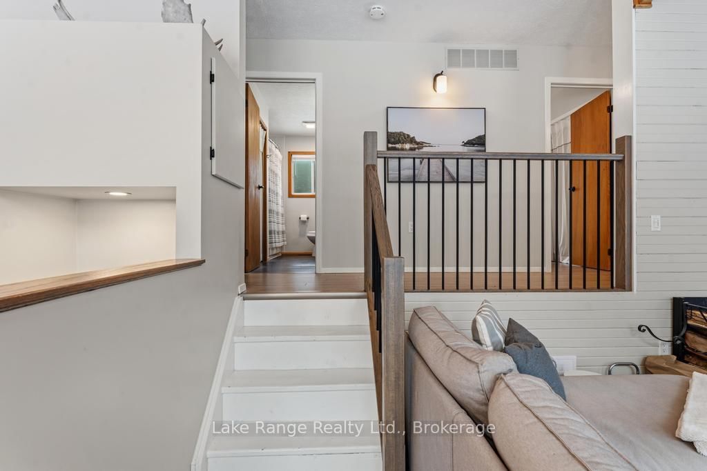 Steps from Lake Huron's white sandy shoreline and legendary sunsets, this inviting backsplit is tucked into the sought-after lakeside community of Lurgan Beach. The Backsplit 4 on 3 Cathcart Street has 4 bedrooms, 2 bathrooms, and is located on a 205 x 122 ft lot in the community of Huron-Kinloss . Set on a spacious and private lot with plenty of parking, the property features a new wrap-around deck, large yard for outdoor activities, fire pit area, outdoor shower with warm water, two storage sheds for beach gear, outdoor equipment and workshop with electricity. Inside, the bright open-concept kitchen, dining, and living area offers vaulted ceilings and a wall of windows, along with a cozy wood stove. The lower levels features a spacious family room with beautiful stone gas fireplace and built-ins, fourth bedroom, second bath, and laundry, while the upper level offers two bedrooms, a 4-piece bath, and a primary bedroom with patio doors leading to a Juliet balcony. Extensively updated inside and out, including flooring, bathroom remodel, natural gas fireplace and furnace, new hot water tank, Tesla 60 amp charger and freshly primed and painted throughout. Close to the boat launch, parks, tennis courts, and scenic walking trails, and currently operating as a successful short-term rental. Whether you're searching for a private Lake Huron getaway or a property with income potential, this one offers the best of both worlds.