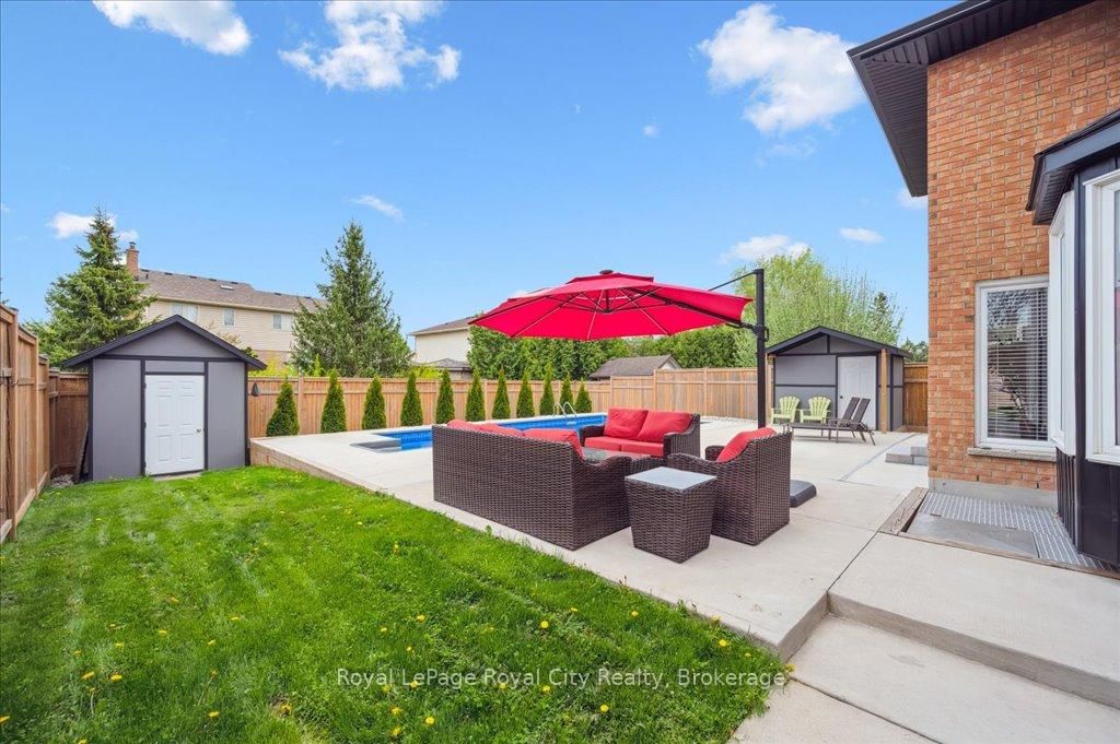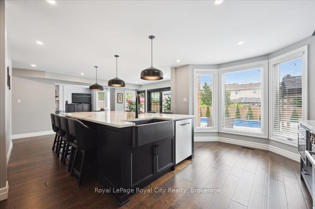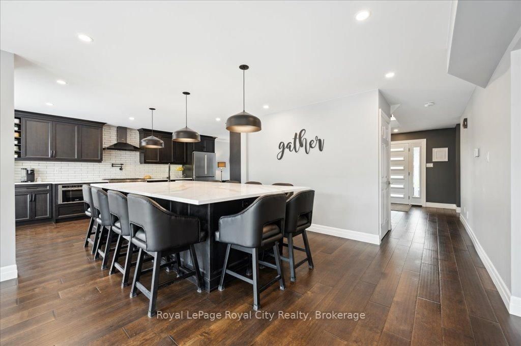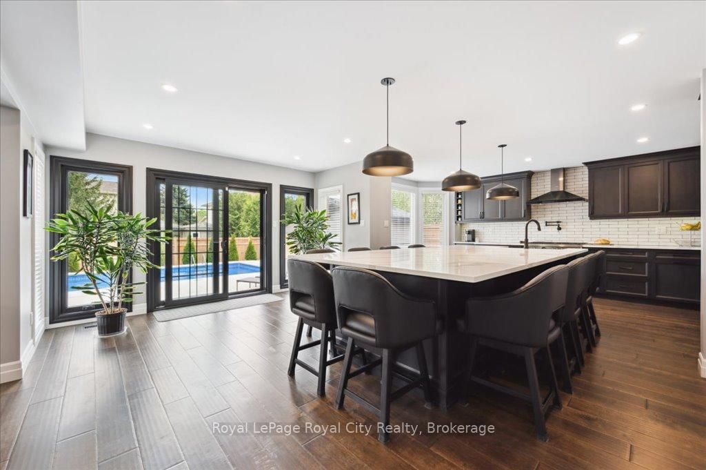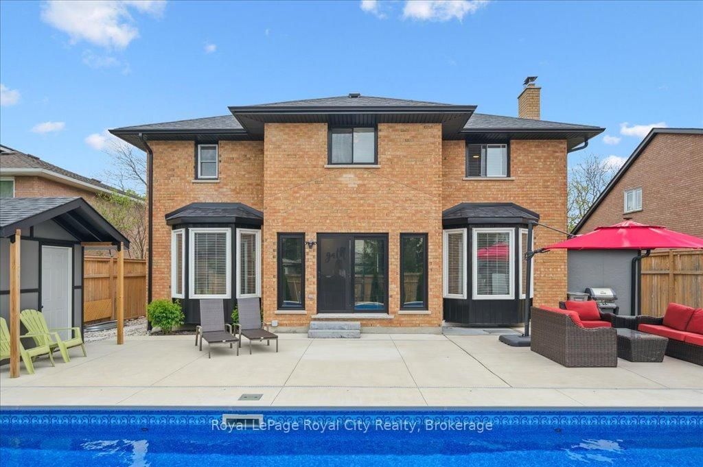Welcome to 9 Kortright Road East, where elegance meets everyday functionality in one of Guelphs most desirable neighborhoods. The 2-Storey on 9 Kortright Road E has 3 bedrooms, 5 bathrooms, and is located on a 121 x 60.63 ft lot in the community of Kortright East . This beautifully renovated, two-storey brick home offers exceptional curb appeal with a double garage, interlock driveway, modern garage/front door, and mature landscaping. Step inside to a grand foyer with a curved wooden staircase and soaring ceilings, setting the tone for the refined interiors throughout. The heart of the home is the stunning chefs kitchen, featuring an oversized quartz island with seating for ten, sleek black cabinetry, a built in pot-filler, and statement lighting. Stunning glass sliding doors and picture windows provide panoramic views and seamless access to the resort-style backyard with a heated pool ideal for summer entertaining and relaxing. Enjoy the thoughtfully designed layout with spacious principal rooms, including a formal living room and cozy family room with accent wall and brick fireplace. Upstairs, the primary suite is a luxurious retreat, featuring a 4pc bathroom with soaker tub and walk-in closet. The second bedroom includes a secondary bedroom/dressing room which has its own entrance to the shared 4pc bathroom, while the third bedroom is also generous in size. Downstairs, find a 2-bedroom basement apartment with ample living space. Separating the apartment is a door that takes you through to the exercise room. Enjoy the footprint of your basement while having an entirely separate suite. This meticulously maintained home is move-in ready with countless upgrades and located just minutes from top-rated schools, the University of Guelph, shopping, transit, and parks.