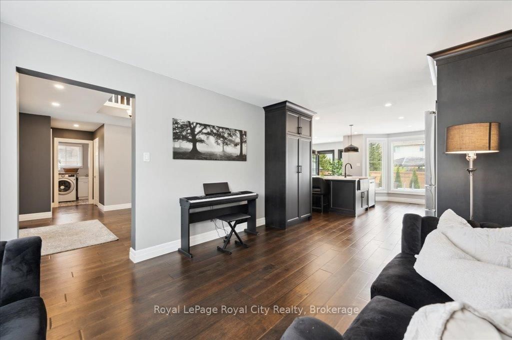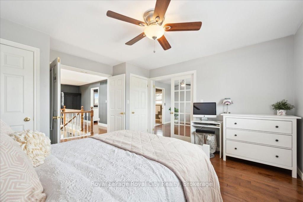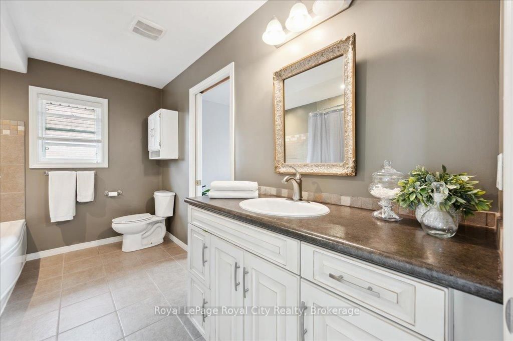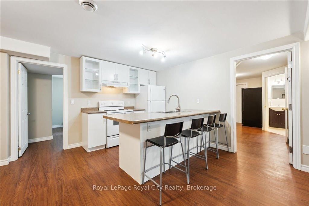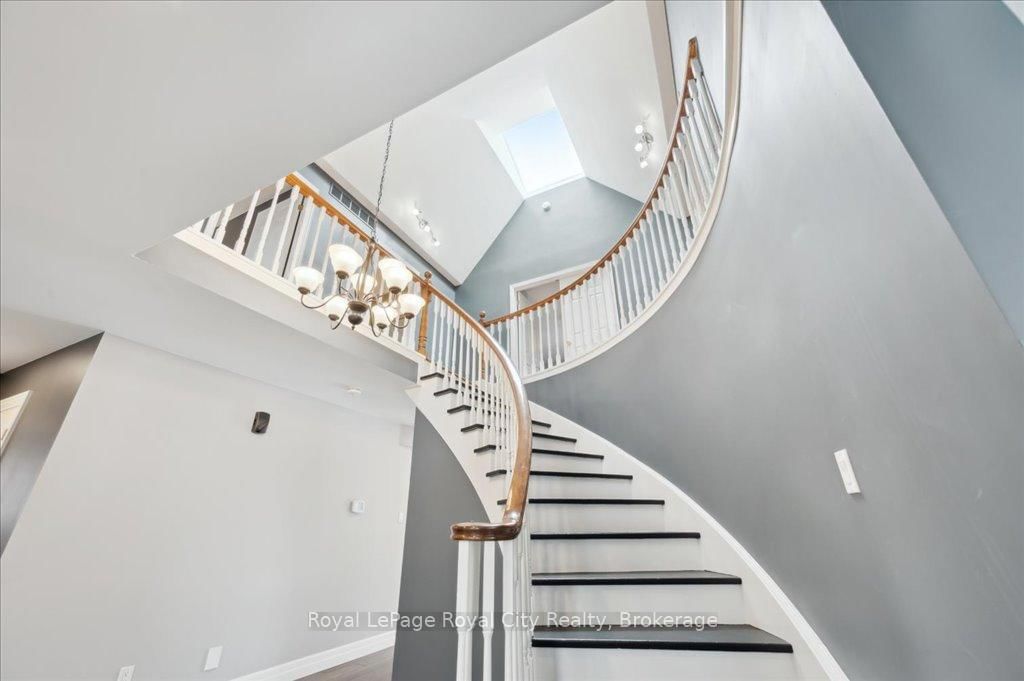 Welcome to 9 Kortright Road East, where elegance meets everyday functionality in one of Guelphs most desirable neighborhoods. The 2-Storey on 9 Kortright Road E has 3 bedrooms, 5 bathrooms, and is located on a 121 x 60.63 ft lot in the community of Kortright East . This beautifully renovated, two-storey brick home offers exceptional curb appeal with a double garage, interlock driveway, modern garage/front door, and mature landscaping. Step inside to a grand foyer with a curved wooden staircase and soaring ceilings, setting the tone for the refined interiors throughout. The heart of the home is the stunning chefs kitchen, featuring an oversized quartz island with seating for ten, sleek black cabinetry, a built in pot-filler, and statement lighting. Stunning glass sliding doors and picture windows provide panoramic views and seamless access to the resort-style backyard with a heated pool ideal for summer entertaining and relaxing. Enjoy the thoughtfully designed layout with spacious principal rooms, including a formal living room and cozy family room with accent wall and brick fireplace. Upstairs, the primary suite is a luxurious retreat, featuring a 4pc bathroom with soaker tub and walk-in closet. The second bedroom includes a secondary bedroom/dressing room which has its own entrance to the shared 4pc bathroom, while the third bedroom is also generous in size. Downstairs, find a 2-bedroom basement apartment with ample living space. Separating the apartment is a door that takes you through to the exercise room. Enjoy the footprint of your basement while having an entirely separate suite. This meticulously maintained home is move-in ready with countless upgrades and located just minutes from top-rated schools, the University of Guelph, shopping, transit, and parks.