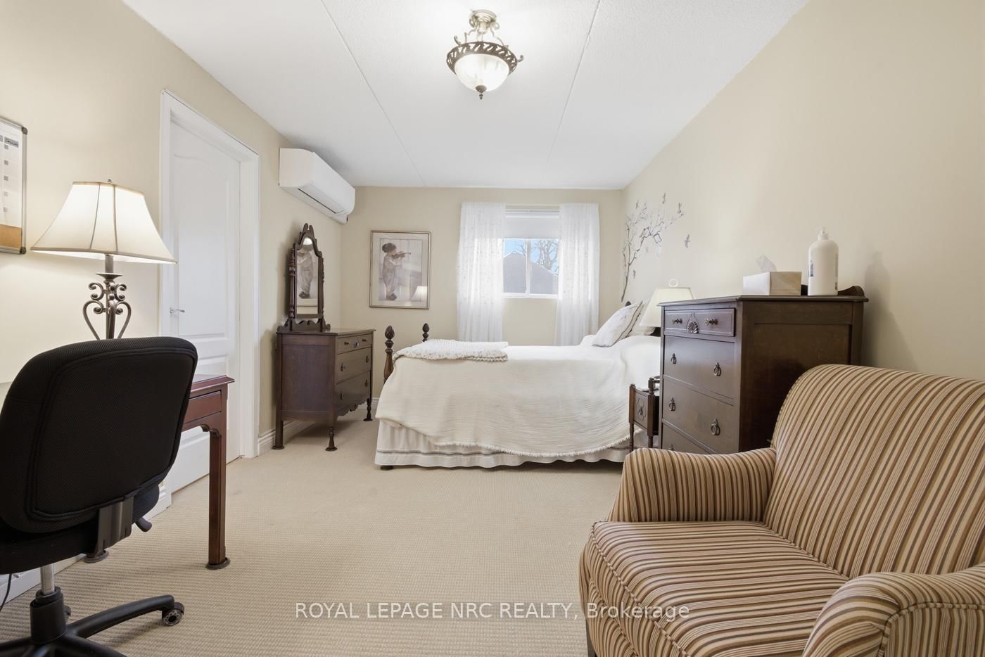 Immaculate 2 bedroom apartment condo beautifully situated in the building overlooking the courtyard. The Apartment on 217-4658 Drummond Road has 2 bedrooms, 1 bathrooms, and is located in the community of Cherrywood . Parking space out front #5 close to the main entrance. Budget friendly condo fees. Quick access to stairs down to courtyard (great for pet owners) Open concept design, bright and cheerly suite with large kitchen with tons of counterspace, great for entertaining and avid bakers. Separate dining room, large living room with patio doors to balcony. Primary bedroom large enough to have a sitting area, ensuite privilege bath and wall to wall closet. Second bedroom also with large double plus closet. 4 piece bathroom with in-suite washer and dryer (stackables new 2024). 2 ductless heat pump/air conditioning systems installed 2024. Tons of storage space in the condo. Secure building. Amenities include courtyard, gym, library room with fireplace, party room, mail room. Central location, quick access to highway, shopping, walking path and on bus route.