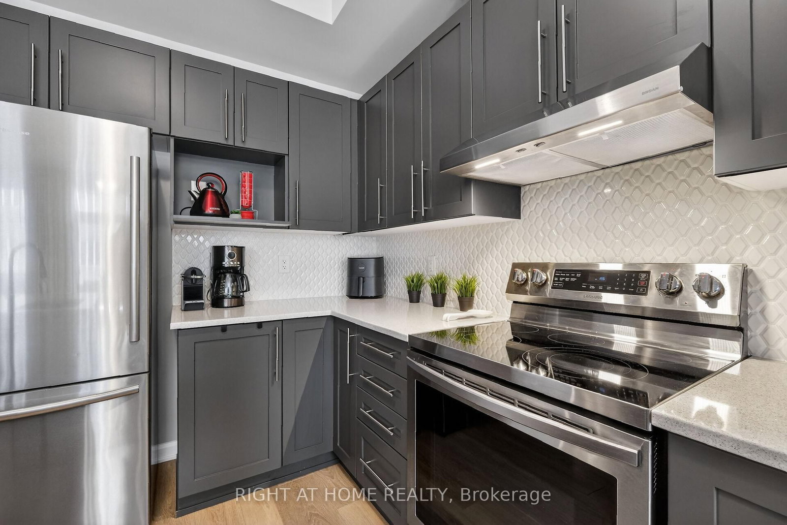 Washer, Dryer, Fridge, Stove, Dishwasher, Hood Fan