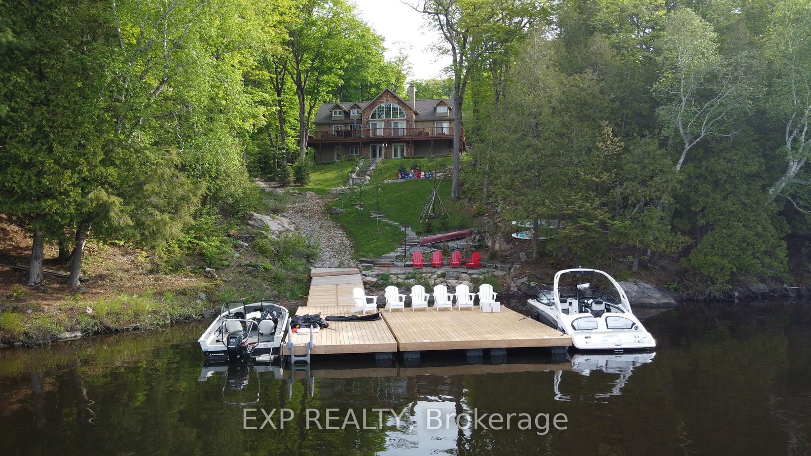 Welcome to 1235 Shea Road in Utterson - a stunning cottage retreat where luxury meets the tranquility of waterfront living. The 2-Storey on 1235 Shea Road has 3 bedrooms, 3 bathrooms, and is located in the community of Watt . Thoughtfully designed and meticulously maintained, this property offers an exceptional resort-like experience from the moment you arrive. The grounds are truly a standout feature, showcasing incredible professional landscaping that blends seamlessly with the natural surroundings. Meandering pathways with elegant lighting guide you down to the water's edge, creating a magical ambiance in the evenings and making every step feel like a getaway. Wake up to serene water views right from your primary bedroom - a peaceful start to every day in this private oasis. Down at the shoreline, enjoy the convenience and quality of a brand new NyDock floating dock system, perfect for swimming, boating, or simply soaking in the sun. A detached two-car garage provides ample storage for vehicles, recreational gear, or workshop space, adding both functionality and flexibility to the property. Whether you're entertaining, relaxing, or enjoying the outdoors, this exceptional cottage delivers a true resort-style lifestyle in one of Utterson's most picturesque settings.