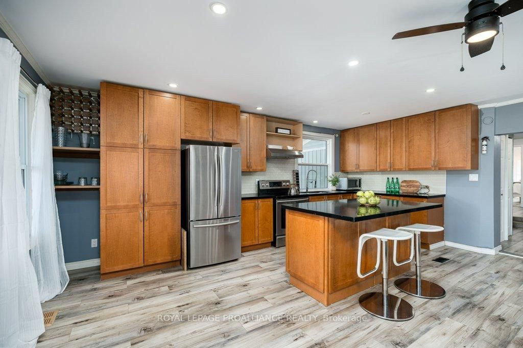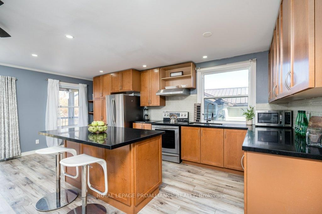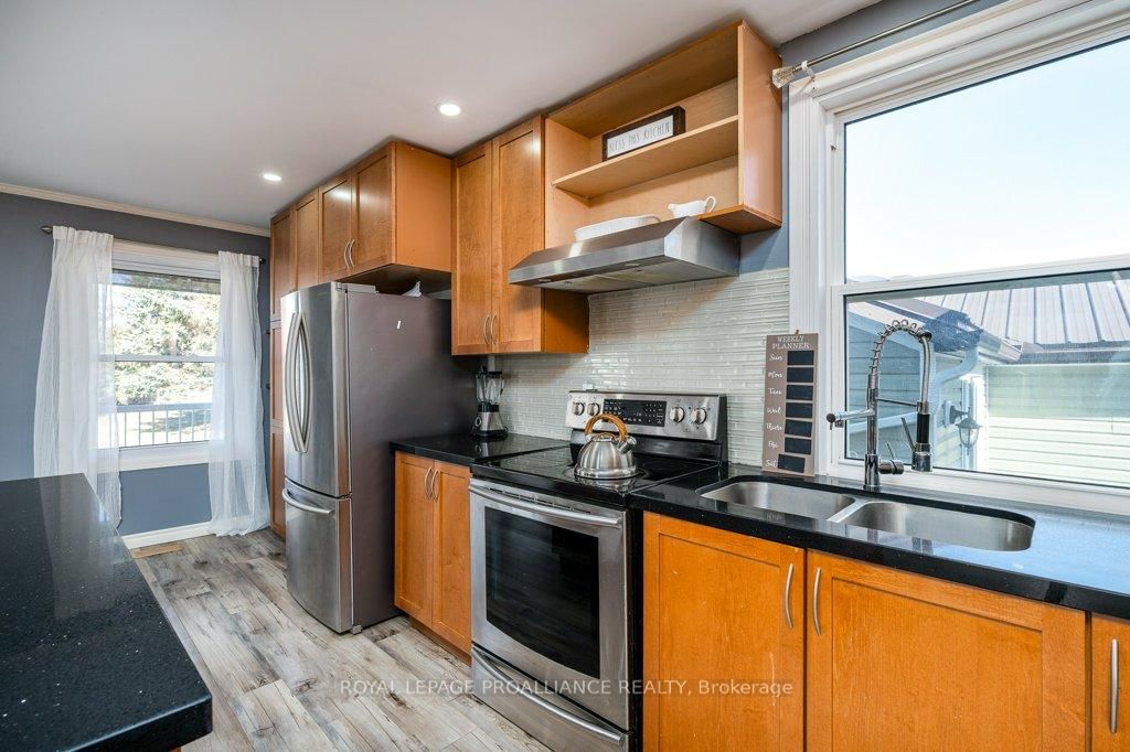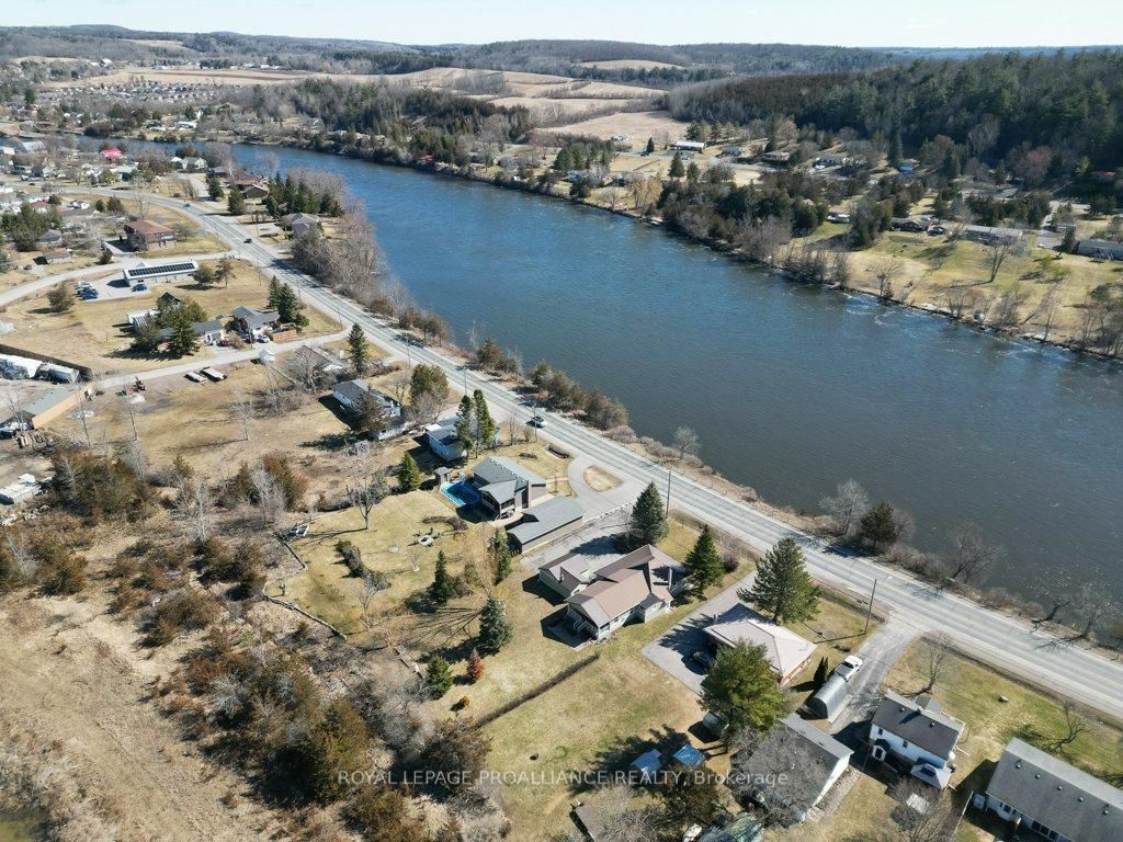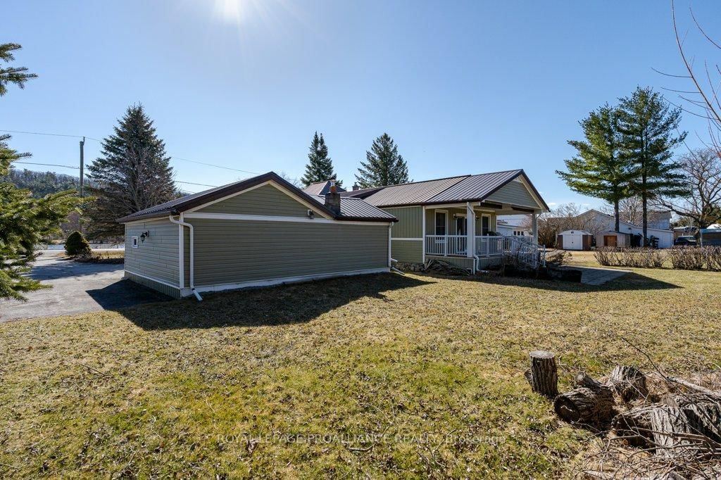 Check out these views! This beautiful bungalow is located just south of Frankford situated across from the Trent River boasting beautiful water views right from your front porch! This unique property is situated on just under half an acre (0. The Bungalow on 262 South Trent Street has 3 bedrooms, 2 bathrooms, and is located on a 210.47 x 89.8 ft lot in the community of Frankford Ward .44 acres) while offering municipal water and sewer. The interior is updated with newer tile & laminate flooring, forced air gas furnace (approx 2010), gas fireplace & central air. Enjoy a stunning open kitchen/living area with gas fireplace, maple cabinets to the ceiling, granite counters/island with seating. The patio door off the kitchen/living area showcases the rear covered deck where you can enjoy the oversized lot and backyard oasis. Primary Bedroom has sliding patio door overlooking the water & access to covered front porch. This beautiful bungalow also offers two other spacious bedrooms and a bonus room would make a great home office setup. Main bathroom is 3 piece; shower, tiled floor & laundry. Ensuite bathroom has sink & tub/shower. Other features include: crown moulding, marble floors in foyer and a virtually maintenance free metal roof on both home and garage. A handyman dream with a detached 1.5 car garage for all of your tinkering/workshop desires. Amply parking spaces available in the large driveway.
