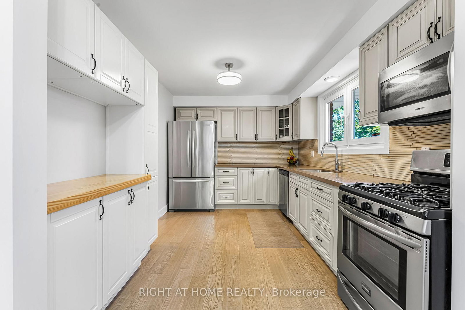 • Kitchen: Custom Backsplash, carpet free, Quartz Counter