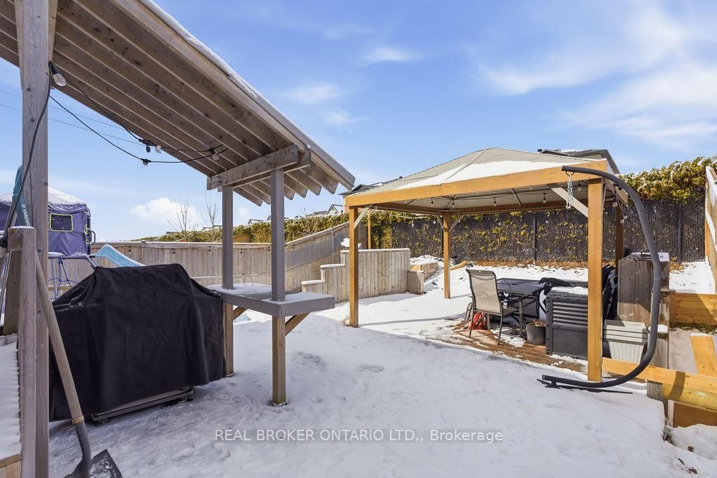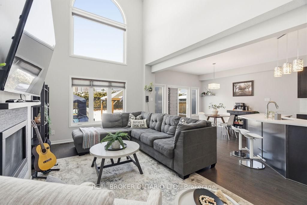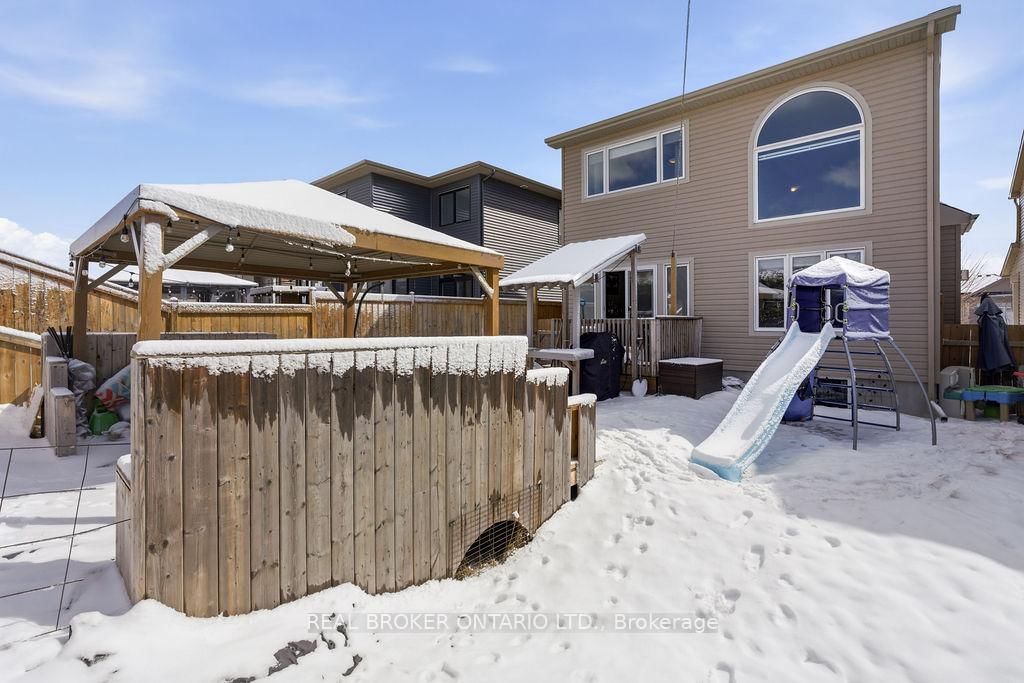 Staying true to its namesake, this home reflects the essence of the onyx gemstone; grounded, strong, and quietly confident. The 2-Storey on 164 Onyx Crescent has 3 bedrooms, 4 bathrooms, and is located on a 118.11 x 32.81 ft lot in the community of Town of Rockland . Known for symbolizing protection, resilience, and clarity, onyx represents stability and confidence in decision-making. This three bedroom, four bath home delivers on all fronts with thoughtful design, functional space, and a sense of calm throughout. Step inside through the functional, welcoming entrance with a convenient powder room. The great room makes an immediate impression with soaring cathedral ceilings, rich hardwood flooring, a gas fireplace, and an abundance of natural light all creating a space that feels both elevated and inviting. The formal dining room is perfect for hosting, while the eat-in kitchen features quartz countertops, abundant cabinetry, and a pantry designed for everyday ease. Upstairs, the primary bedroom offers a private retreat complete with a 4 piece ensuite and double sinks. Two additional bedrooms, a full bathroom, and second-floor laundry provide a layout that supports both comfort and efficiency. The partially finished lower level adds valuable versatility, featuring a spacious rec room, tons of useful storage space plus an additional powder room. Out back, enjoy a tiered deck and gazebo perfect for relaxing or entertaining. With no rear neighbours this yard offers maximum privacy. Curb appeal and a double garage round out the long list of virtues. Set within a welcoming community known for its friendly neighbours, this home is just moments from Du Moulin Park, Rockland Marina, and the Rockland Golf Club, offering the perfect balance of connection, recreation, and everyday convenience. Like the onyx stone itself, this home is built for balance, combining strength, comfort, function, style, privacy and connection. A space designed to ground you, support you, and move you forward with confidence.