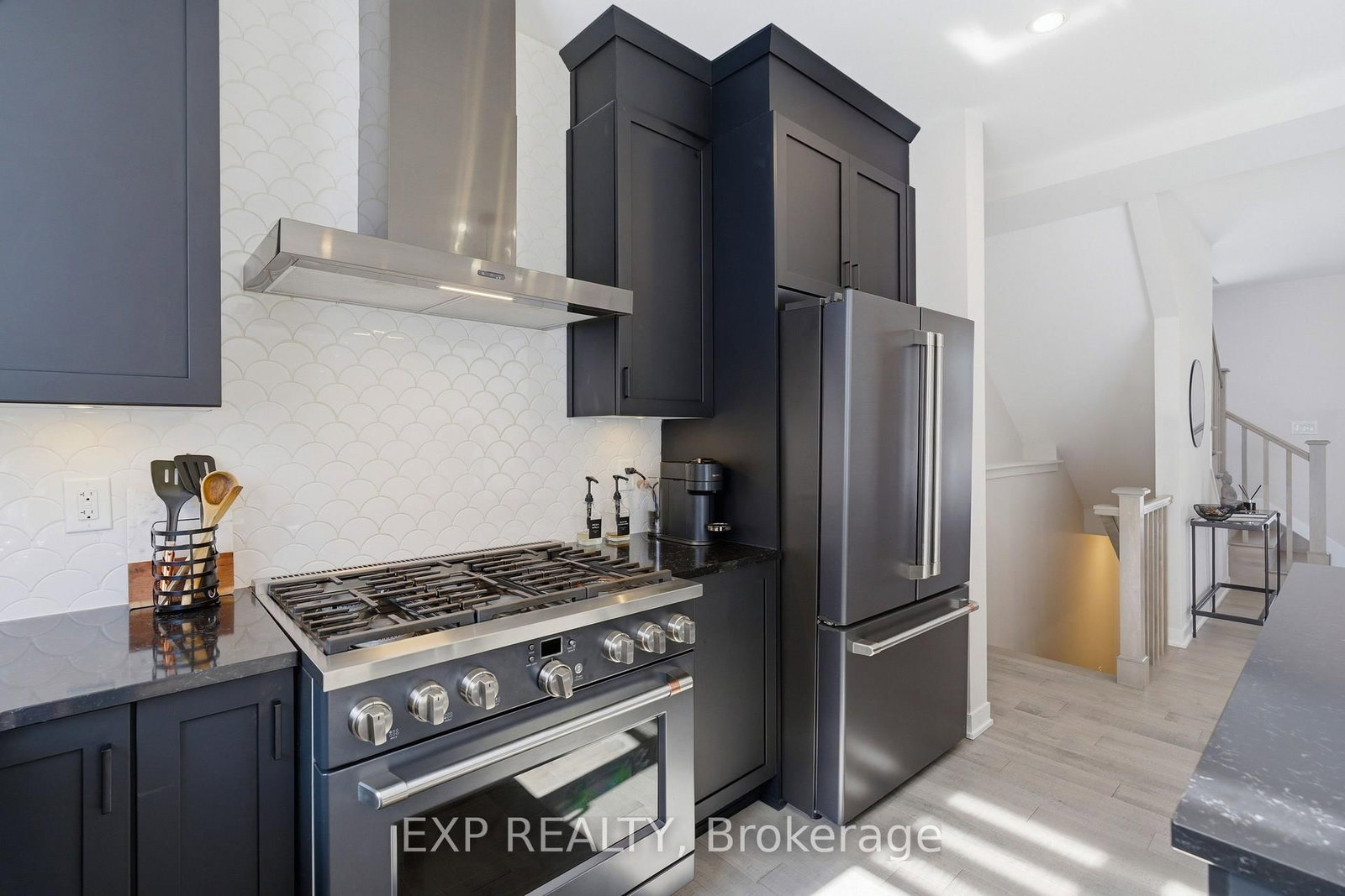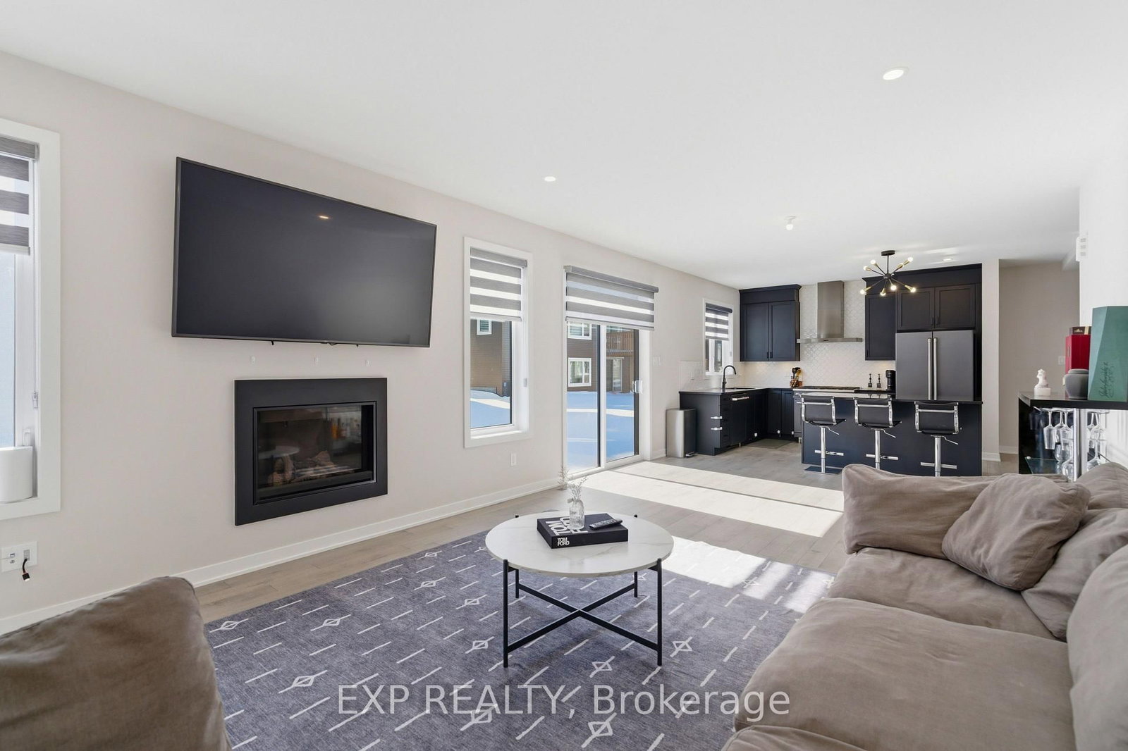 Welcome to 132 Rugosa Street, a Caivan-built home with 4 bedrooms and 3 bathrooms in one of Barrhaven's newest communities. The 2-Storey on 132 Rugosa Street has 4 bedrooms, 3 bathrooms, and is located on a 21.3 x 12.8 ft lot in the community of Barrhaven - Half Moon Bay . From the moment you walk in, the quality of the finishes and the thoughtfulness of the layout make a strong first impression. The main level greets you with a welcoming foyer, a nearby powder room, and a mudroom with direct access to the double-car garage. The open-concept layout flows effortlessly from room to room, with hardwood floors underfoot and light pouring in from every angle. The kitchen is the true centrepiece, featuring floor-to-ceiling cabinetry in a striking dark finish, a scalloped tile backsplash, granite countertops, a large island with bar seating, and the full Cafe Line appliance package including a gas stove. The living room is where this home really shines, bathed in natural sunlight throughout the day and anchored by a sleek fireplace that adds warmth and ambiance year-round. Patio doors off the dining area connect you directly to the backyard, making indoor-outdoor living easy. Upstairs, the primary suite is a true retreat with a walk-in closet and a 4-piece ensuite featuring a double vanity and glass shower. Three additional spacious bedrooms and a full bathroom complete the upper level. The fully finished basement offers a large recreation room ready to adapt to your lifestyle, along with laundry and plenty of storage. Steps from parks, schools, walking trails, and everyday conveniences, this home puts you right in the heart of a thriving Barrhaven community.