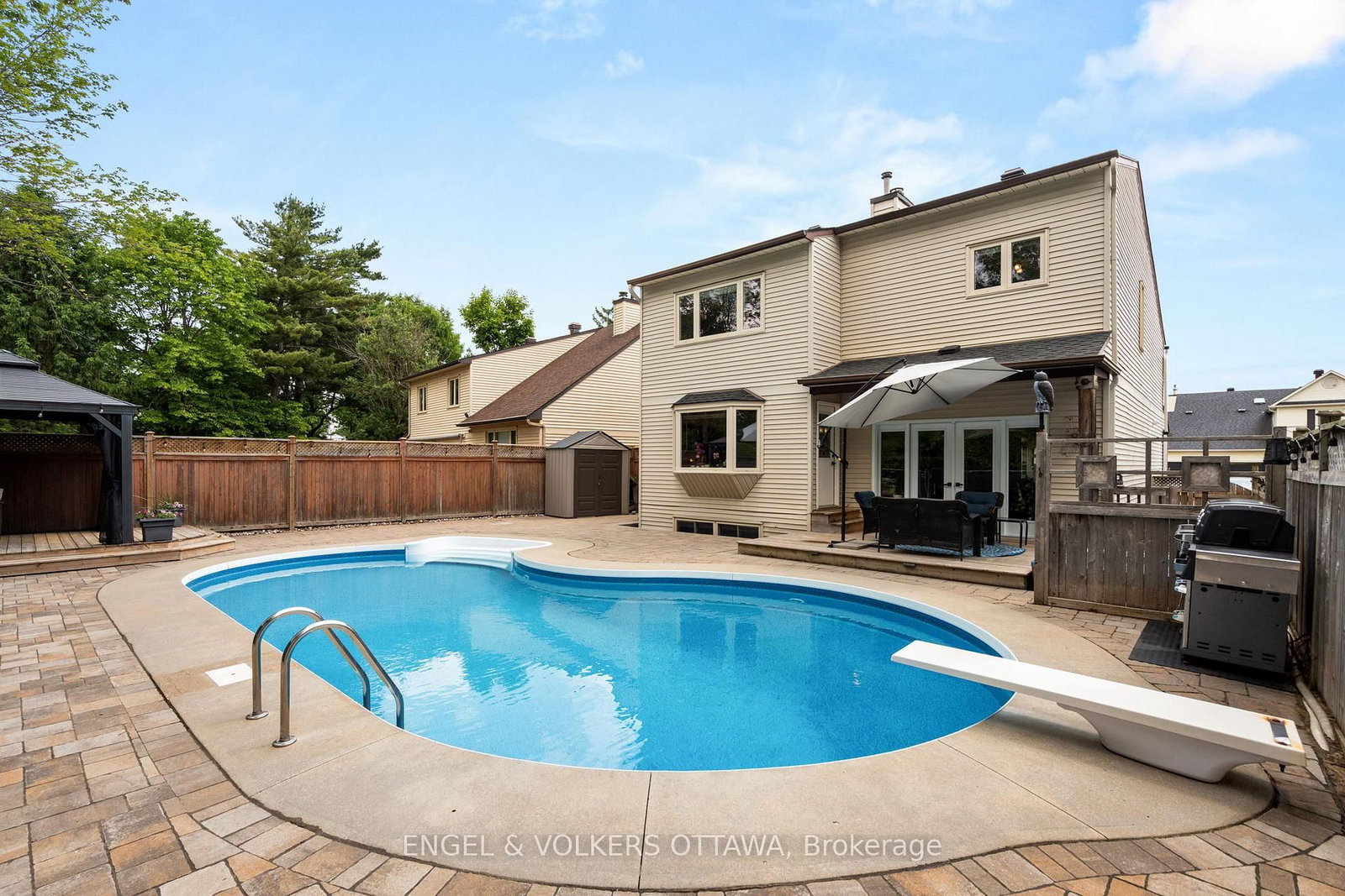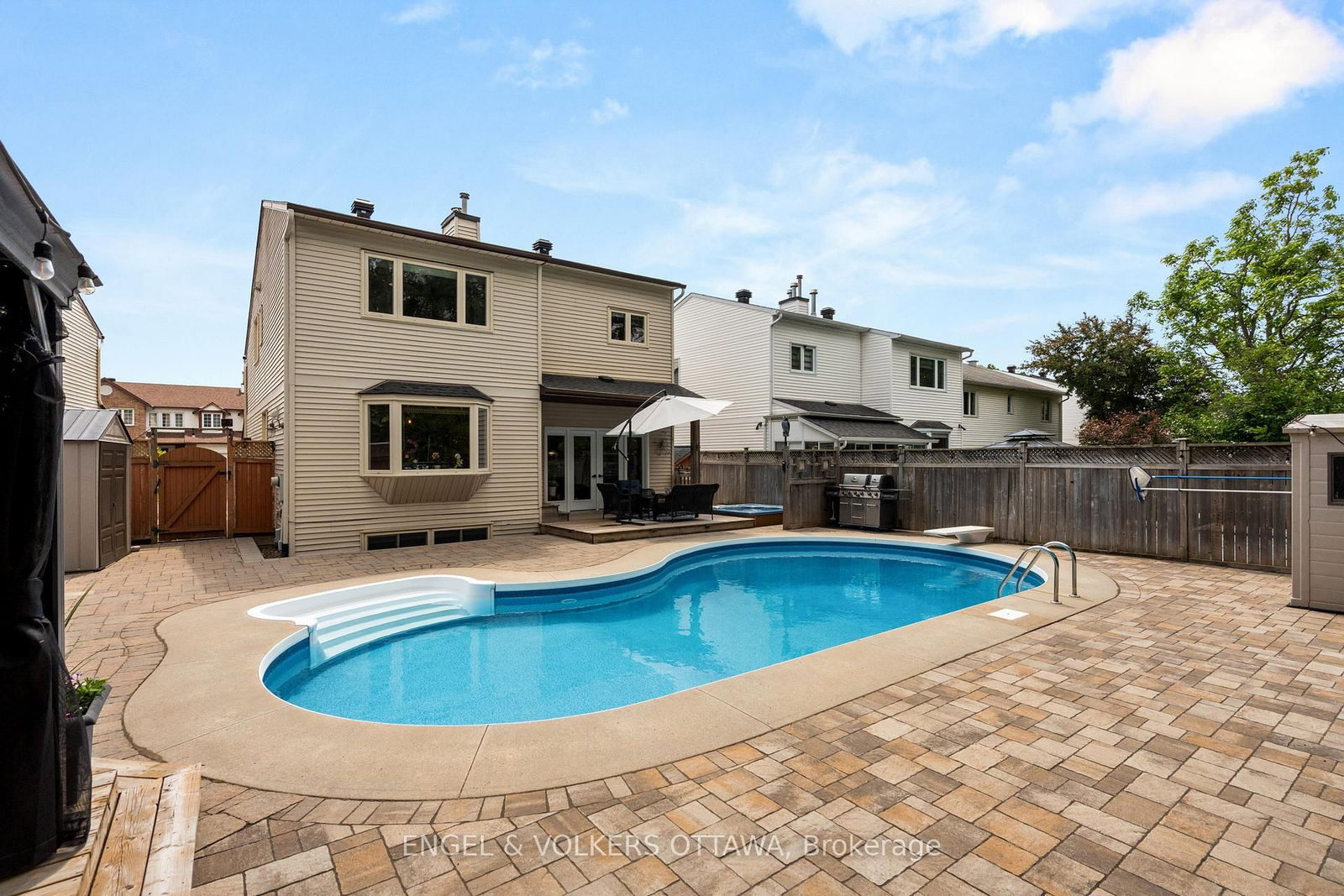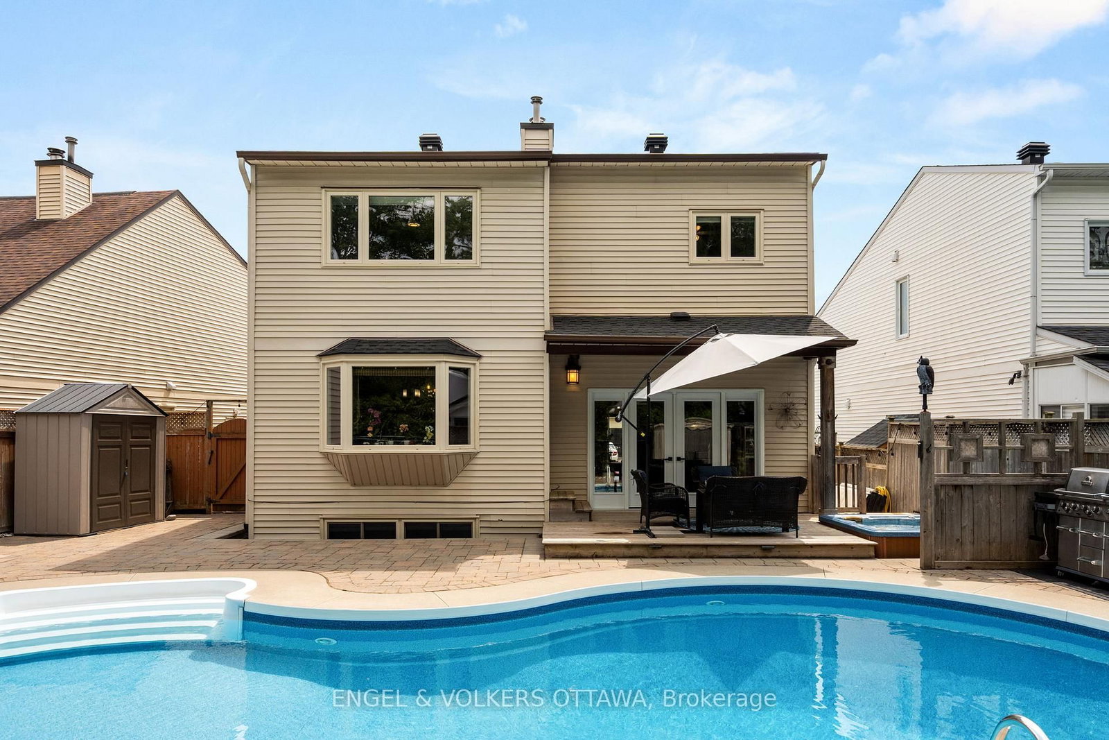 Welcome to 45 Townsend Drive - a beautifully updated family home on a premium lot with no rear neighbours in one of Old Barrhaven's most established neighbourhoods. The 2-Storey on 45 Townsend Drive has 3 bedrooms, 4 bathrooms, and is located on a 110.69 x 41.01 ft lot in the community of Barrhaven - Heritage Park . Situated on a quiet, tree-lined street, the backyard here genuinely stops people in their tracks. The inground pool, hot tub, interlock patio, deck, and gazebo create the kind of outdoor space where summers get remembered. Fully fenced, beautifully landscaped, and completely private. Inside, the home has been updated in all the right places. Cherry hardwood flows through both the main and upper levels, giving the whole home a warm, cohesive feel. The renovated kitchen is the heart of the home - large island, excellent storage, and windows that look straight out to the pool. The living room is anchored by a wood-burning fireplace, and the layout is practical and easy to live in. Upstairs, the primary suite offers a walk-in closet and a beautifully renovated ensuite with a glass shower, soaker tub, and double vanity. Two more spacious bedrooms, an updated main bath, and a flexible bonus room - ideal as a fourth bedroom, home office, or playroom - round things out nicely. The finished basement gives you even more room to grow - a bedroom, 3-piece bath, laundry, and plenty of storage. Ideal for extended family or simply the extra breathing room a busy household needs. Top-rated schools, parks, and everyday amenities are all close by. Homes with resort-style yards on streets like this don't come up often.