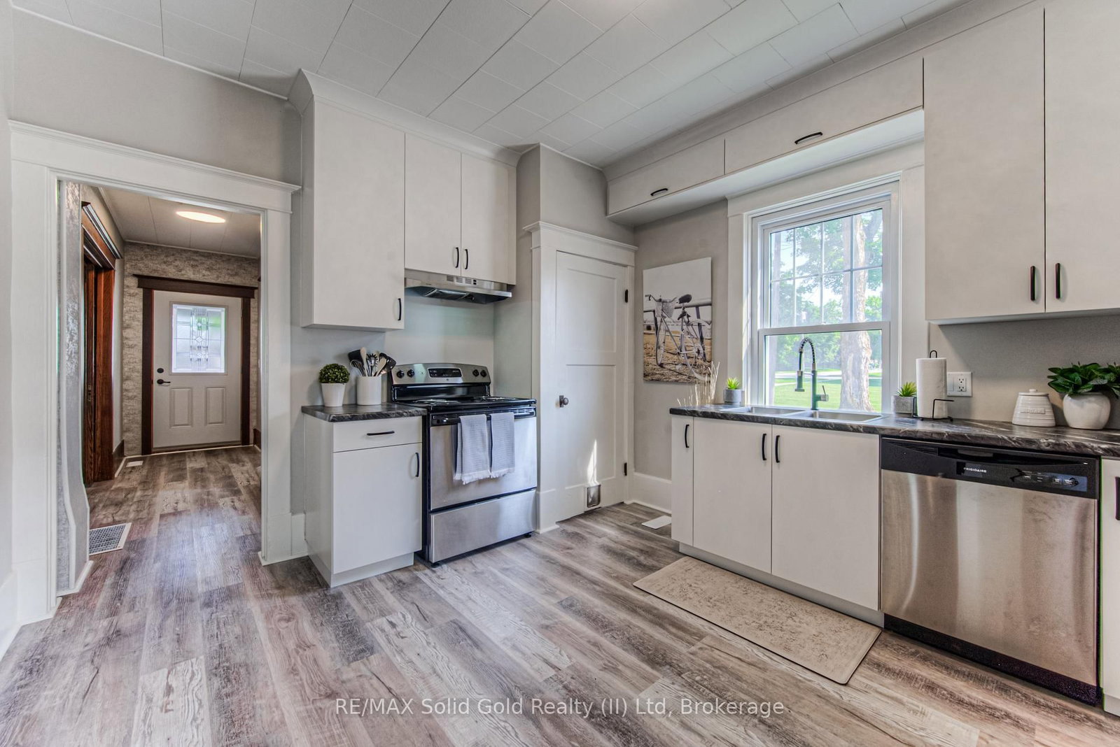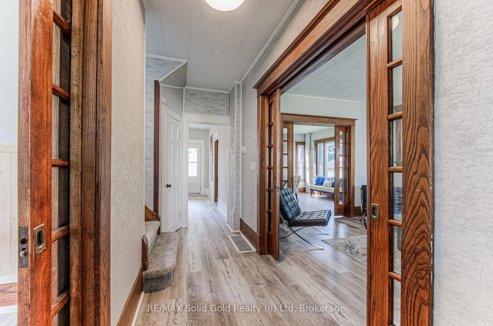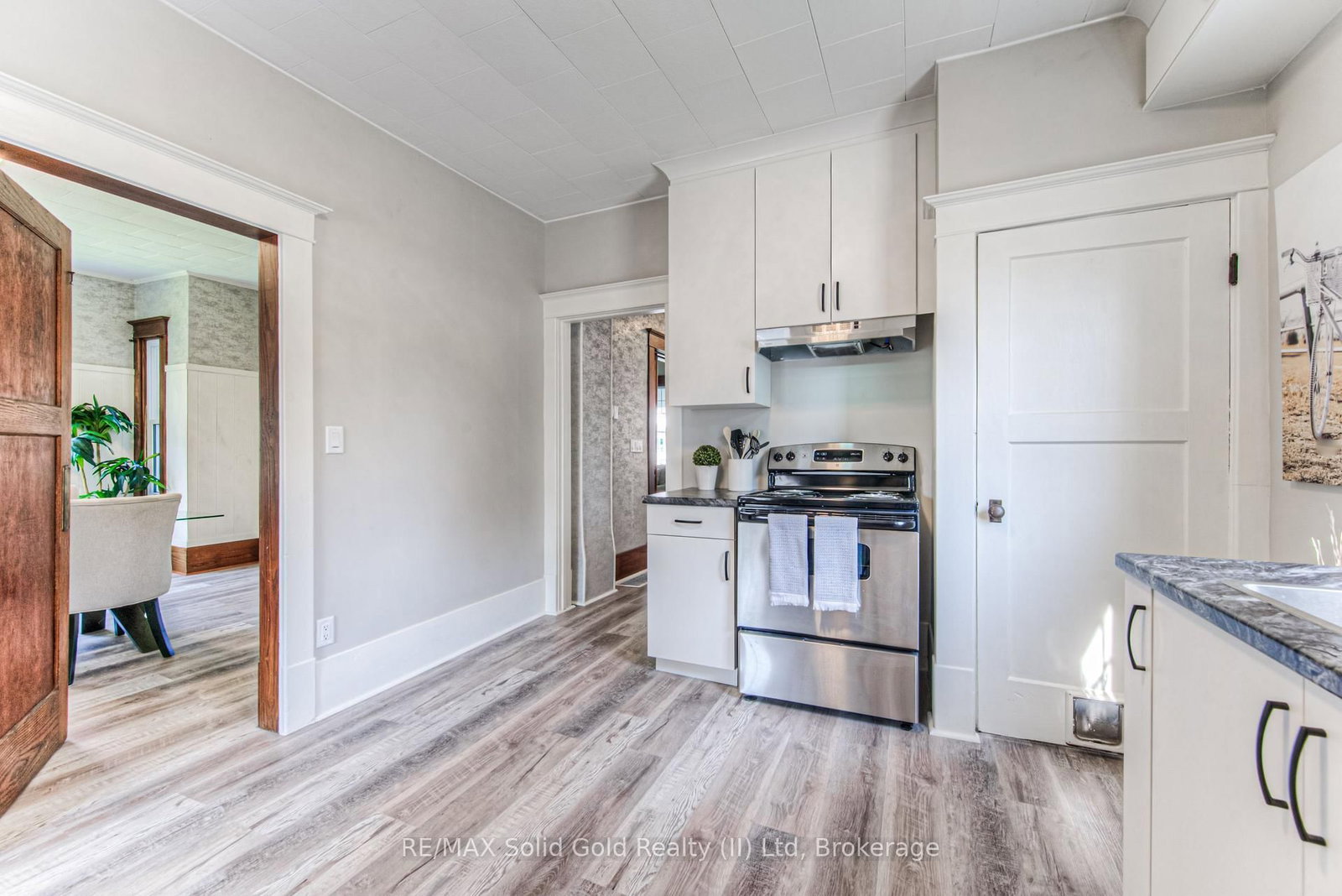 Step into timeless elegance in the charming town of Listowel with this extensively renovated century home. The 2 1/2 Storey on 690 Wallace Avenue N has 3 bedrooms, 2 bathrooms, and is located on a 94 x 66 ft lot in the community of Listowel . Blending historic character with modern updates, this stunning property offers generous living space, including three spacious bedrooms plus a versatile den, a main floor office, a separate dining and living room, and an expansive finished attic-perfect for an extra bedroom, family room, studio, or additional retreat. Step outside to the inviting covered front porch, ideal for sipping your morning coffee or unwinding with a cold drink on a warm summer evening. Recent upgrades ensure comfort and peace of mind, featuring new laminate plank flooring throughout, a new roof (2022), updated electrical (2022), new washer and dryer, and a beautifully redesigned kitchen complete with new stainless steel appliances. While thoughtfully modernized, the home's original charm shines through with preserved trim details and elegant glass pocket doors, creating a warm and inviting modern rustic feel. The large, unspoiled backyard offers endless possibilities for your personal touch, with ample space for creating your dream outdoor living area. Don't miss your chance to own one of Listowel's most distinctive and character-filled homes.